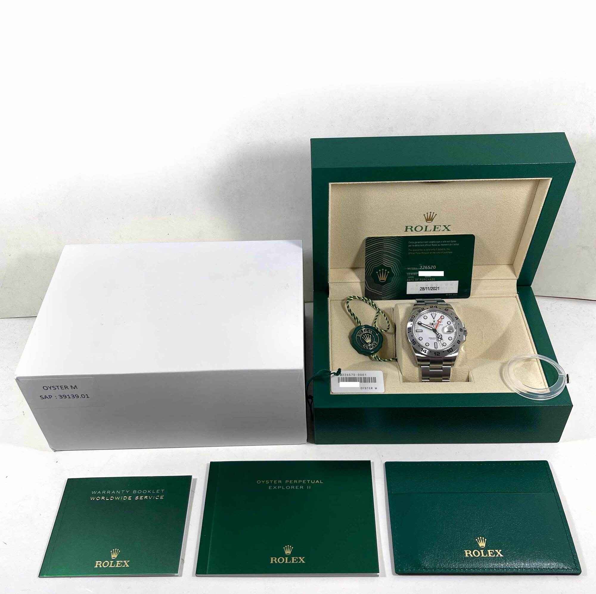 Read Morethis rolex is in great condition showing some signs of wear on the case, bezel, and bracelet consistent with preowned watches. This comes with its box, booklets, bezel protector, both hang tags, and warranty card dated november 28th, 2021 as shown in the pictures attached. This watch is in stock and available to ship immediately!