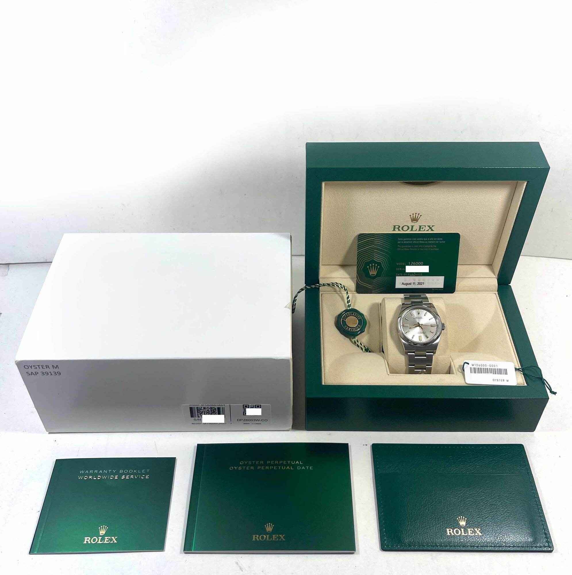 THIS ROLEX IS IN AMAZING OVERALL CONDITION AND COMES WITH ITS BOX, BOOKLETS, BOTH HANG TAGS, AND WARRANTY CARD DATED APRIL 11TH, 2021. THIS WATCH FEATURES A 36MM STAINLESS STEEL CASE THAT SURROUNDS A SILVER DIAL AND COMES ON A STEEL OYSTER BAND WITH THE DOM...