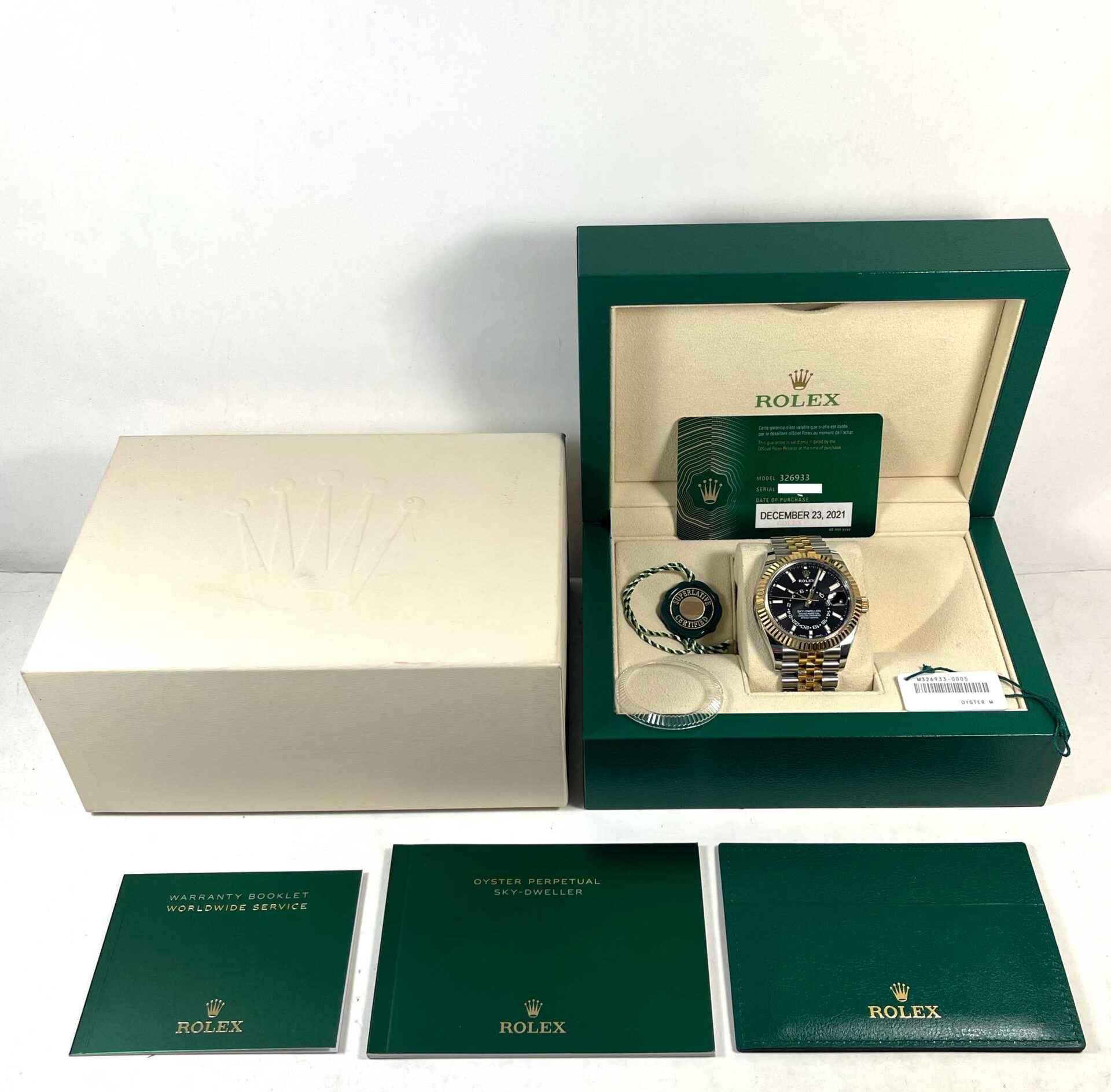 Read Morethis rolex is in very good condition showing some minor signs of wear on the case and bracelet from regular use. This watch comes with its set of box, papers, hang tags, bezel protector, and warranty card dated december 23rd, 2021. This watch is in stock and available to ship immediately!