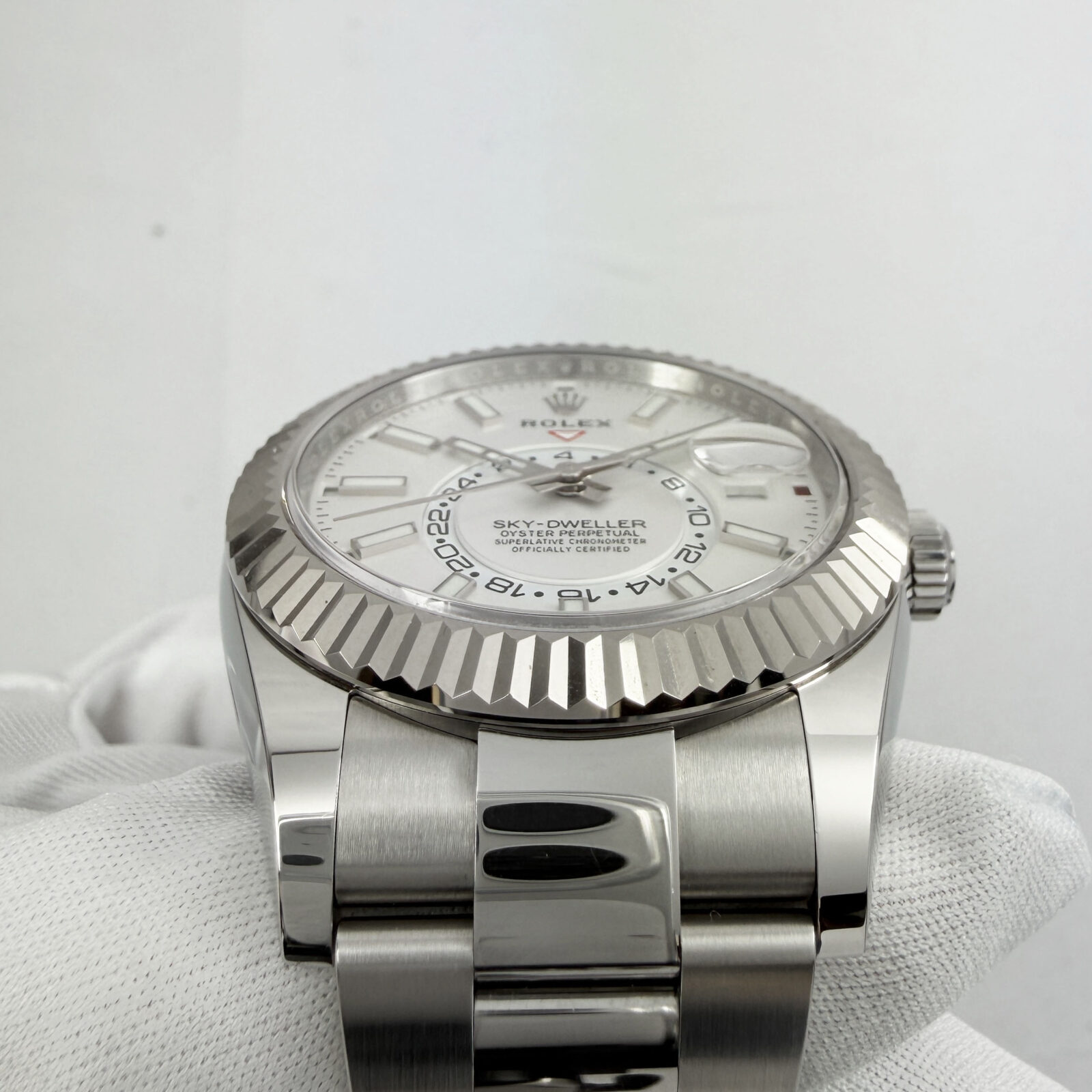 This Rolex Sky-Dweller watch comes with its box, hangtag, extra link, booklets, and warranty card dated April, 2021. The photos shown are of the exact watch being sold and accurately represent its condition. This watch is in stock and ready to ship immediately...