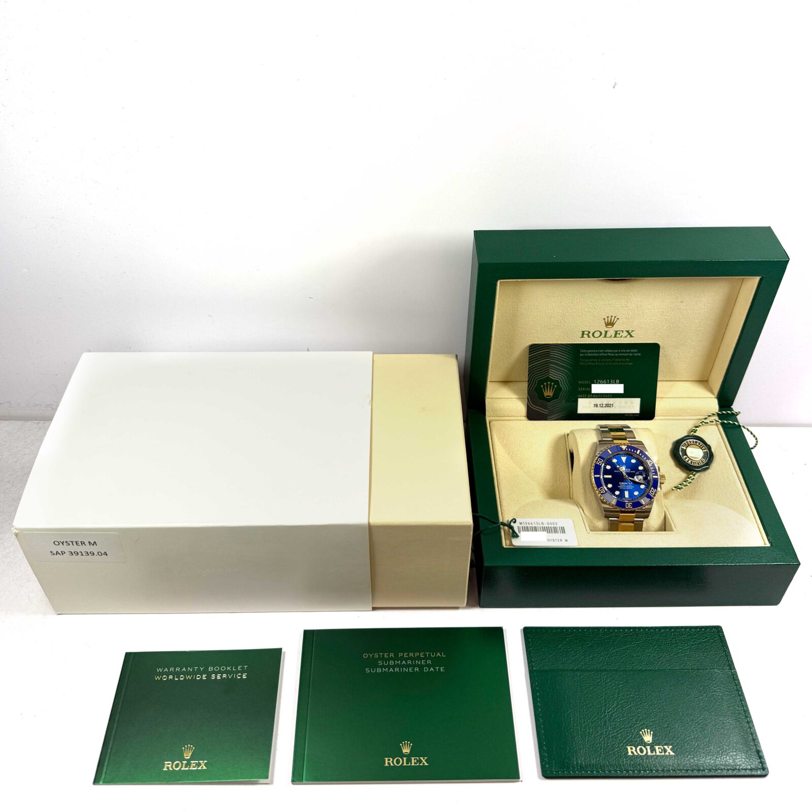 this rolex is in excellent overall condition and comes with its box, booklets, both hang tags, and warranty card dated december 19th, 2021 as shown in the pictures attached. This watch is in stock and available to ship immediately!