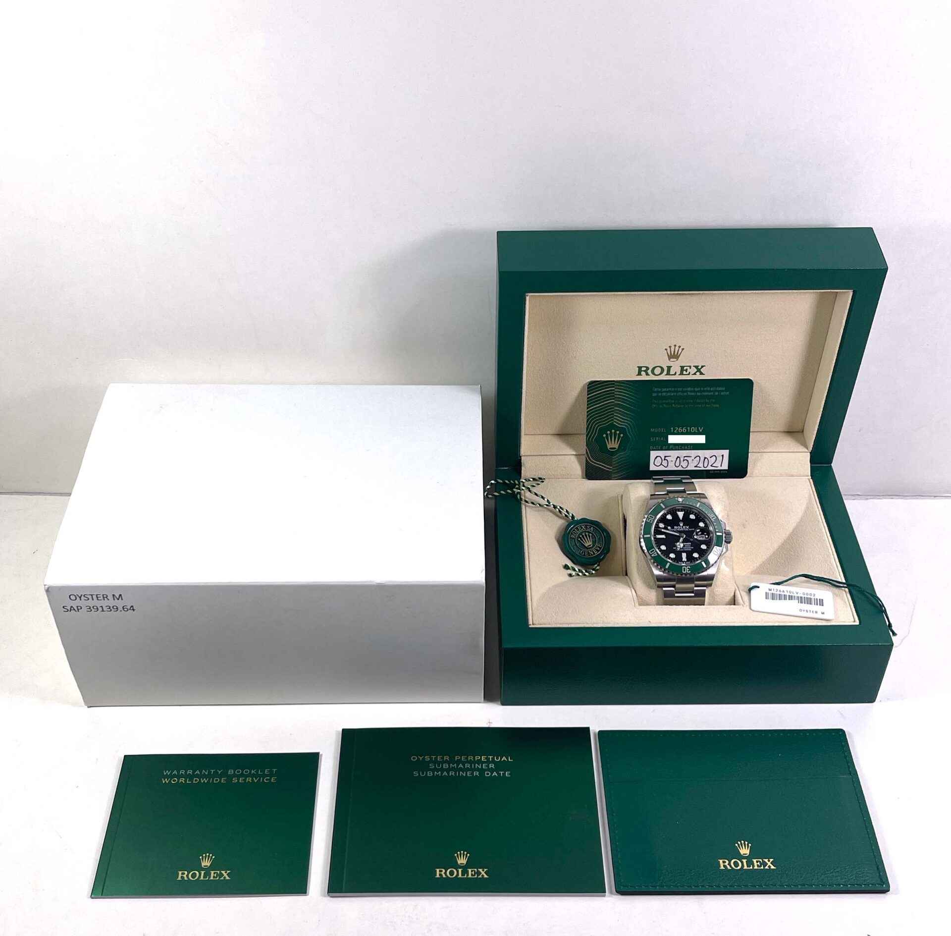 this rolex submariner is in excellent condition and comes with its box, papers, hang tags, and warranty card dated may 5th, 2021. This rolex is in stock and available to ship immediately!