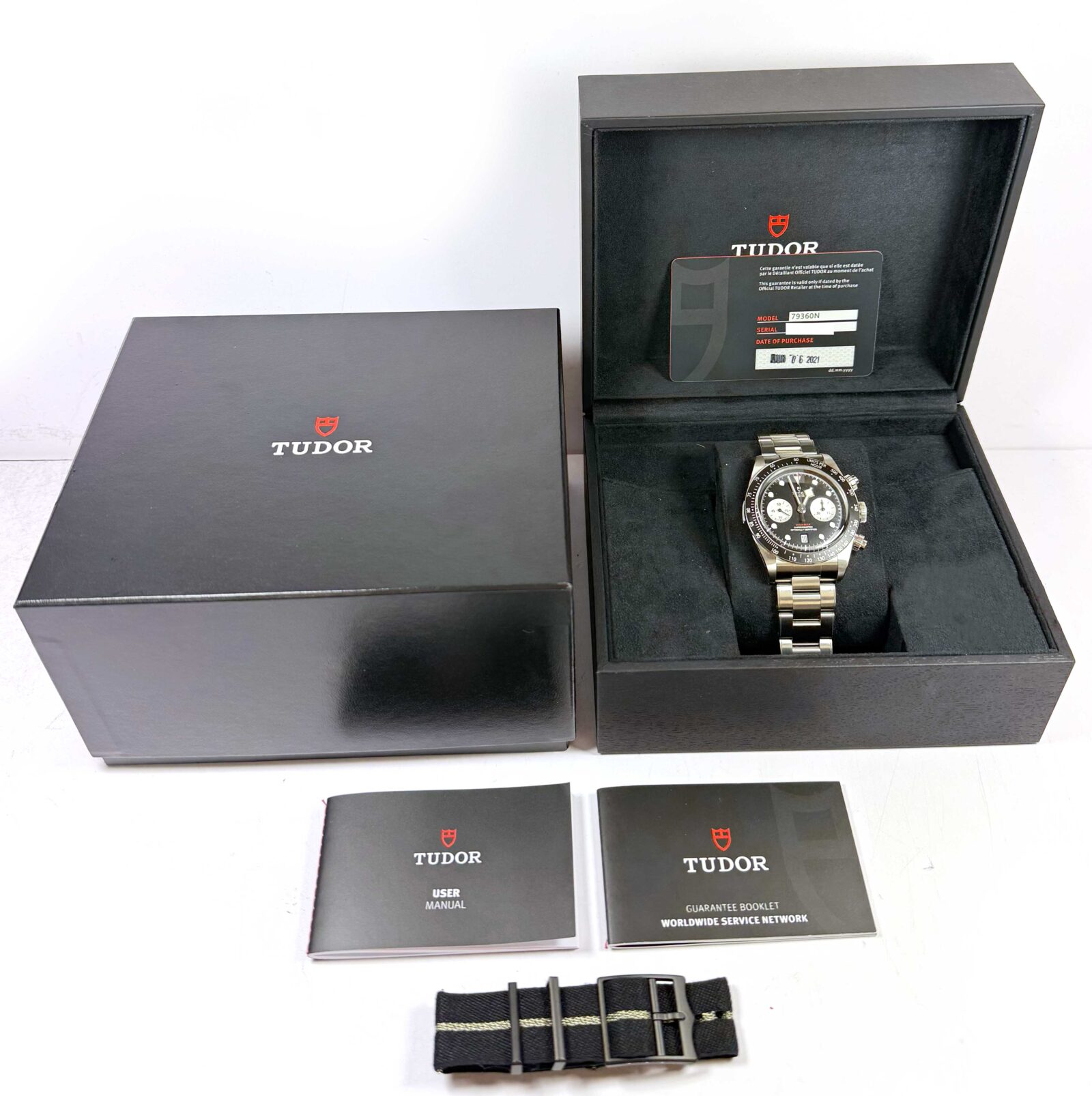 This Tudor watch is in amazing overall condition with stickers on the case and buckle as shown in the pictures attached. This comes with its box, booklet, one additional strap, and warranty card dated June 6th, 2021 as shown in the pictures attached. This w...