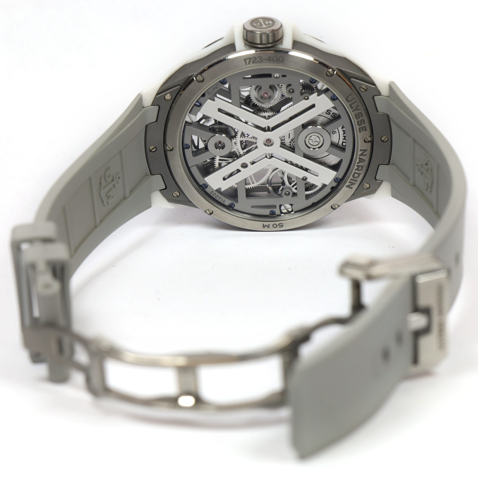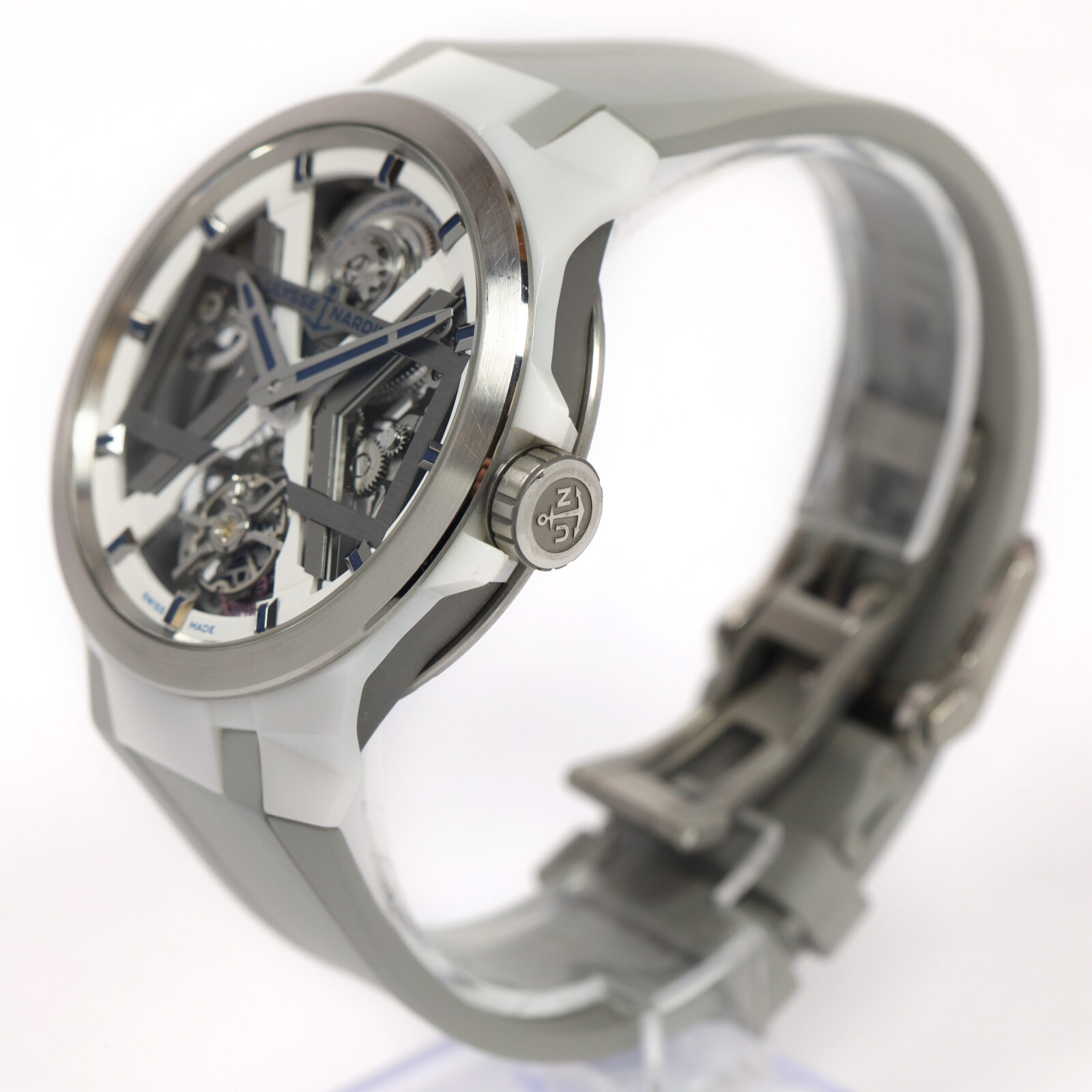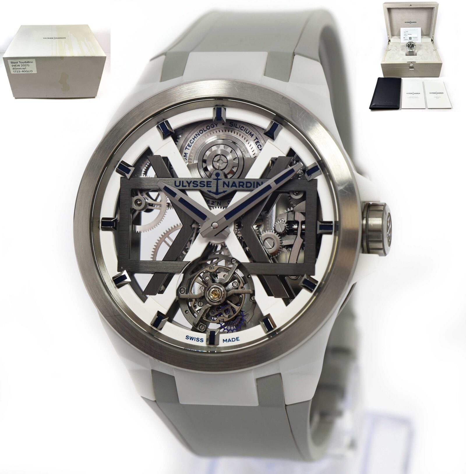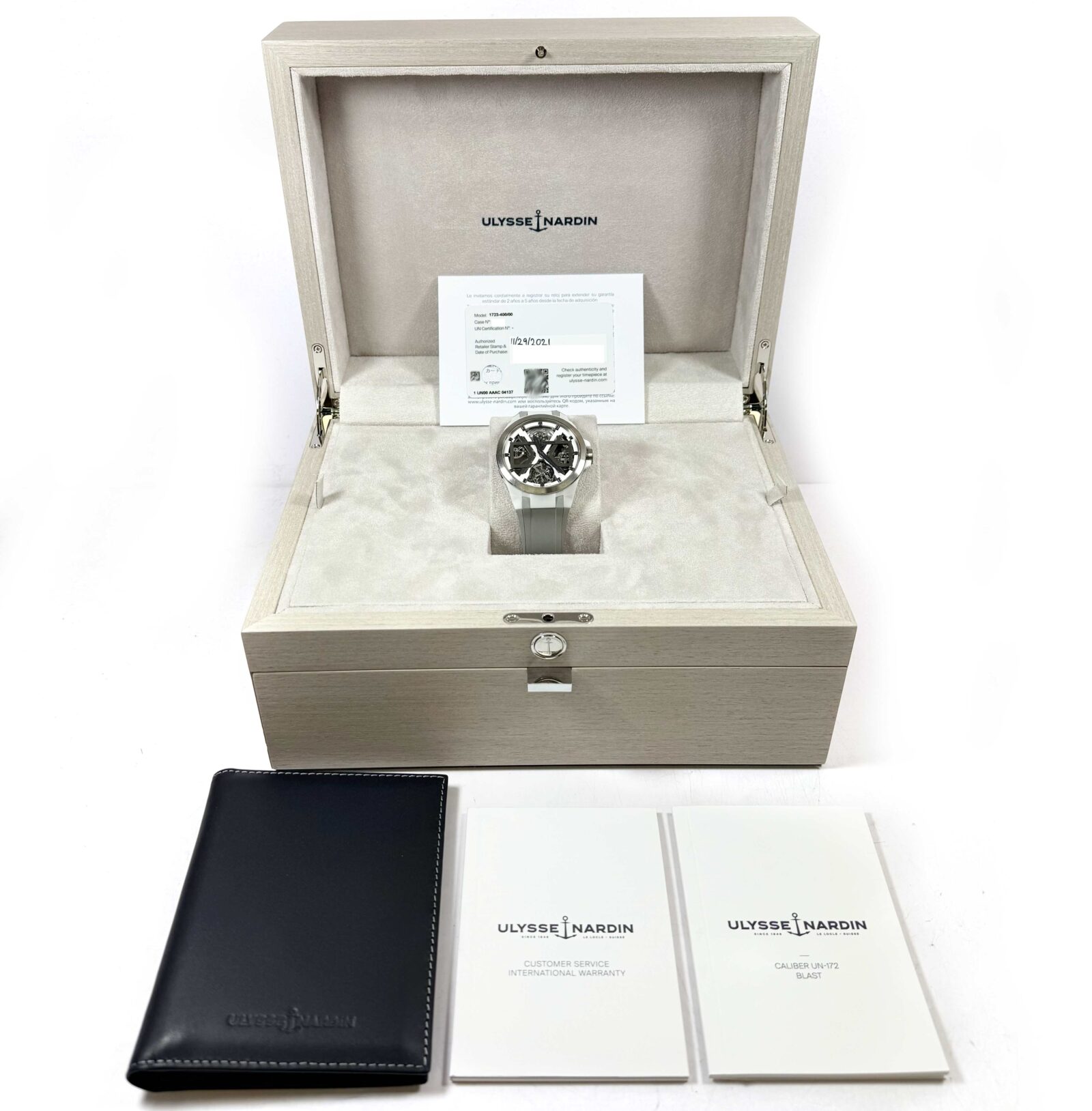 this ulysse nardin watch is in excellent overall condition showing some signs of surface wear consistent with preowned watches. This comes with its box, booklets, and warranty card dated november 29th, 2021 as shown in the pictures attached. This watch is in stock and available to ship immediately!