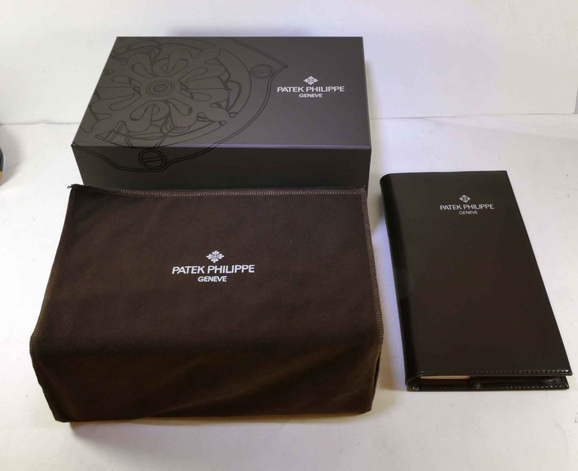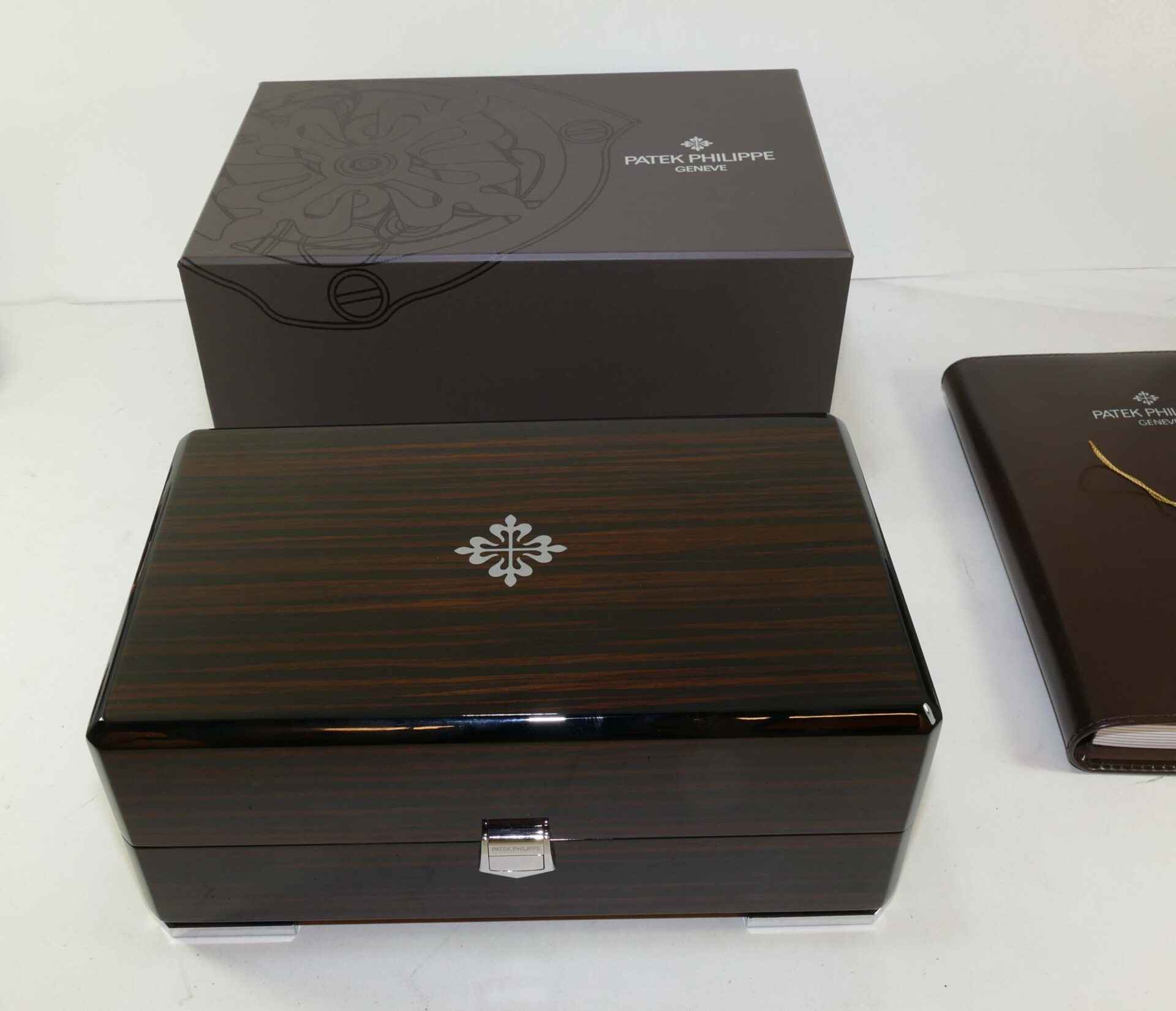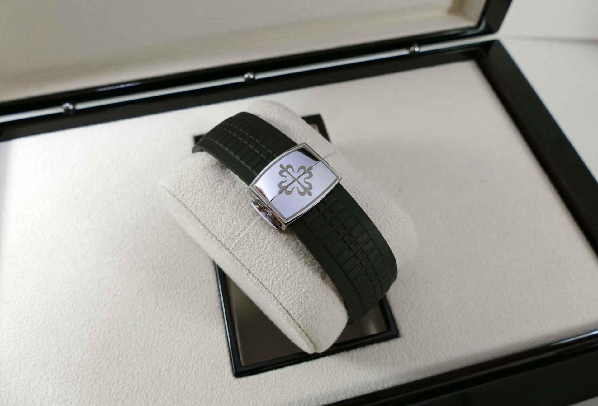 This Patek Philippe watch is in new condition and comes with its complete set of box and papers. The strap was cut to a 7.5 inch wrist when the original purchased bought it, and it was placed in the box...