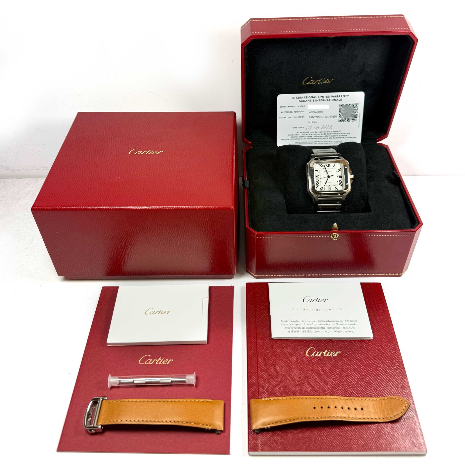 this cartier watch is in mint condition and comes with its box, booklets, cartier tool, one additional strap, and warranty card dated august 8th, 2022 as shown in the pictures attached. This watch is in stock and available to ship immediately!