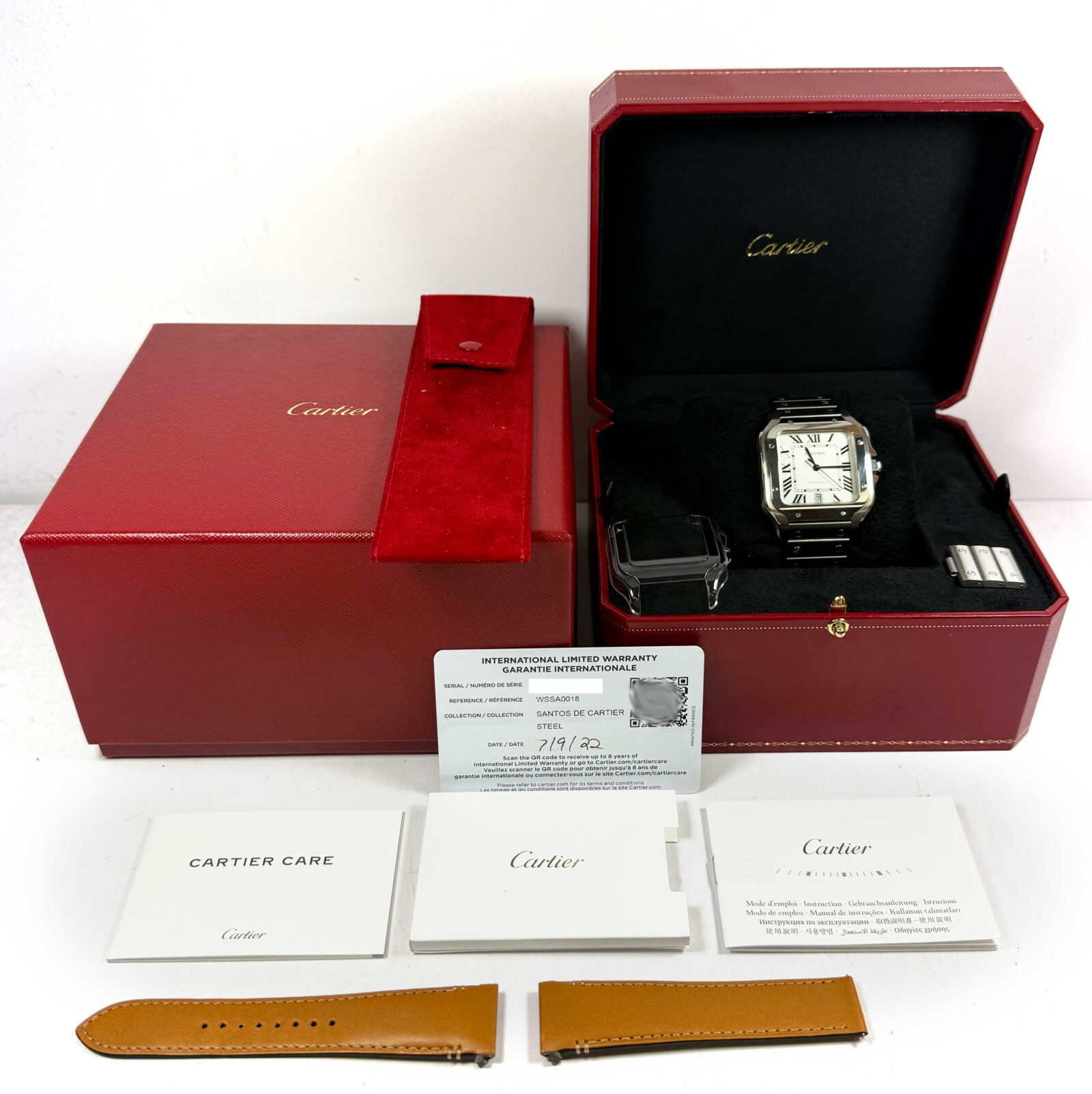 2022 Cartier Santos Large Model WSSA0018 39MM Silver Dial Box Papers