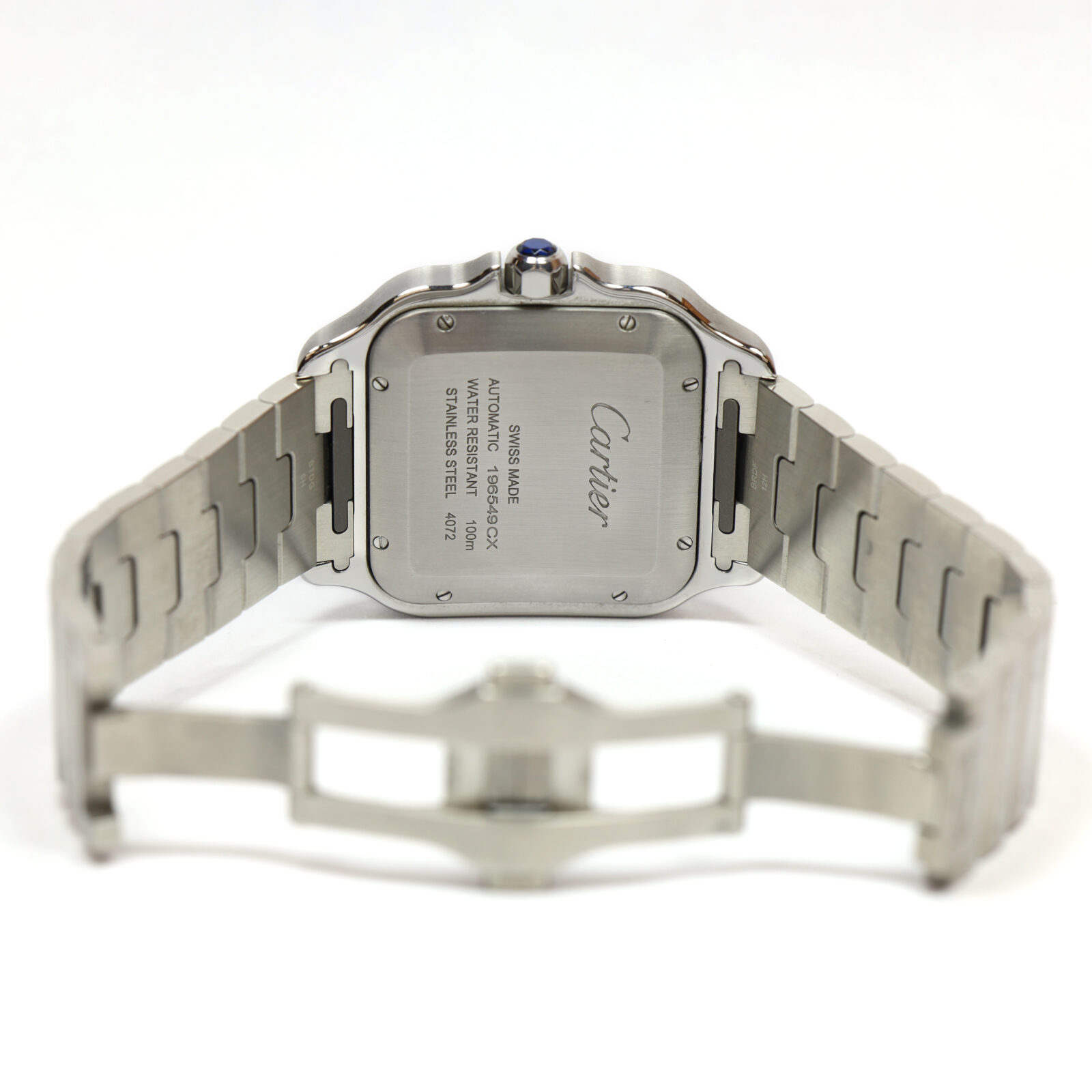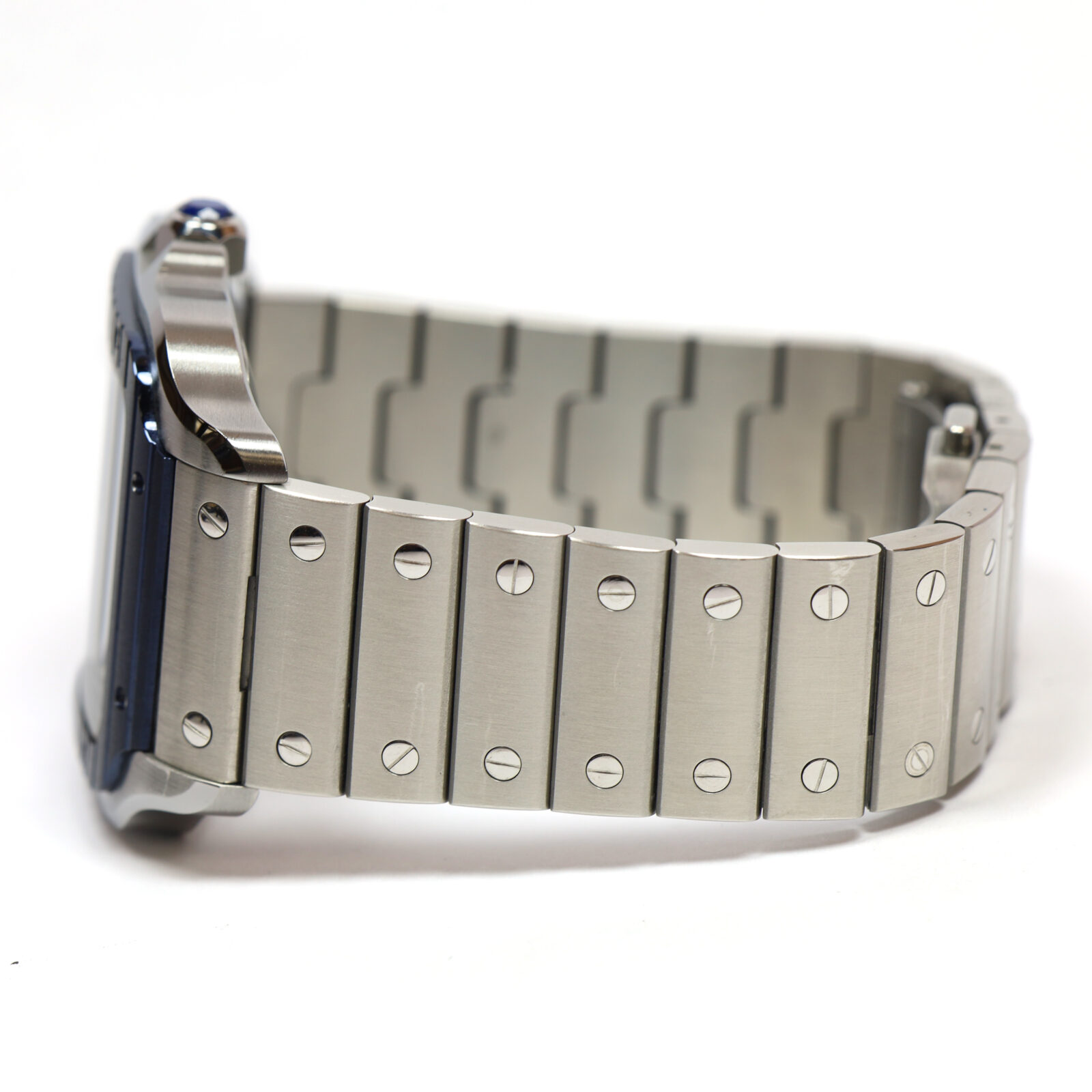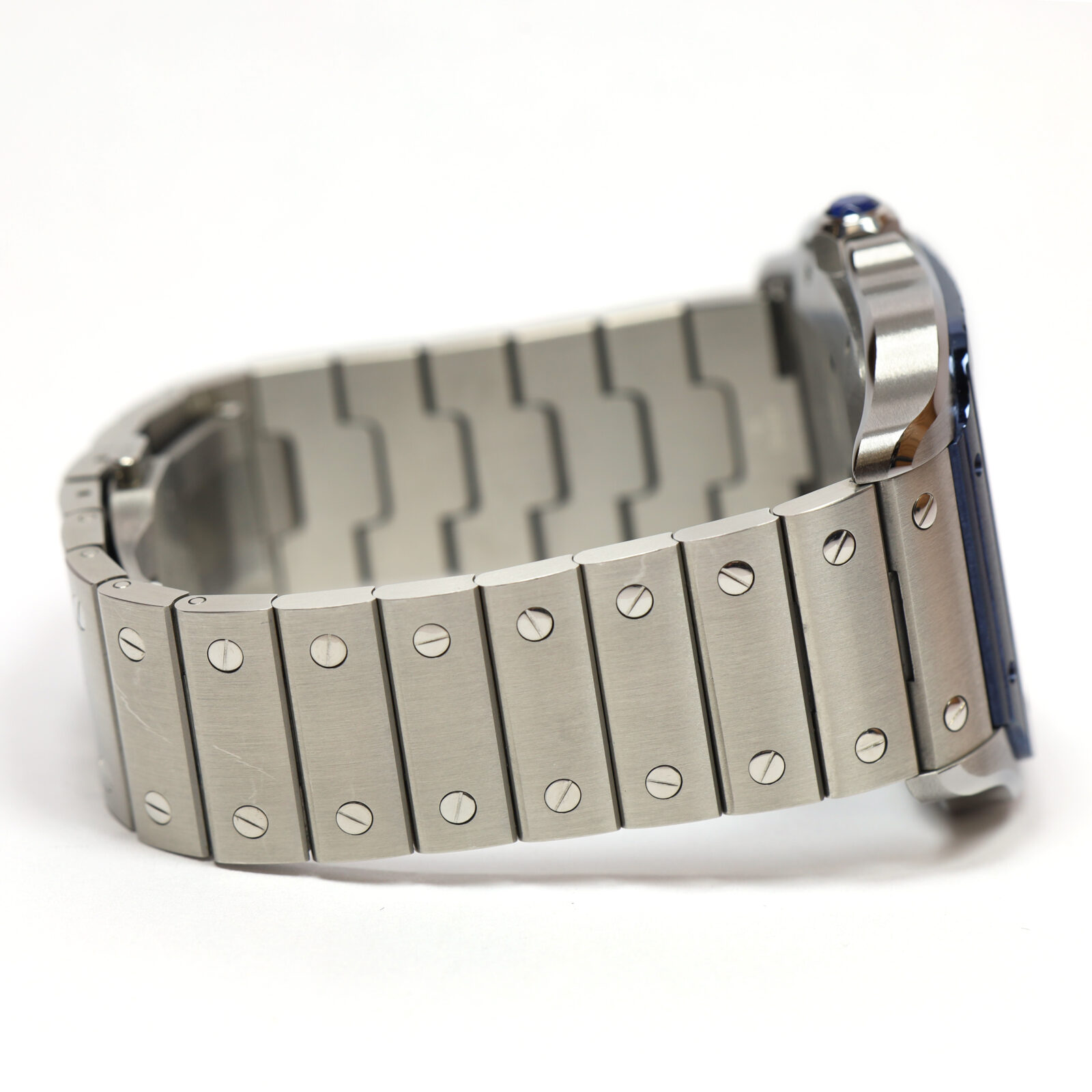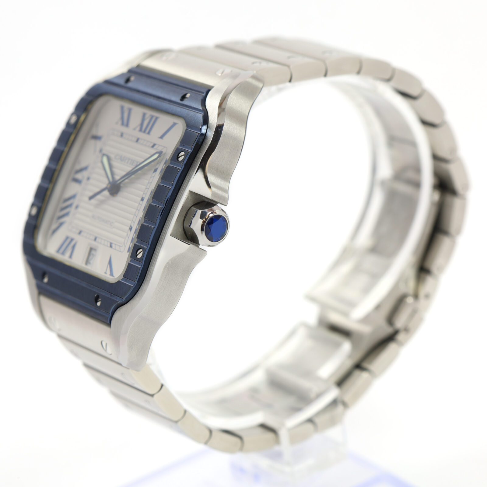 this cartier watch is in great overall condition showing some signs of surface wear consistent with preowned watches. This comes with its box, booklets, cartier tool, one additional blue rubber strap, spare links, and warranty card dated july 10th, 2022 as shown in the pictures attached. This watch is in stock and available to ship immediately!