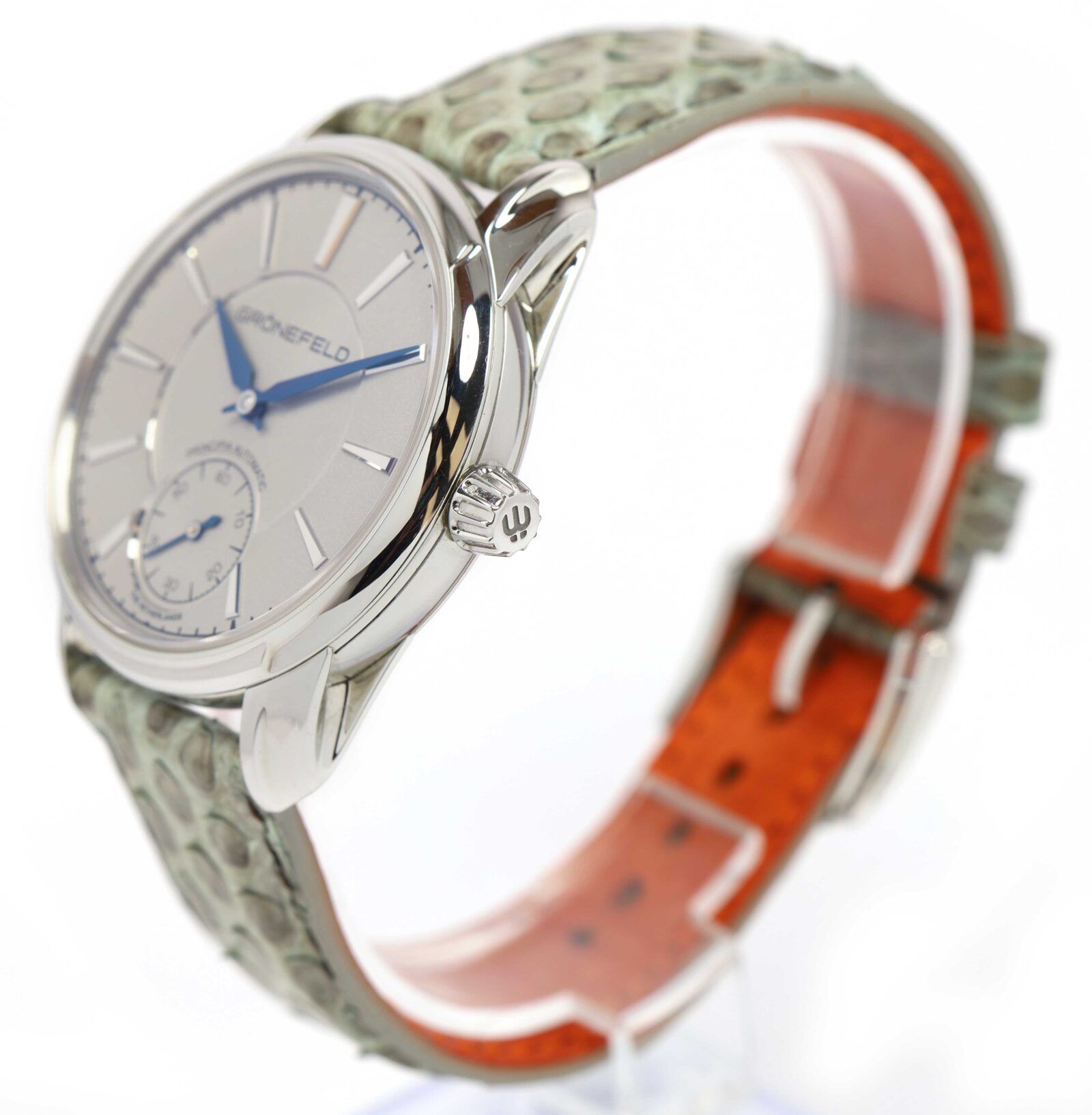 This Grönefeld watch is in excellent condition and comes with its box, one additional strap, and warranty card dated January 2022 as shown in the pictures attached. This watch is in stock and available to ship immediately!