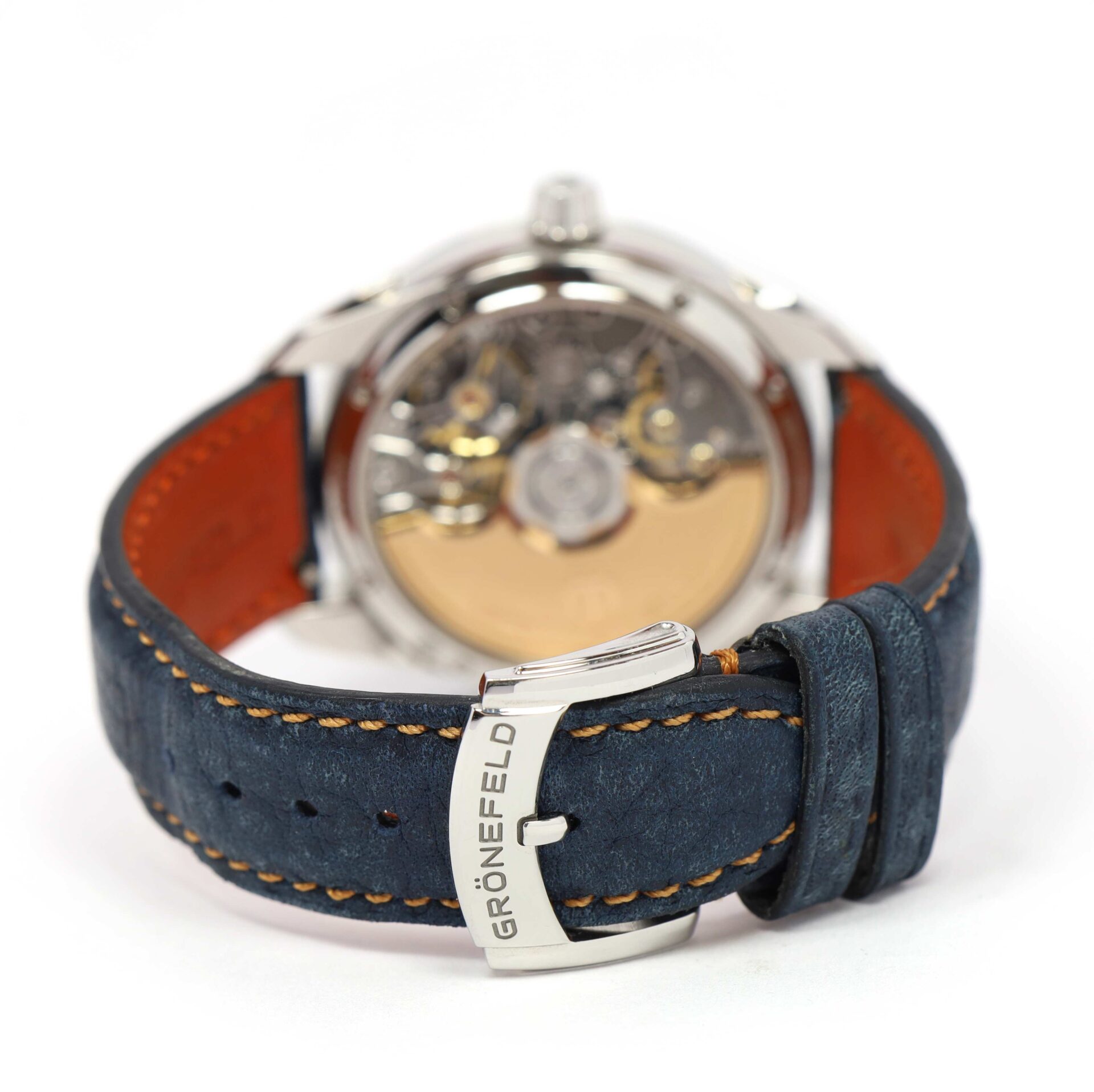 Read Morethis gronefeld watch is in excellent overall condition showing some light signs of wear on the case consistent with preowned watches. This comes with its box, booklets, hang tag, and warranty card dated april 7th, 2022 as shown in the pictures attached. This watch is in stock and available to ship immediately!