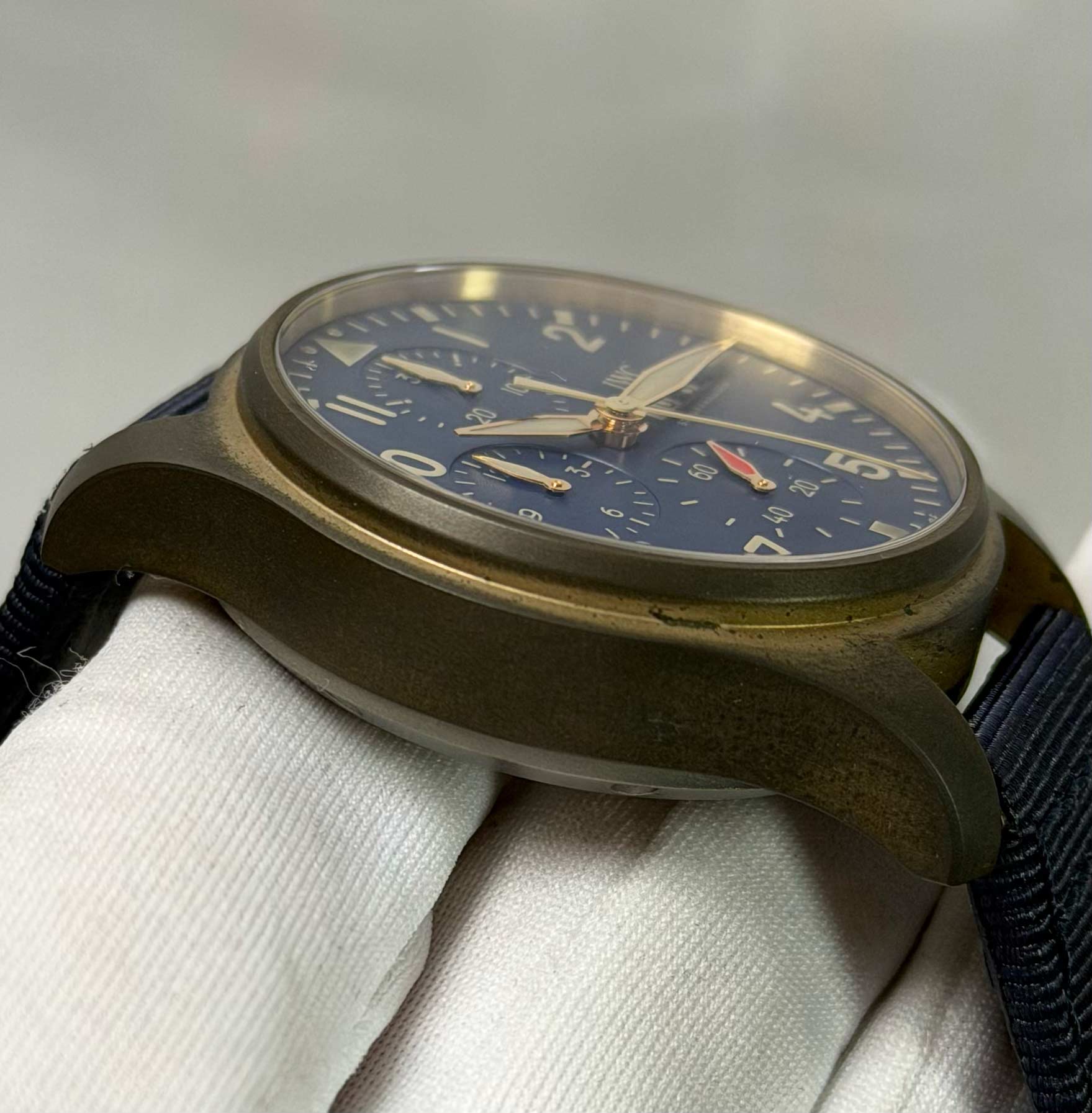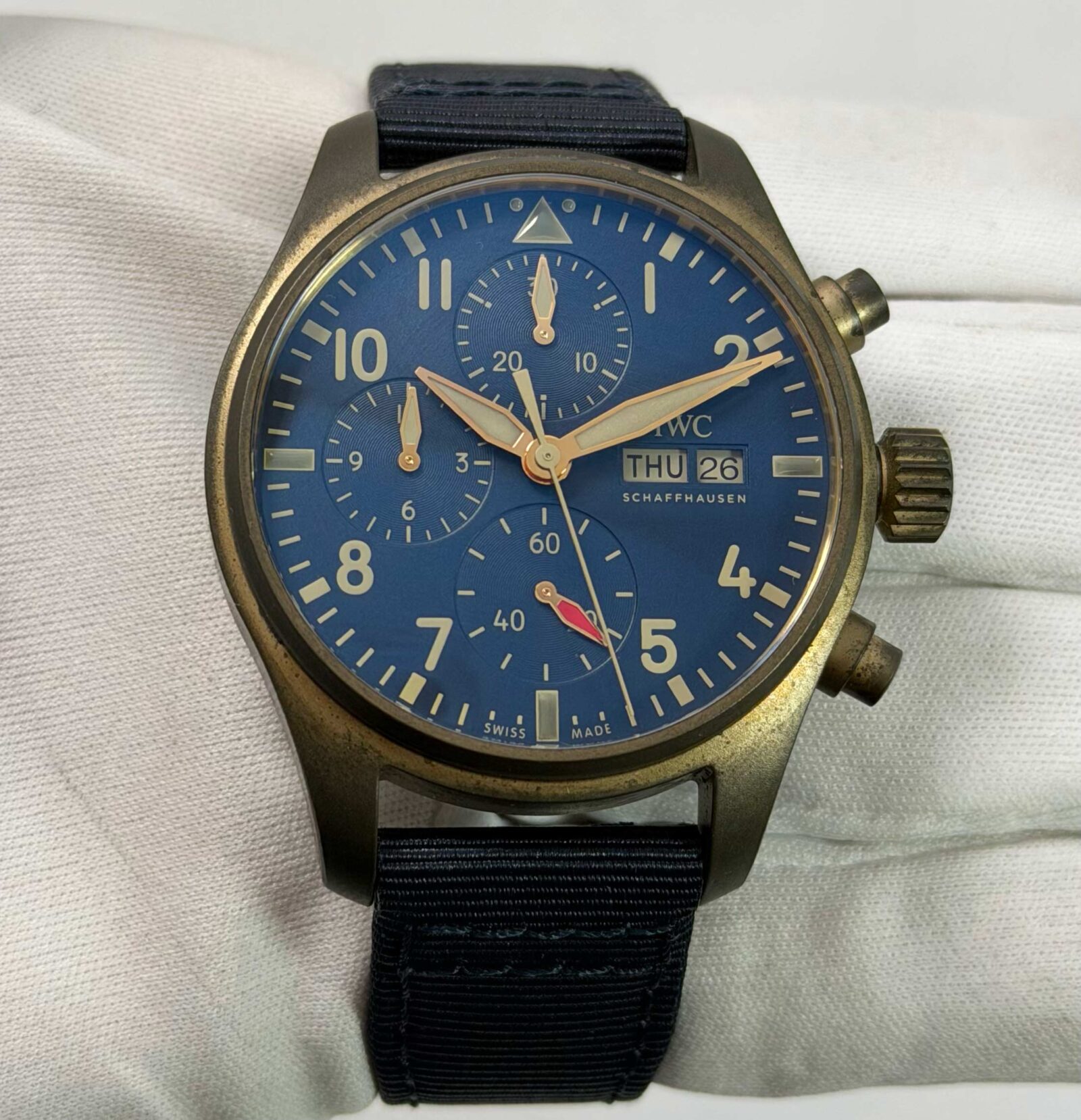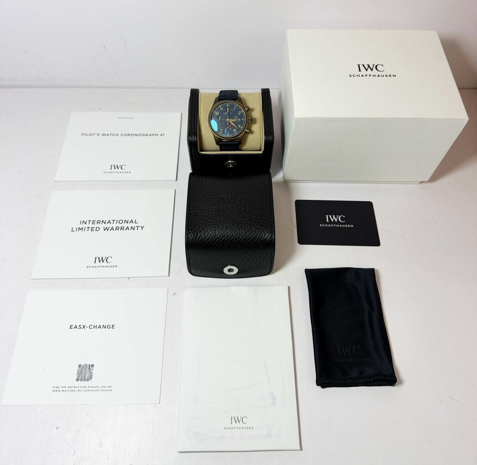 this iwc watch is in great overall condition showing some signs of natural oxidation on the bronze case as shown in the pictures attached. This comes with its box, booklets, and warranty card dated may 23rd, 2022. This watch is in stock and available to ship immediately!