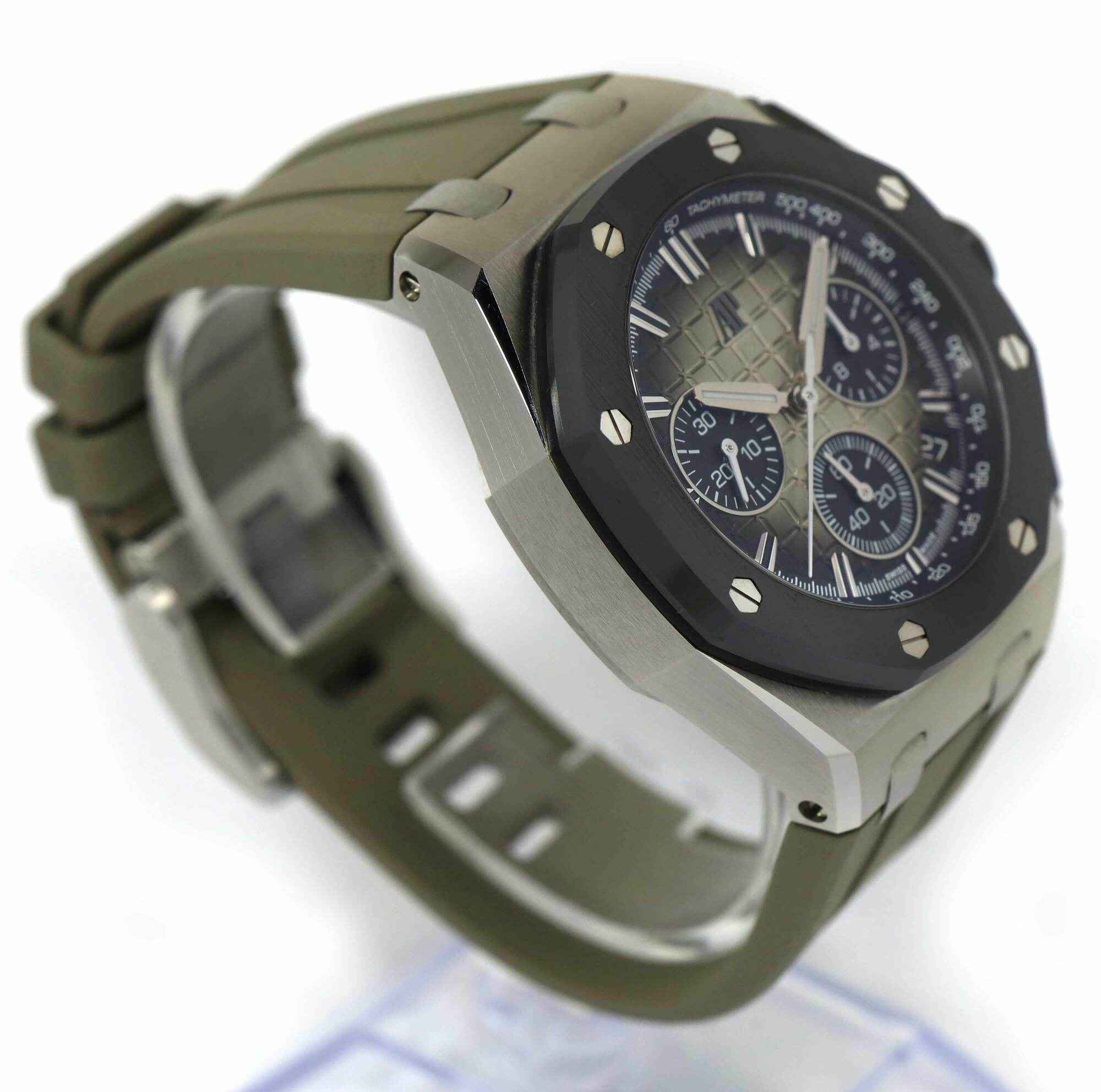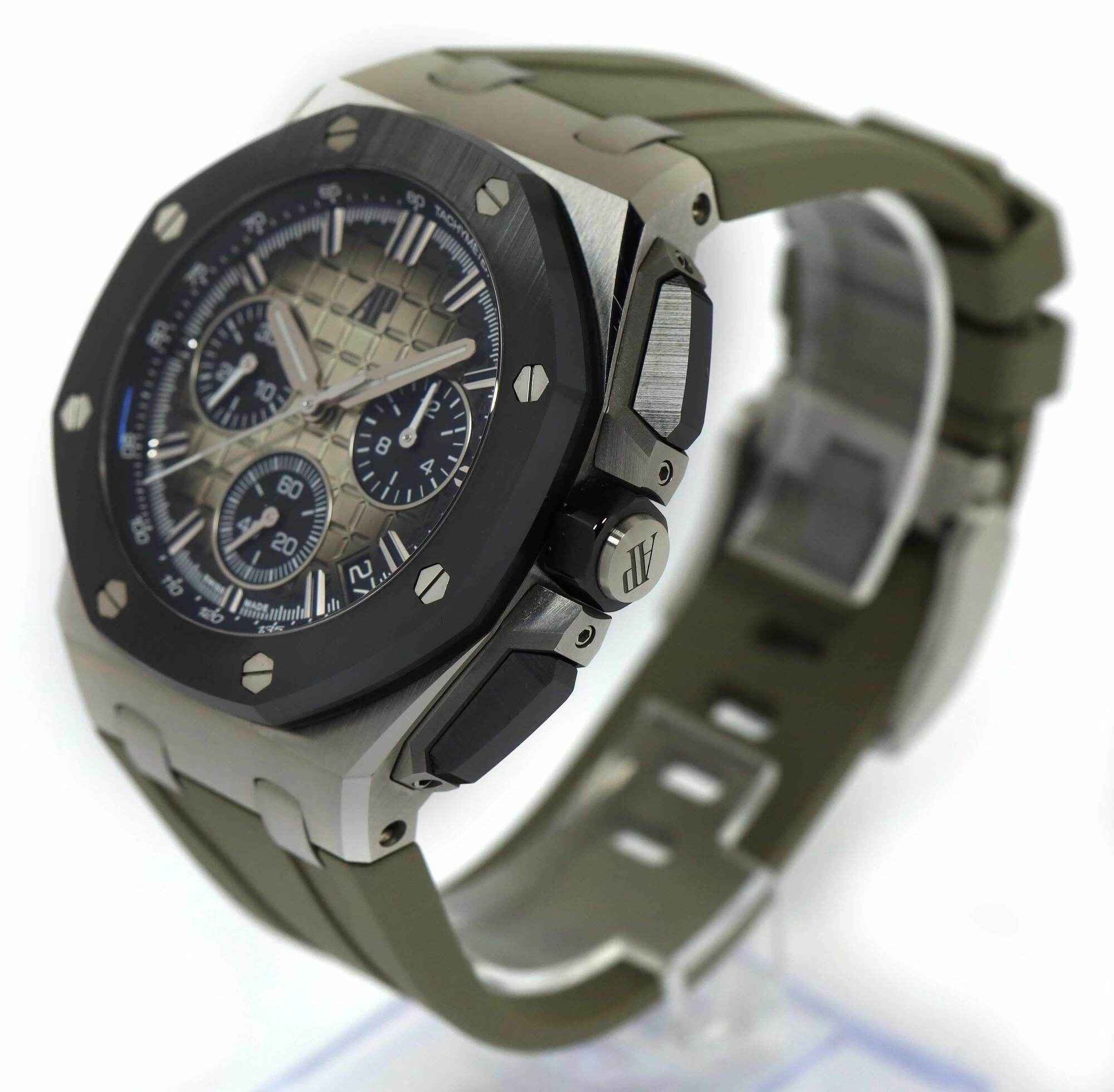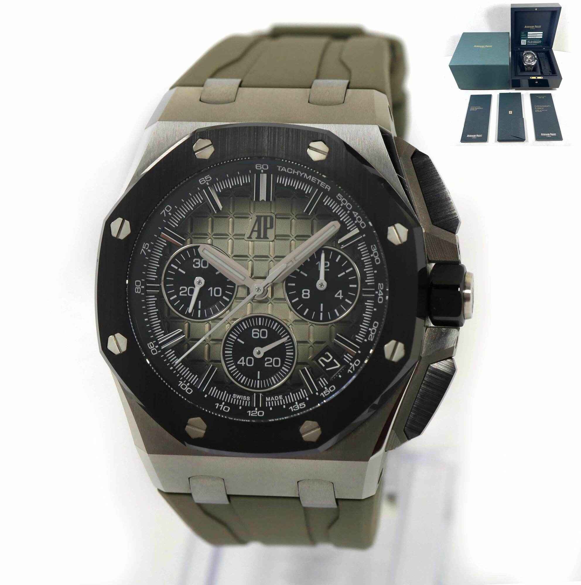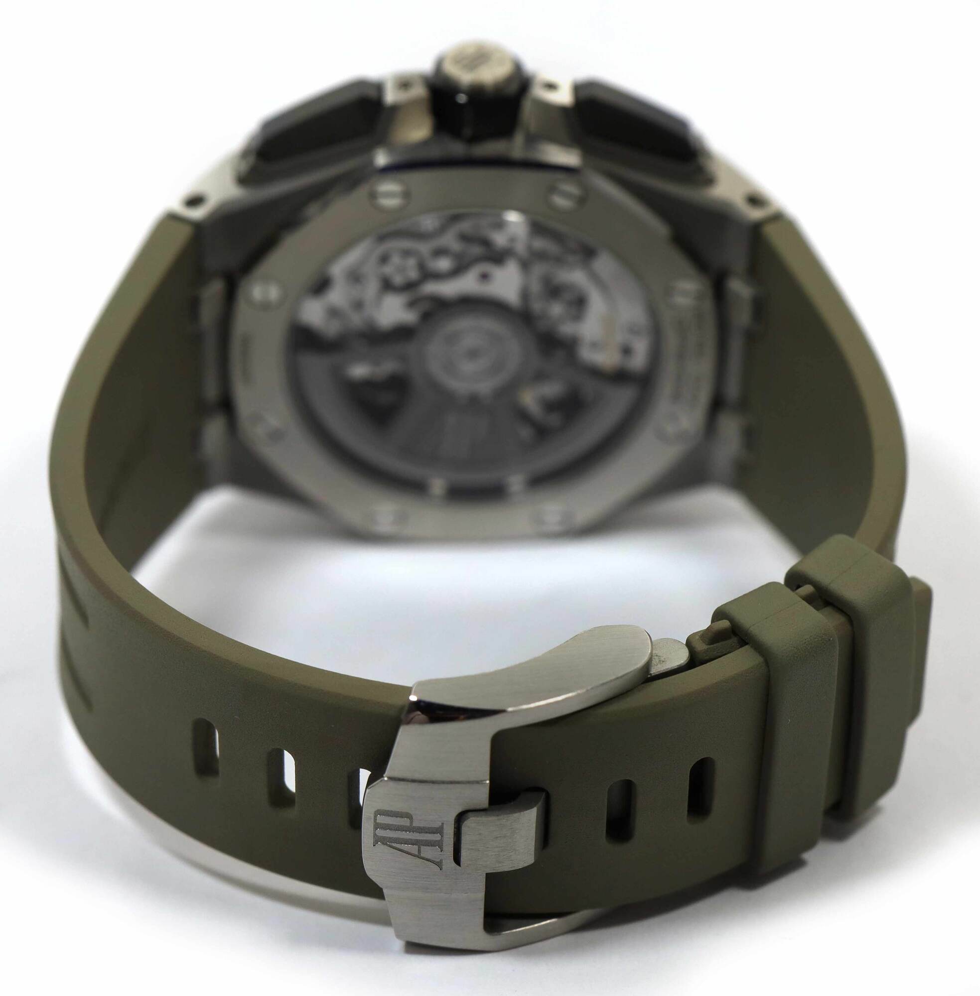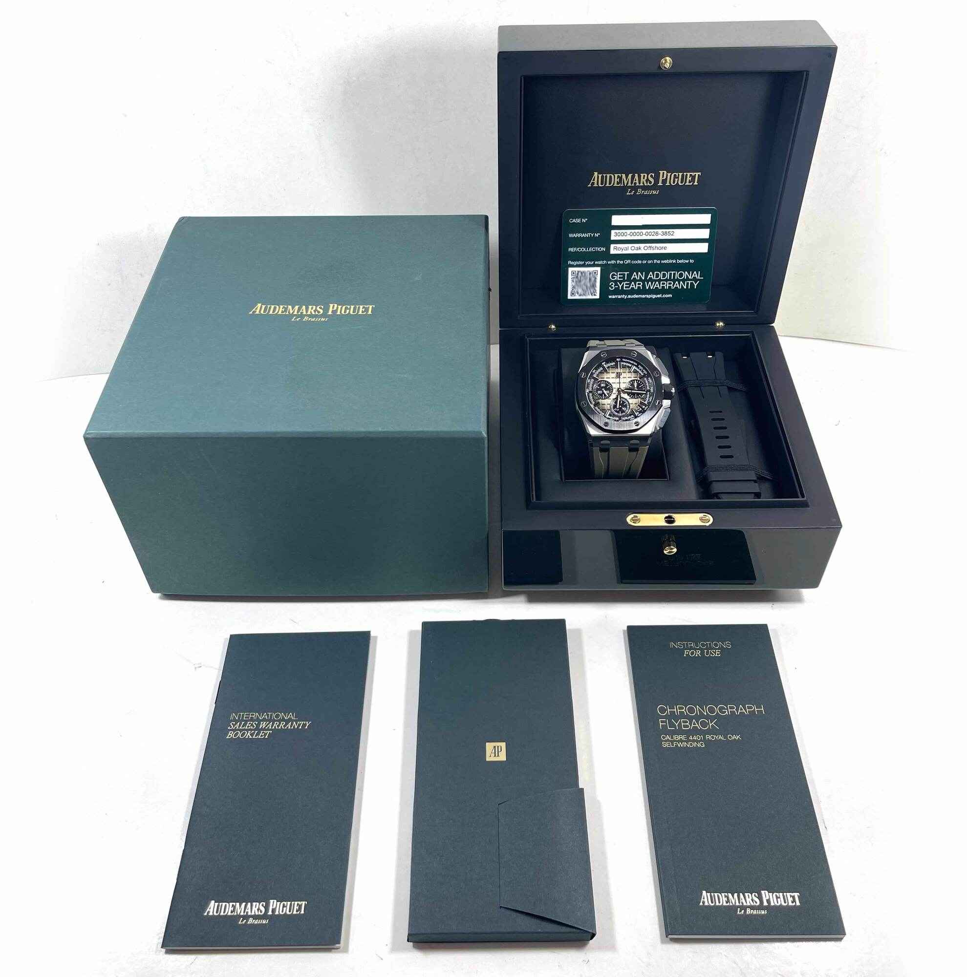 THIS AUDEMARS PIGUET IS IN MINT OVERALL CONDITION AND COMES WITH ITS BOX, BOOKLETS, ONE ADDITIONAL BLACK RUBBER STRAP, AND WARRANTY CARD AS SHOWN IN THE PICTURES ATTACHED. THIS WATCH IS IN STOCK AND AVAILABLE TO SHIP IMMEDIATELY!