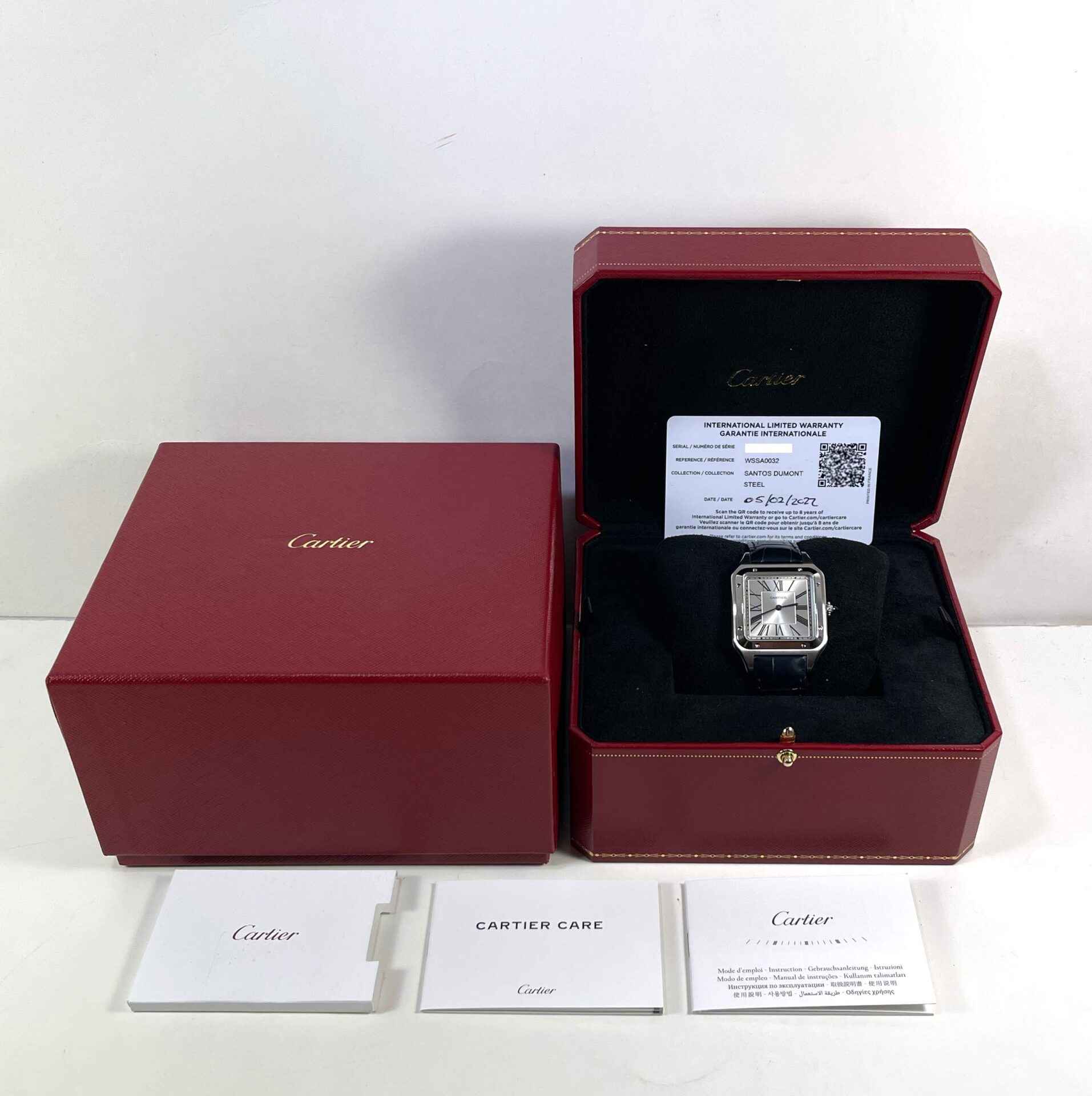 Read Morethis cartier watch is new and comes with box, papers, and warranty card dated may 2nd, 2022. the leather strap on this cartier is blue as shown in the photos attached. This watch is in stock and available to ship immediately!