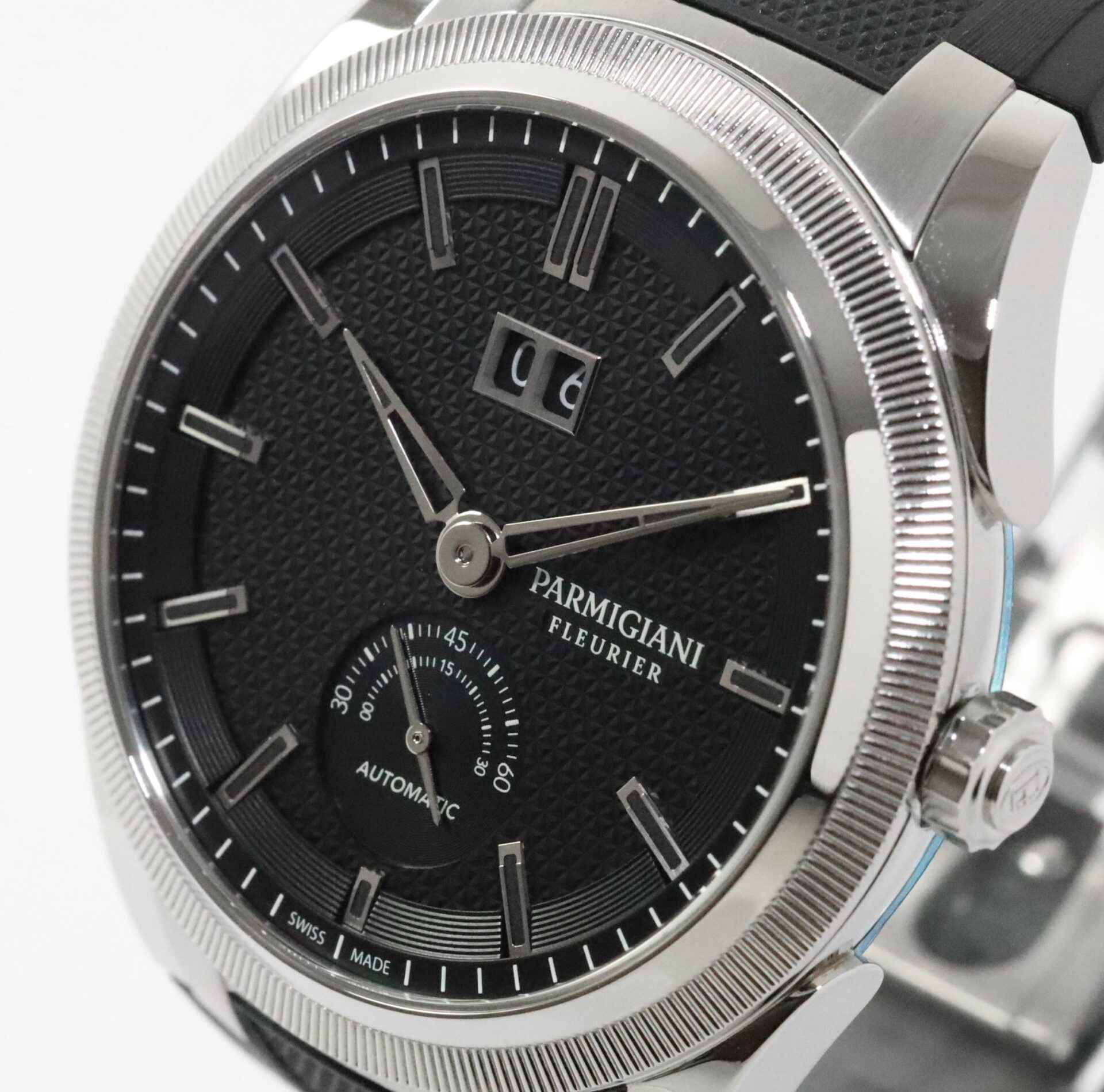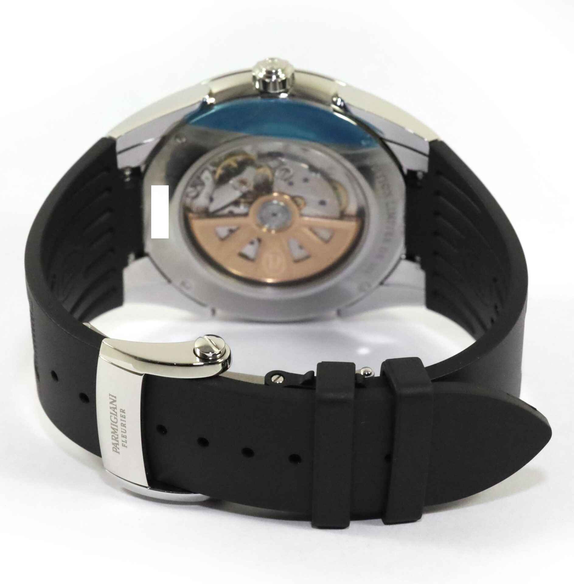 This Parmigiani is new and comes with stickers still on the caseback as shown in the pictures attached. This watch comes with box, papers, microfiber cloth, credit card holder, and warranty card dated 2022. This watch is ...