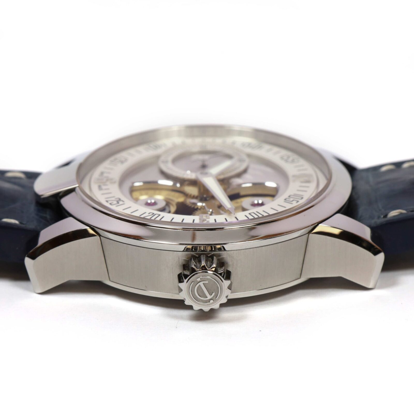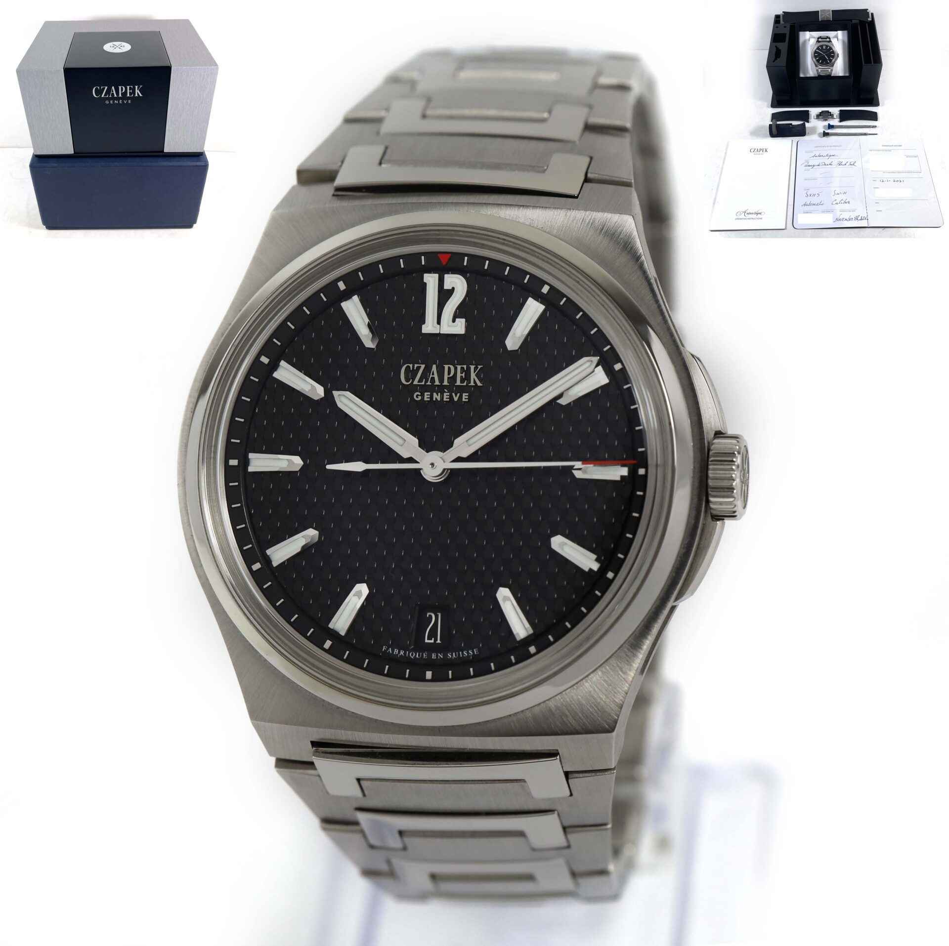 This Cartier watch is new with stickers and comes with box, papers, Cartier tool, additional rubber Cartier strap, and warranty card. This watch is in stock and available to ship immediately!
