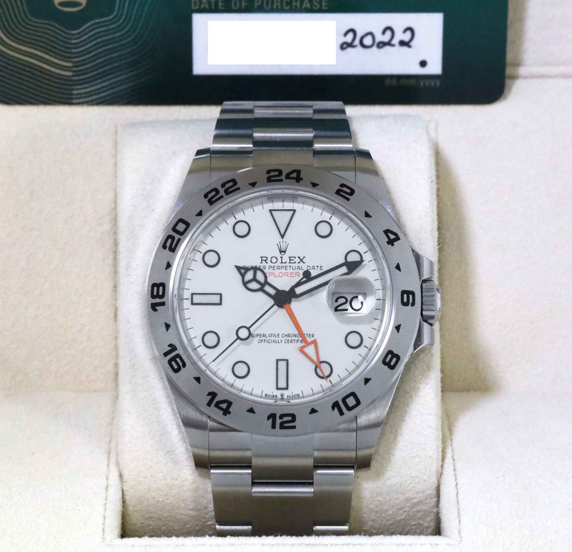 This watch is new and comes with its box, papers, spare links, green hang tag, and warranty card dated February 4th, 2022. This watch is in stock and available to ship immediately!