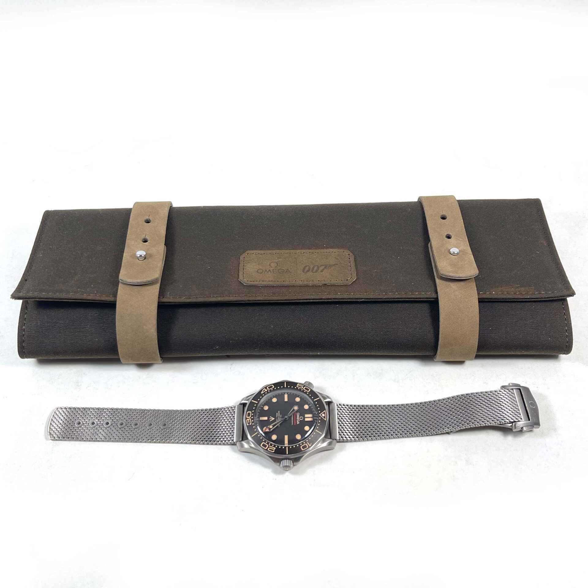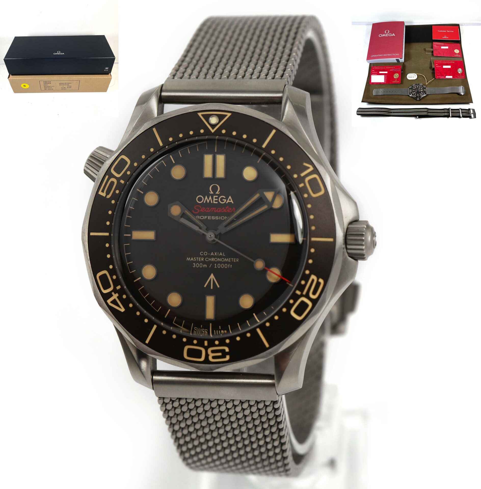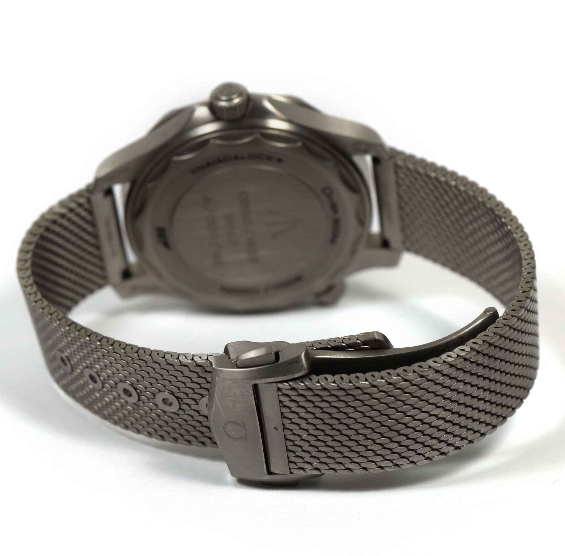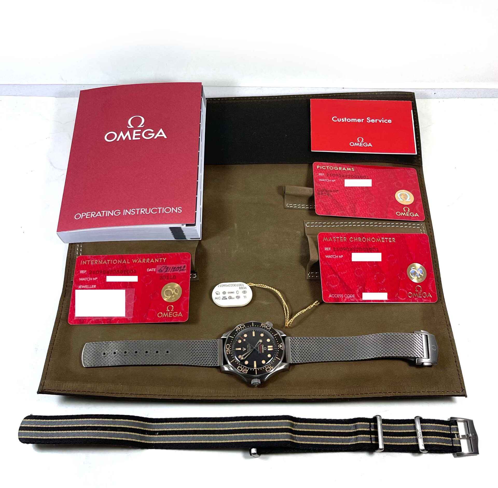 This Omega Seamster is in excellent condition and comes with box, booklet, hang tag, Omega branded travel case, one additional omega Nato strap and warranty cards dated June 21st, 2022. This watch features a titanium cas...