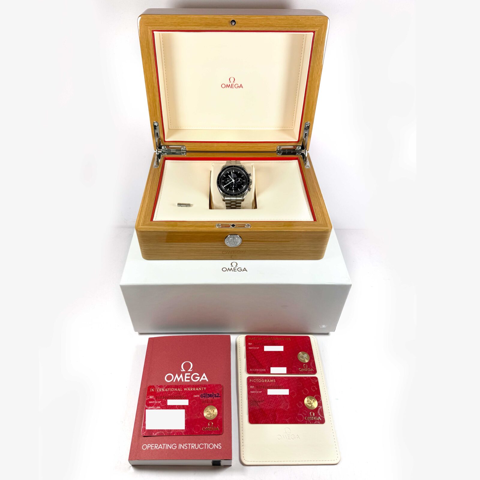 Read Morethis omega watch is in excellent overall condition showing some light signs of surface wear consistent with preowned watches. This comes with its box, booklets, and warranty cards dated july 30th, 2022 as shown in the pictures attached. This watch is in stock and available to ship immediately!
