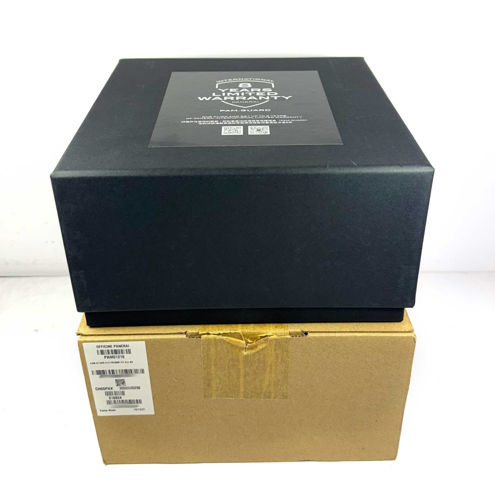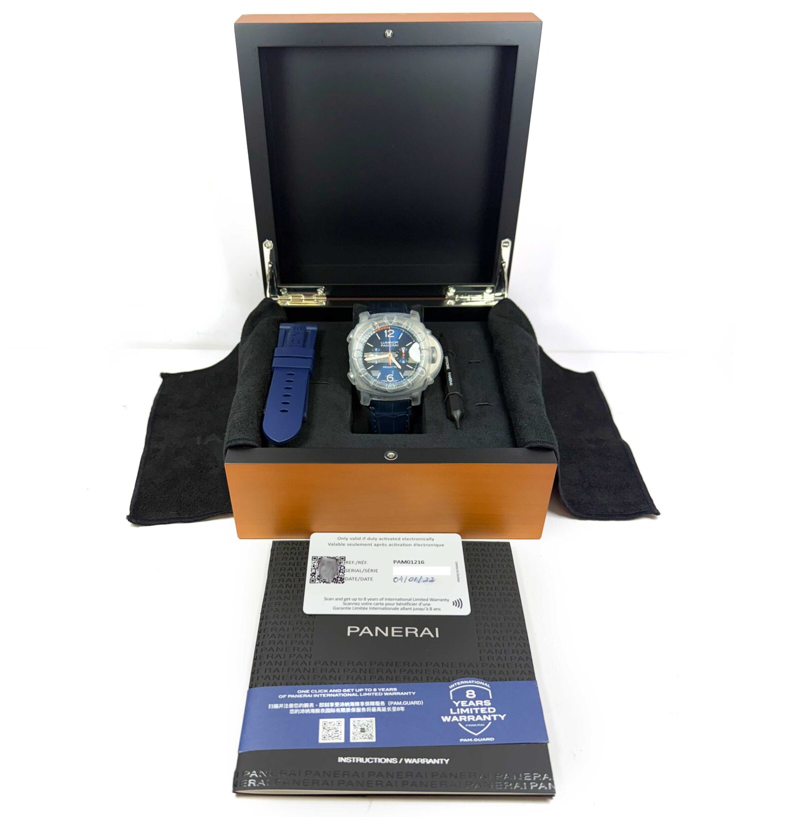 This Panerai is in excellent condition and comes with its box, booklets, Panerai tool, one additional blue rubber strap, and warranty card dated April 1st, 2022 as shown in the pictures attached. This watch is in stock and available to ship immediately!