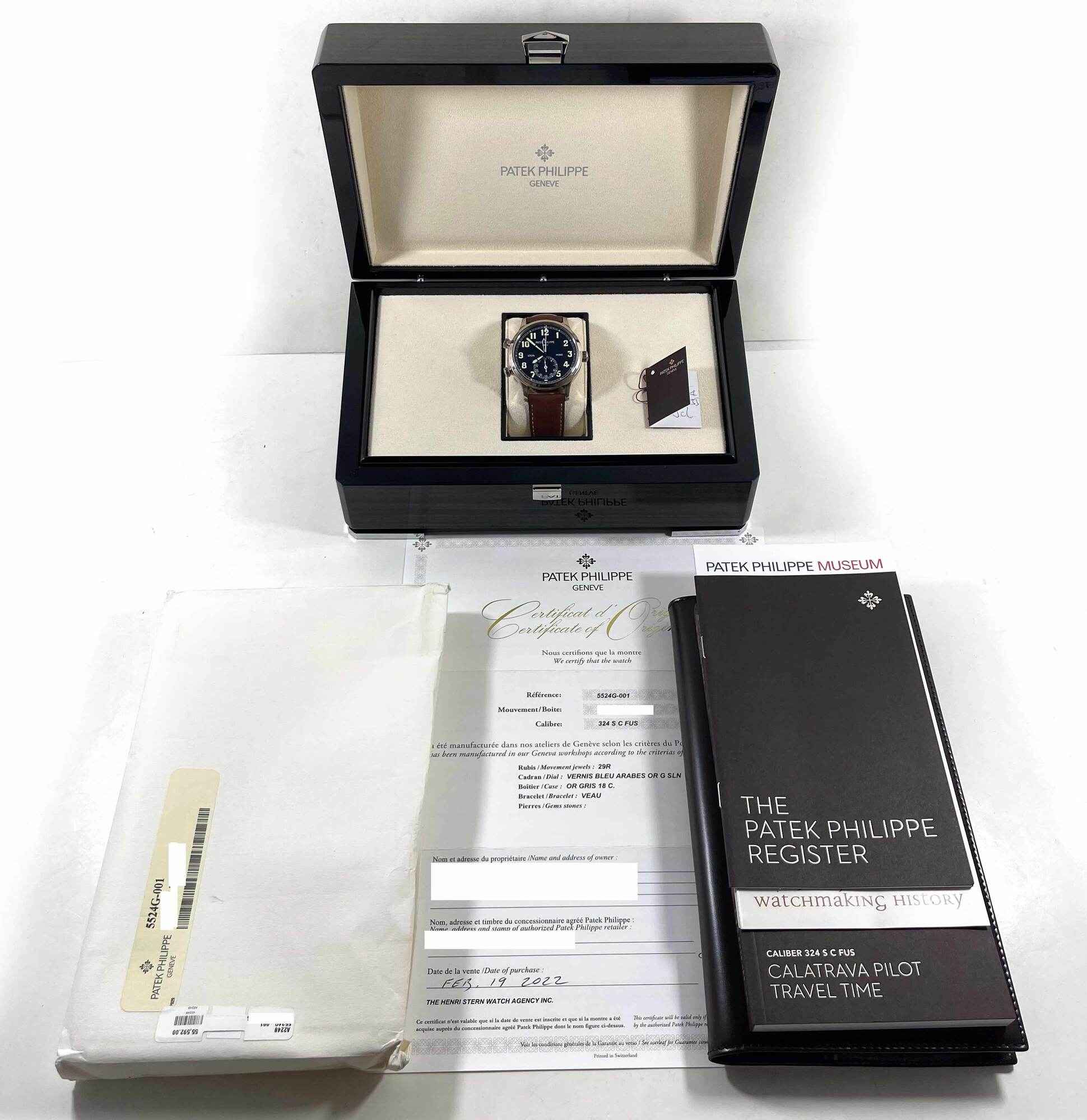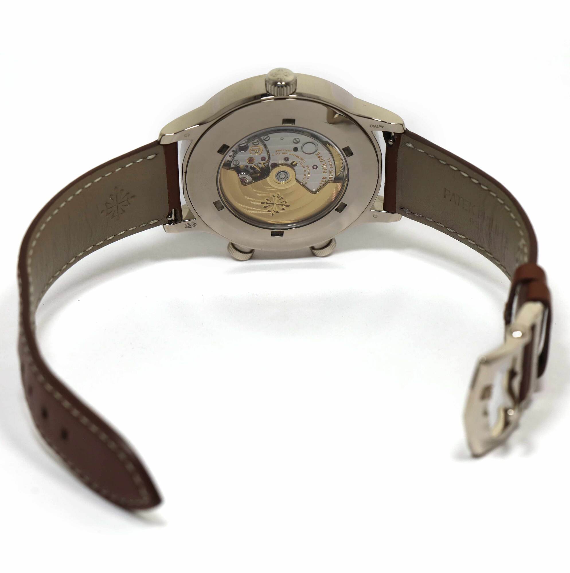 THIS PATEK IS IN EXCELLENT CONDITION AND COMES WITH ITS BOX, BOOKLETS, HANG TAG, AND WARRANTY PAPER DATED FEBRUARY 19TH, 2022 AS SHOWN IN THE PICTURES ATTACHED. THIS WATCH FEATURES A 42MM 18K WHITE GOLD CASE THAT SURROUNDS A BLUE DIAL AND COMES ON A BROWN L...
