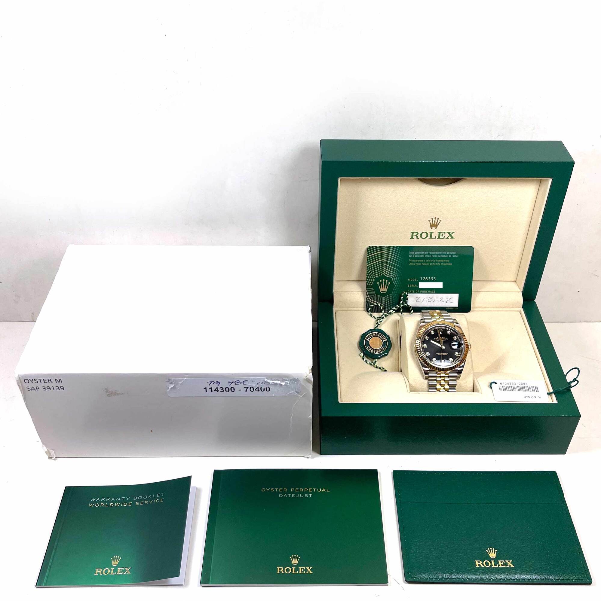 THIS ROLEX IS IN GREAT OVERALL CONDITION AND COMES WITH ITS BOX, BOOKLETS, BOTH HANG TAGS, AND WARRANTY CARD DATED AUGUST 2ND, 2022 AS SHOWN IN THE PICTURES ATTACHED. THIS WATCH IS IN STOCK AND AVAILABLE TO SHIP IMMEDIATELY!
