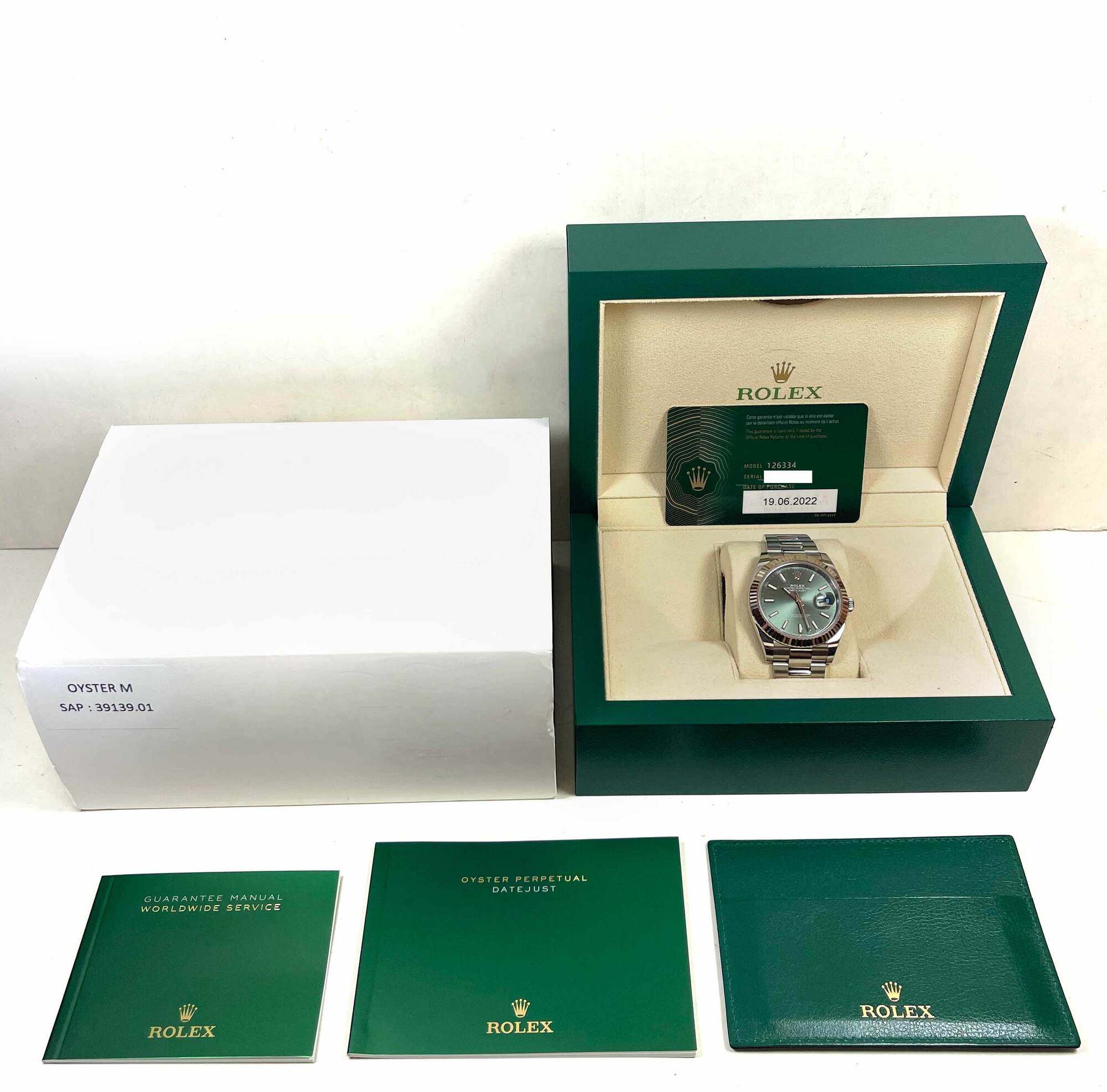 THIS ROLEX IS IN EXCELLENT OVERALL CONDITION SHOWING SOME LIGHT SIGNS OF WEAR ON THE CASE, BEZEL, AND BRACELET CONSISTENT WITH PREOWNED WATCHES. THIS COMES WITH ITS BOX, BOOKLET, AND WARRANTY CARD DATED JUNE 19TH, 2022 AS SHOWN IN THE PICTURES ATTACHED. THI...