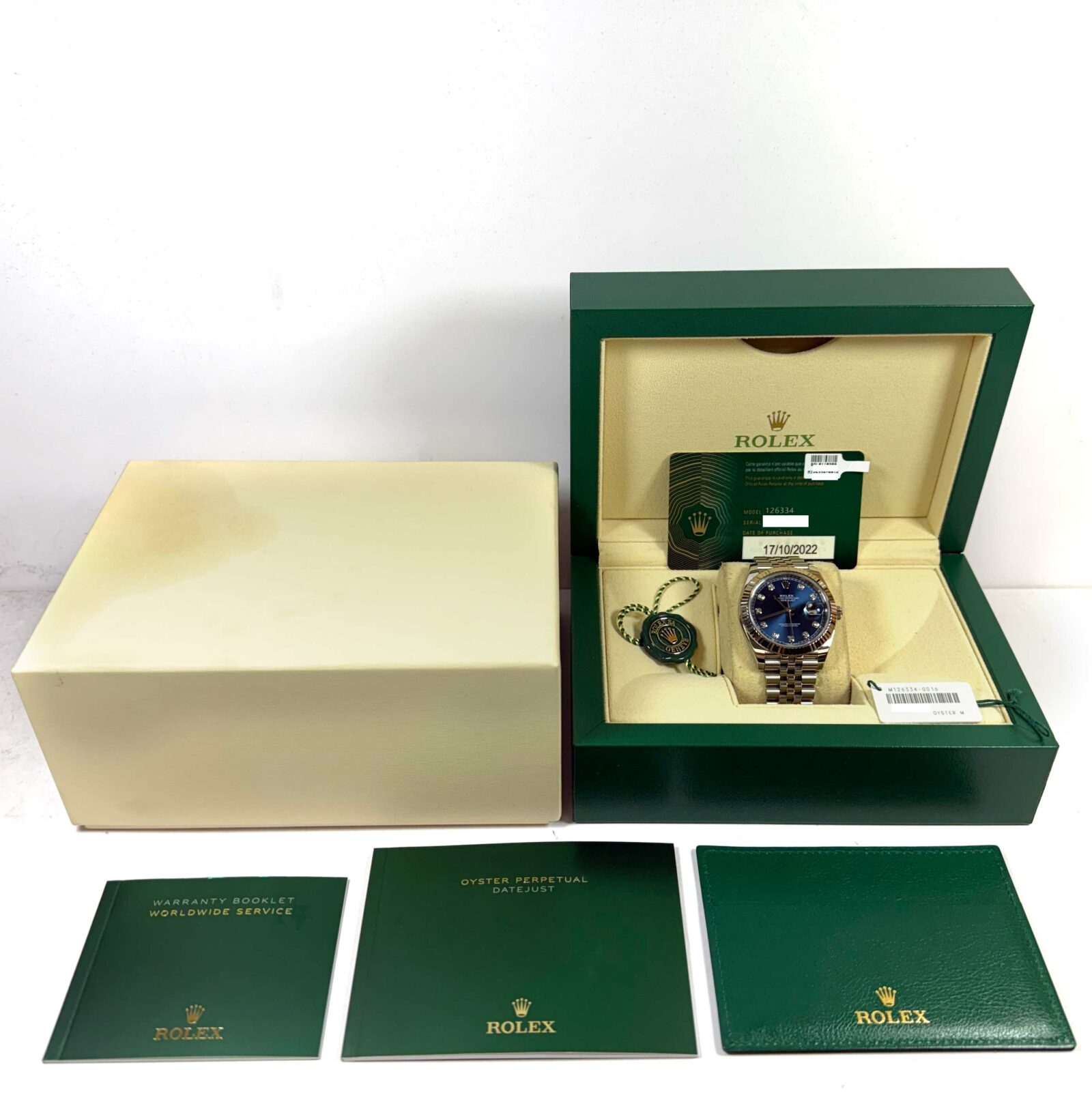 this rolex watch is in excellent overall condition and comes with its box, booklets, hang tags, and warranty card dated october 17th, 2022 as shown in the pictures attached. This watch is in stock and available to ship immediately!