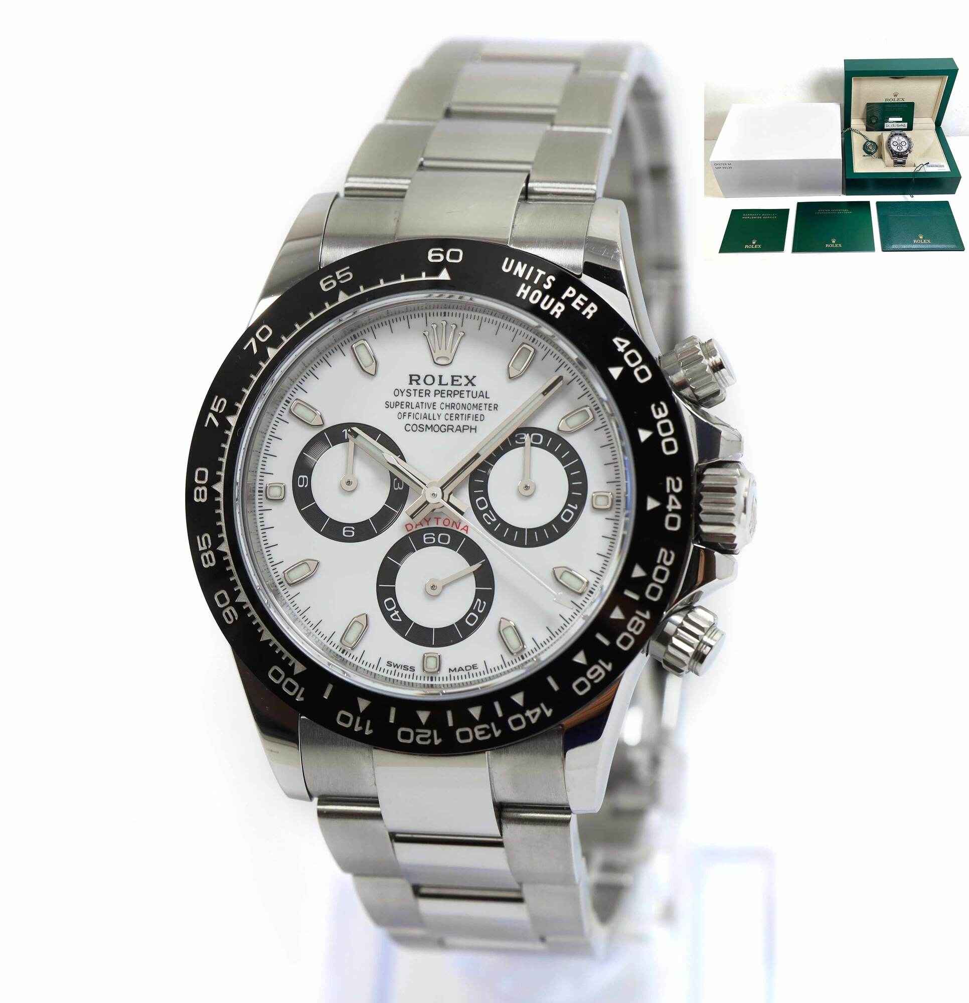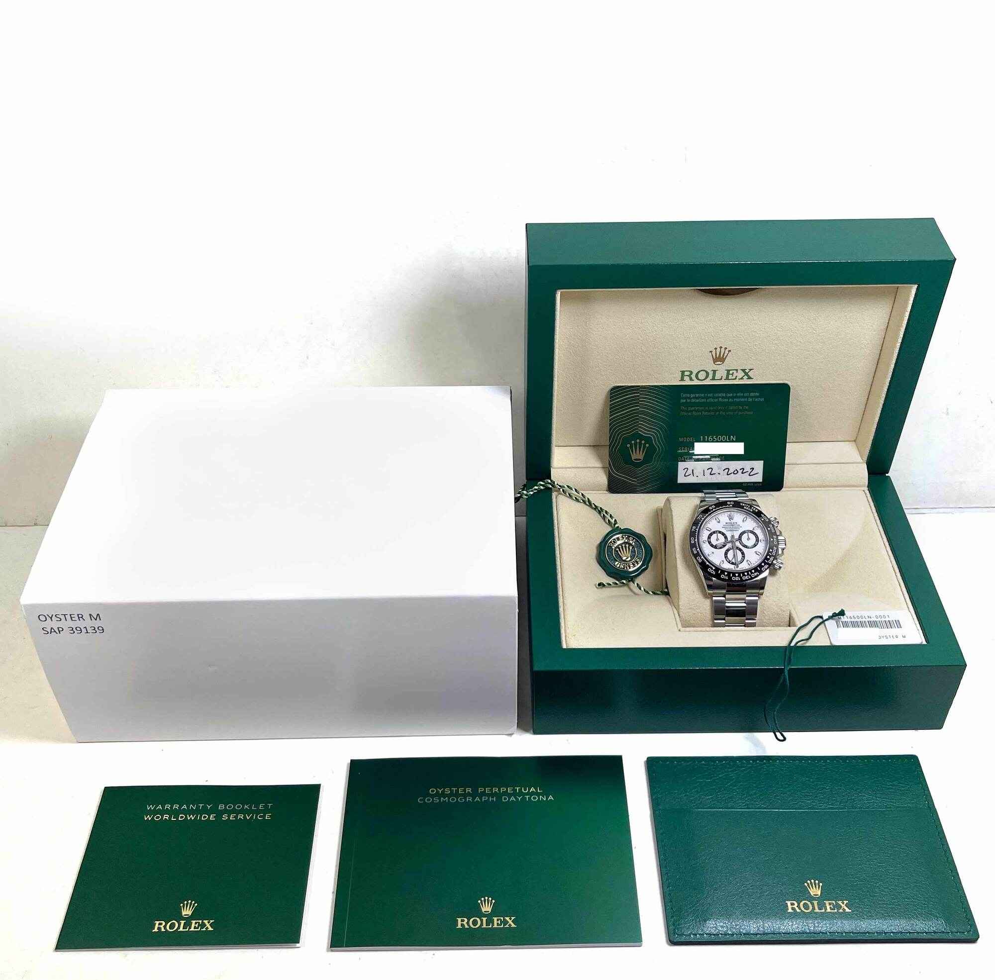 Read Morethis rolex comes with its box, booklets, both hang tags, and warranty card dated december 21st, 2022 as shown in the pictures attached. We purchased this watch from the original owner, it is in excellent unpolished condition. This watch is in stock and available to ship immediately!