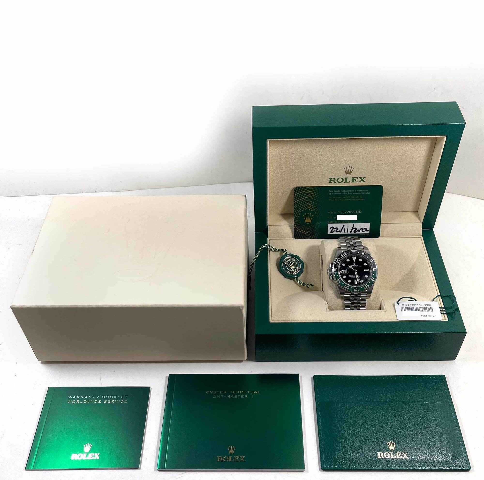 THIS ROLEX IS IN AMAZING CONDITION AND COMES WITH ITS BOX, BOOKLETS, BOTH HANG TAGS, AND WARRANTY CARD DATED NOVEMBER 22ND, 2022 AS SHOWN IN THE PICTURES ATTACHED. THIS WATCH SHOWS SOME MINOR WEAR ON THE CLASP FROM THE PREVIOUS OWNER BUT OVERALL LOOKS AMAZI...
