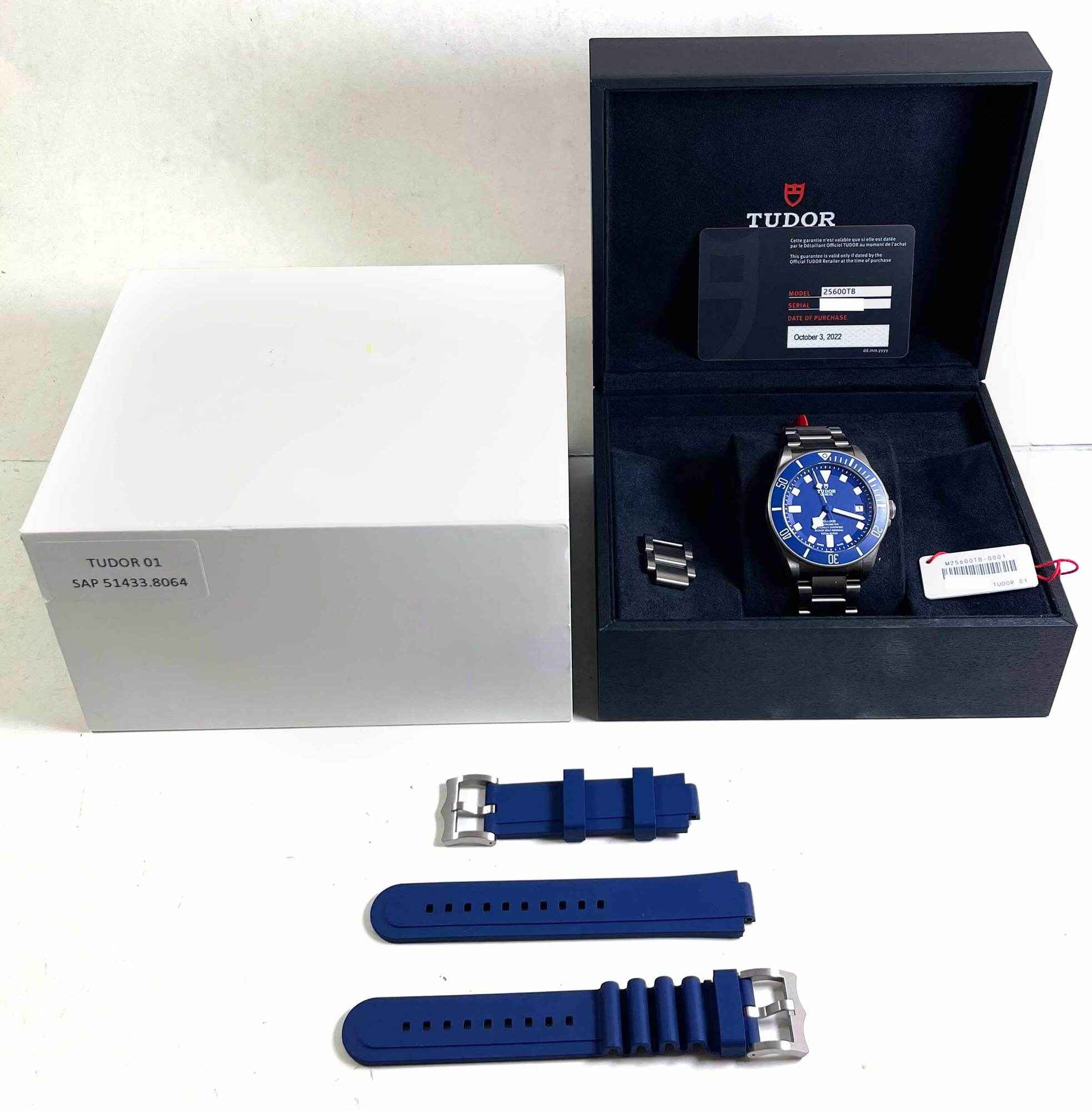 THIS TUDOR IS IN EXCELLENT CONDITION AND COMES WITH ITS BOX, HANG TAG, SPARE LINKS, ADDITIONAL BLUE RUBBER STRAP, AND WARRANTY CARD DATED OCTOBER 3RD, 2022 AS SHOWN IN THE PICTURES ATTACHED. THIS WATCH IS IN STOCK AND AVAILABLE TO SHIP IMMEDIATELY!