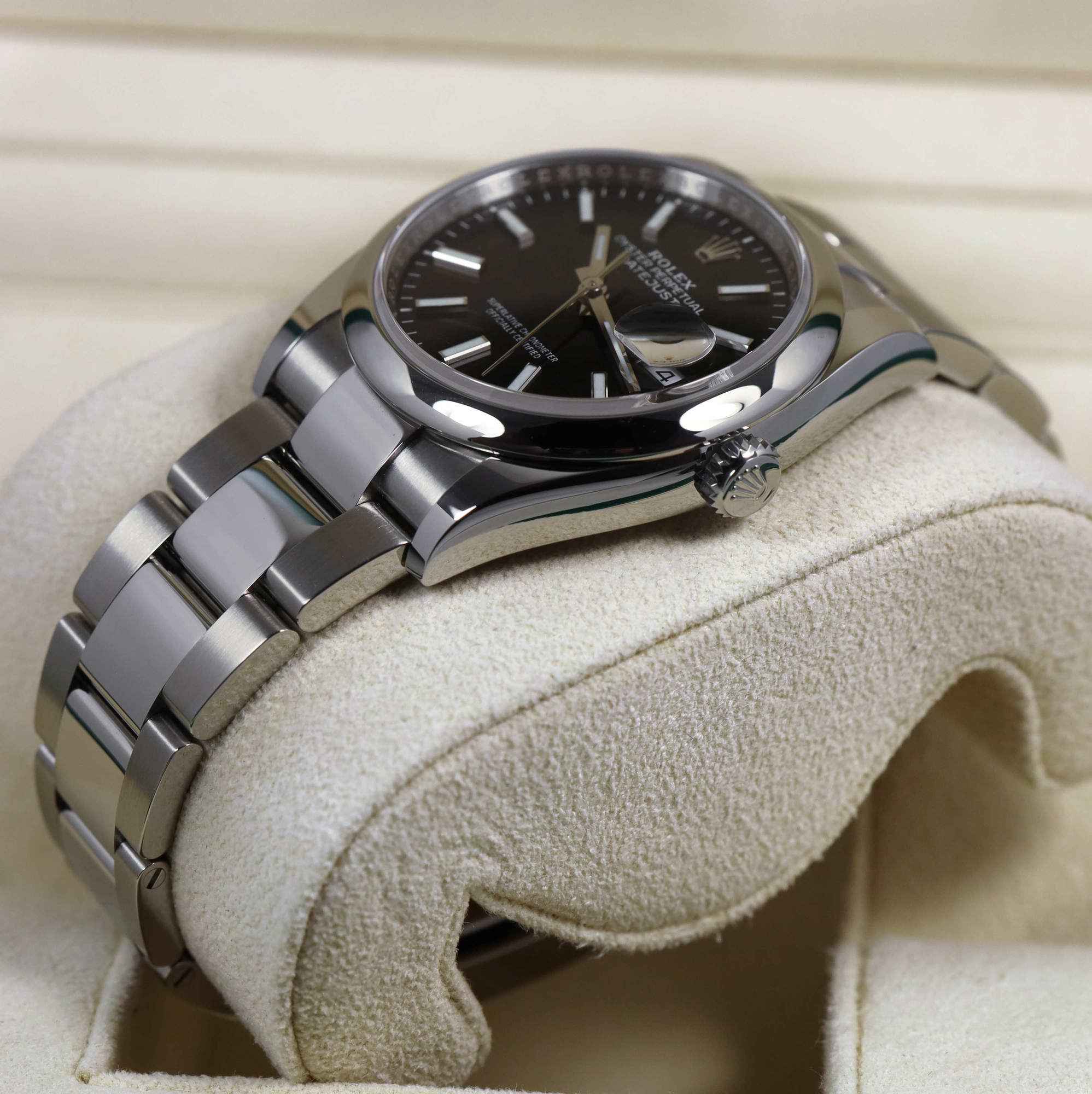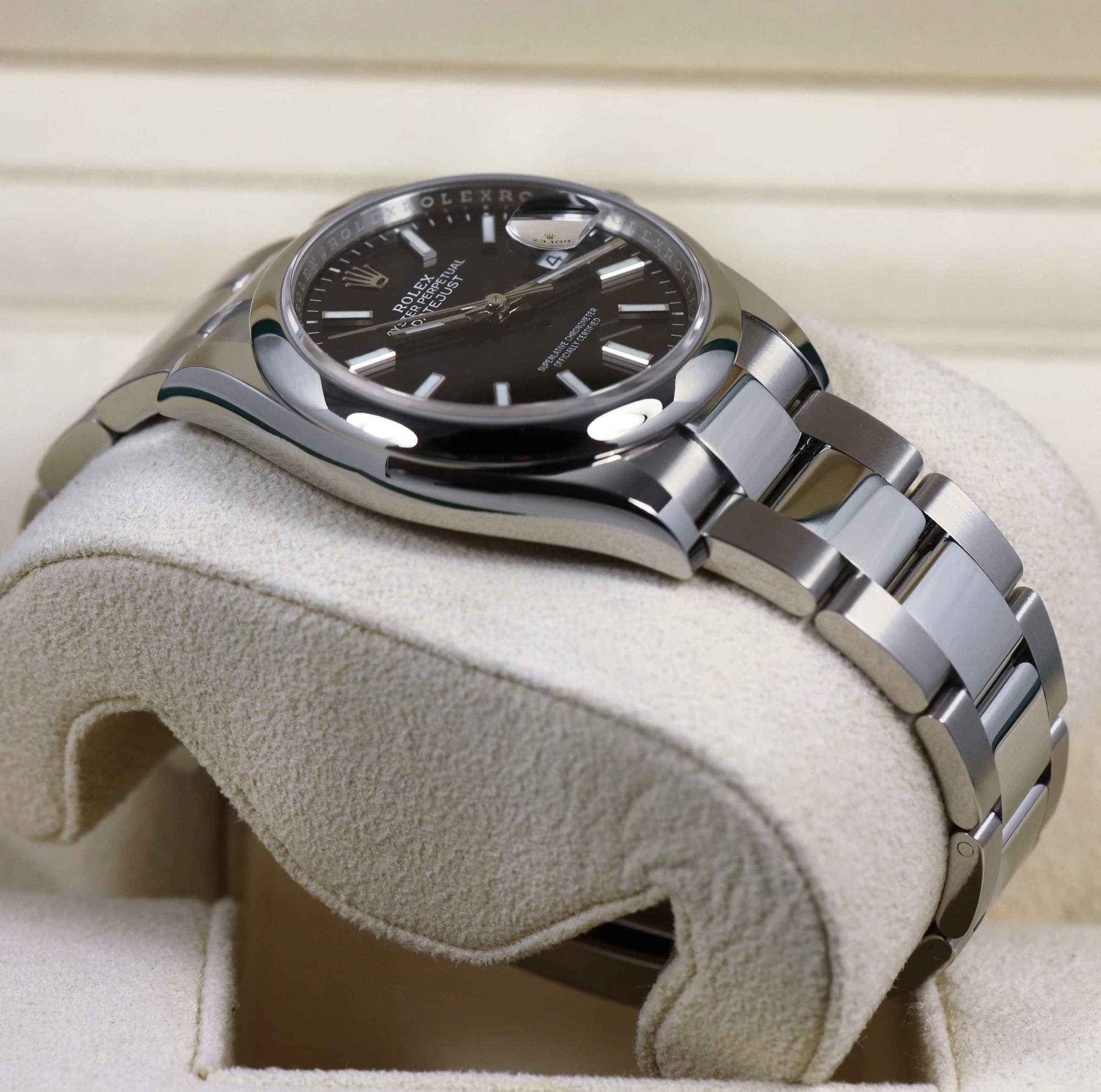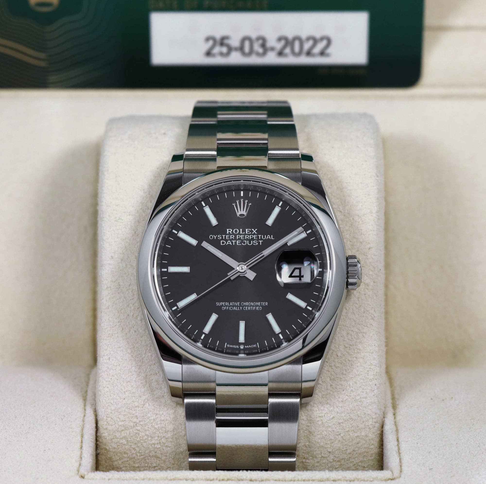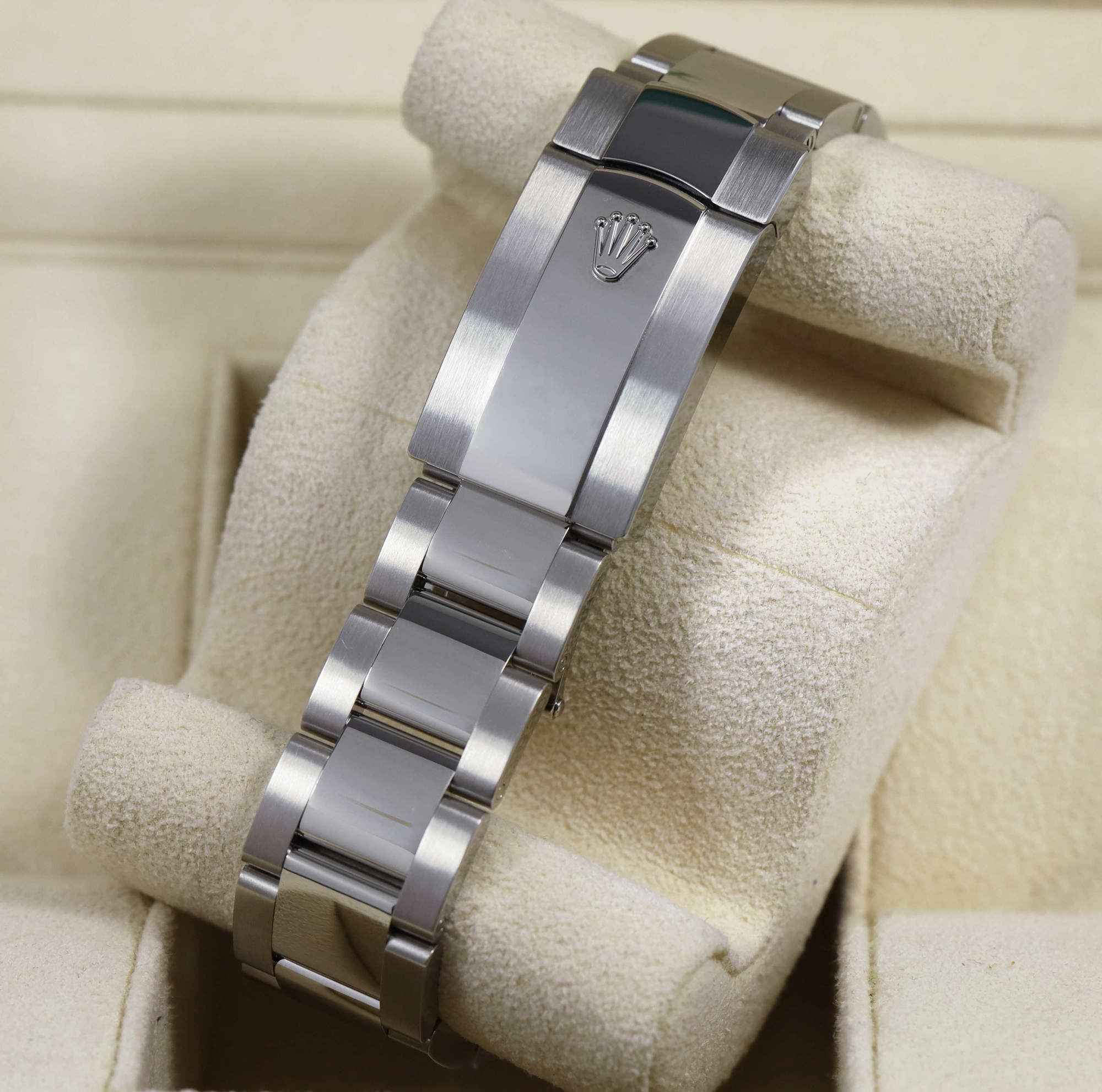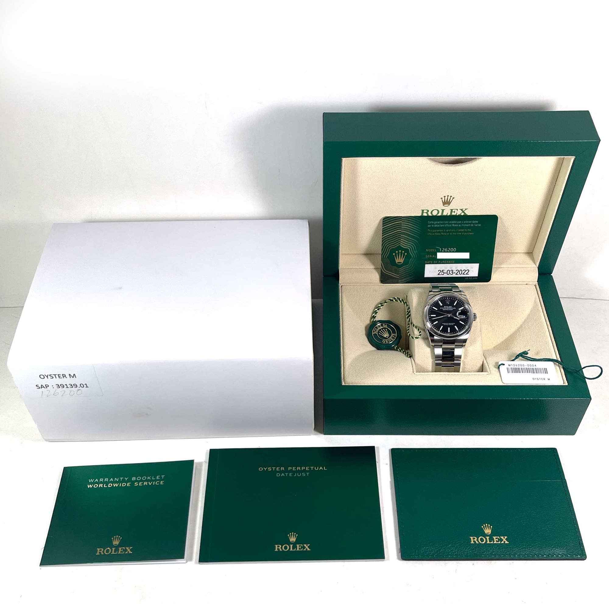 This Rolex is new and comes with its box, papers, hang tags, and warranty card dated March 25th, 2022 as shown in the pictures attached. This watch is in stock and available to ship immediately!