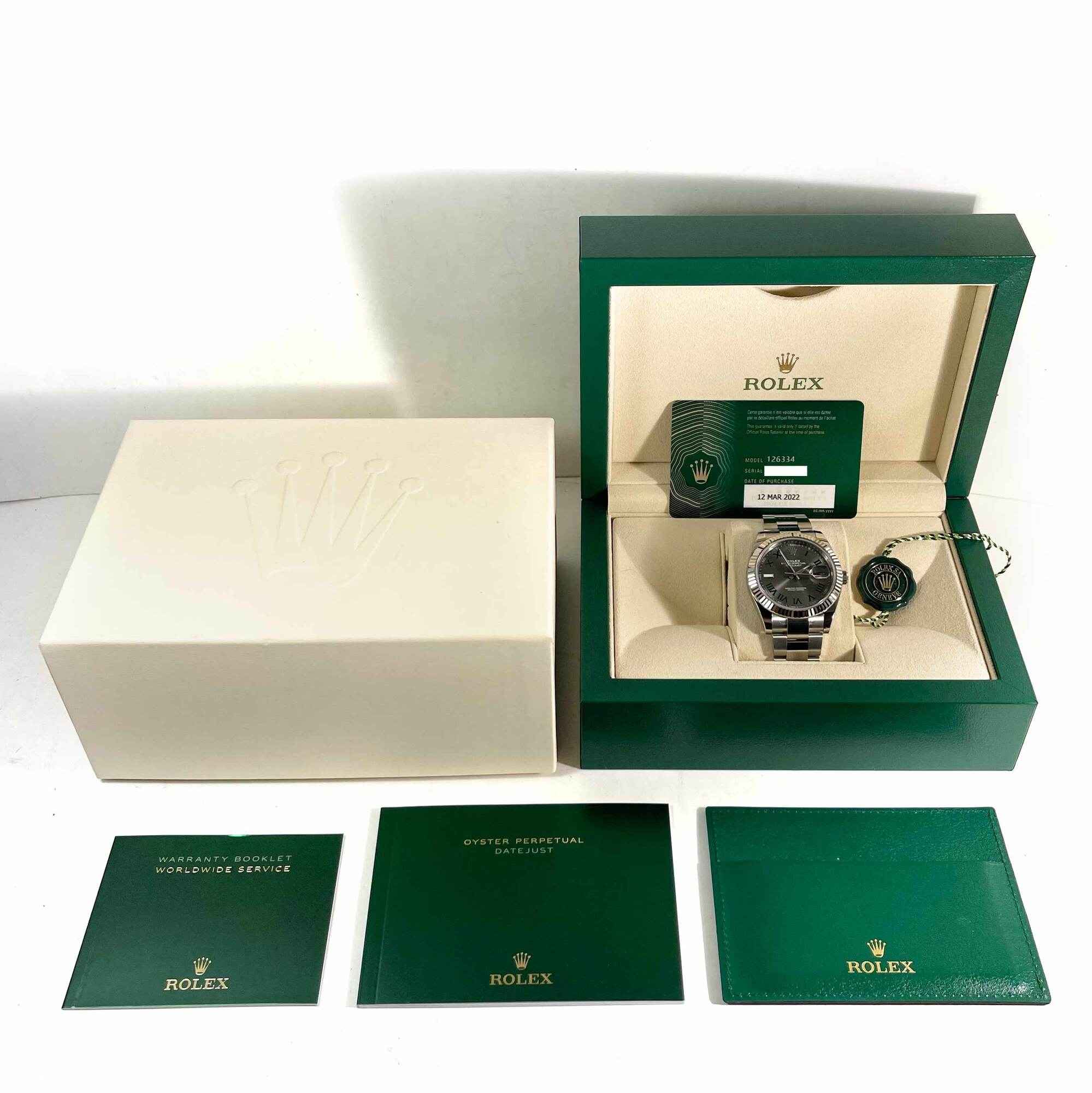 THIS ROLEX IS UNWORN AND COMES WITH ITS BOX, BOOKLETS, GREEN HANG TAG, AND WARRANTY CARD DATED MARCH 12TH, 2022 AS SHOWN IN THE PICTURES ATTACHED. THIS WATCH IS IN STOCK AND AVAILABLE TO SHIP IMMEDIATELY!