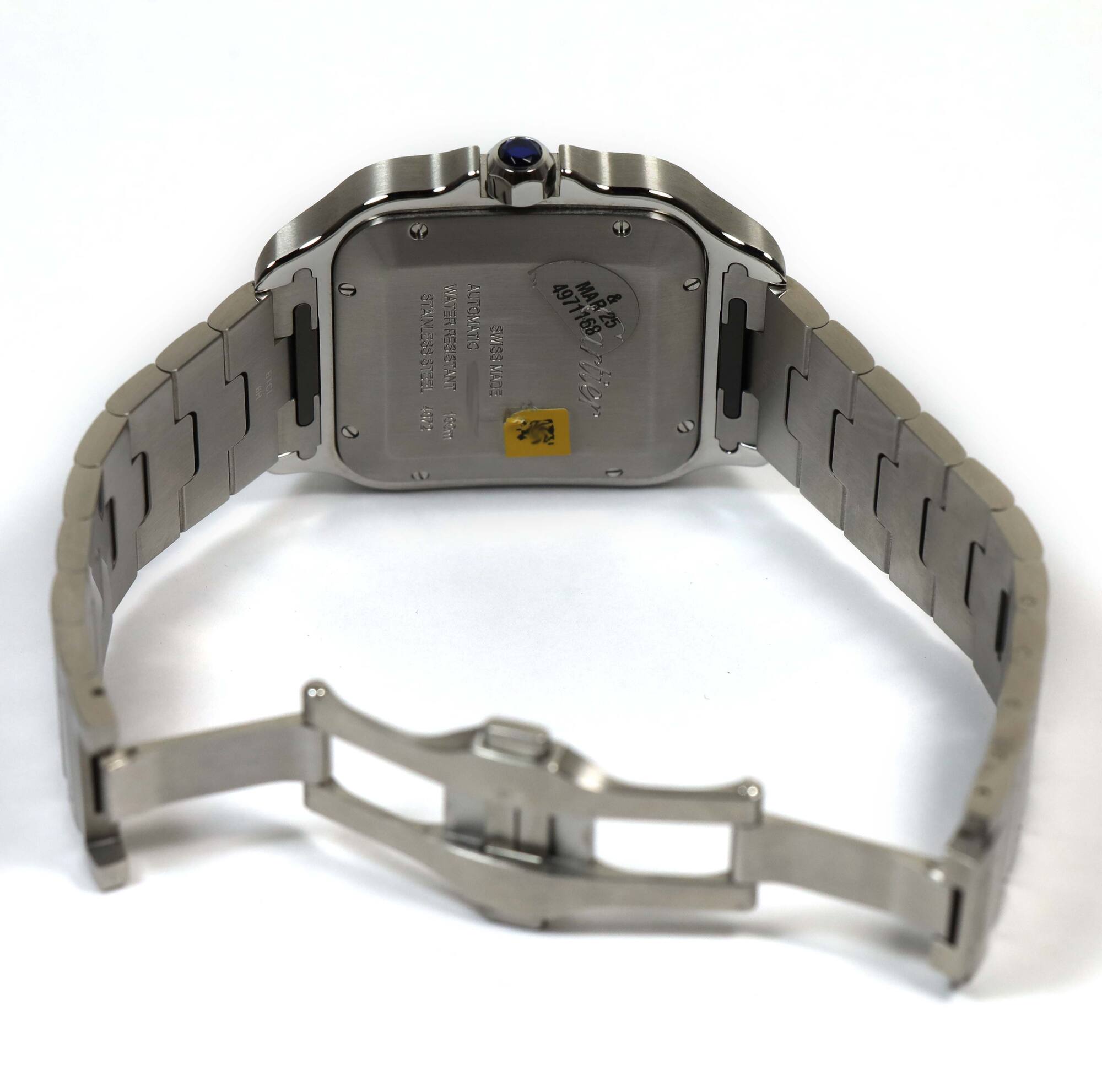 THIS CARTIER WATCH IS IN EXCELLENT OVERALL CONDITION AND COMES WITH ITS BOX, SPARE LINKS, ONE ADDITIONAL GREEN LEATHER STRAP, CARTIER TOOL, BEZEL PROTECTOR, AND WARRANTY CARD DATED JUNE 24TH, 2023 AS SHOWN IN THE PICTURES ATTACHED. THIS WATCH IS IN STOCK AN...