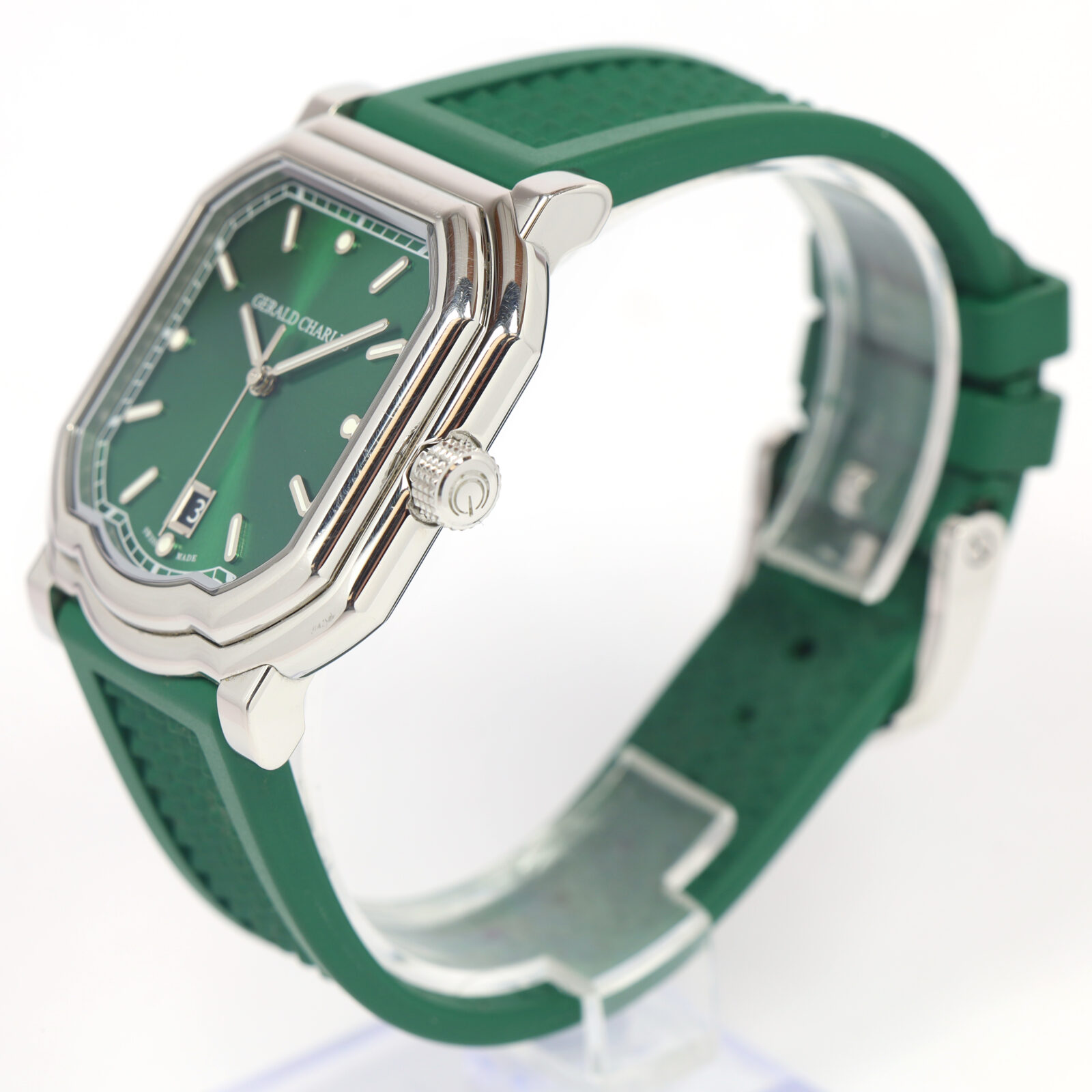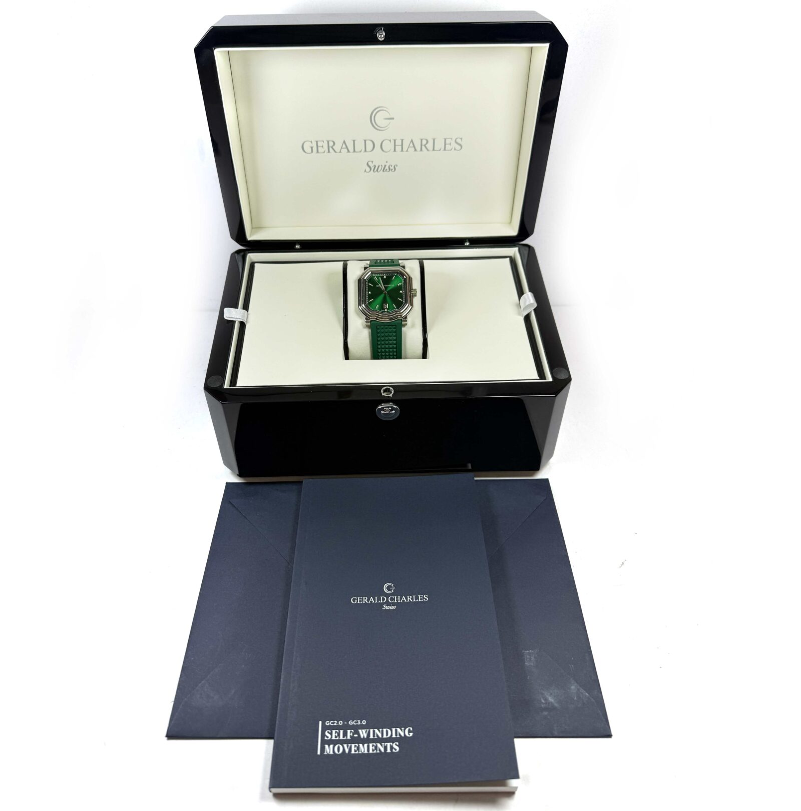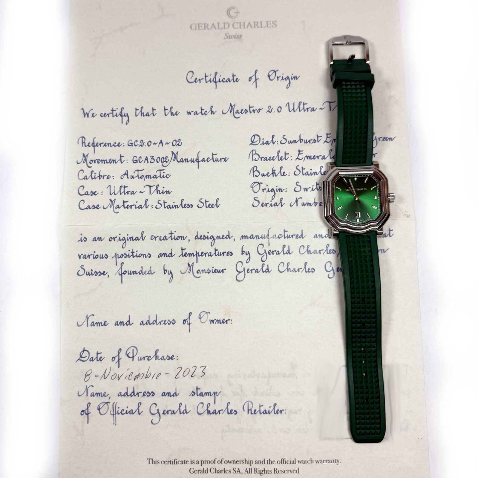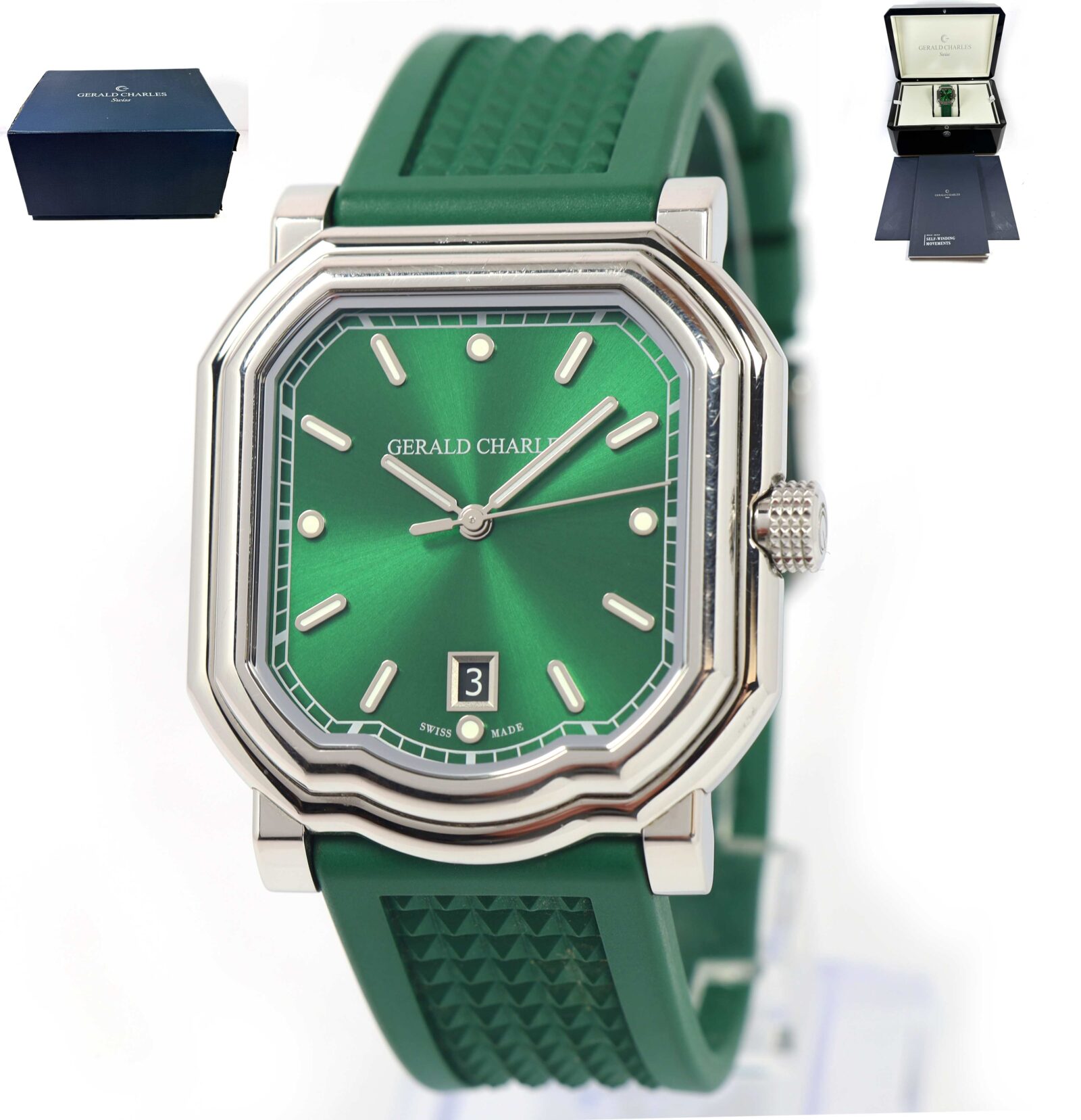 this gerald charles watch is in excellent overall condition showing some signs of surface wear consistent with preowned watches. This comes with its box, booklets, and warranty paper dated november 8th, 2023 as shown in the pictures attached. This watch is in stock and available to ship immediately!