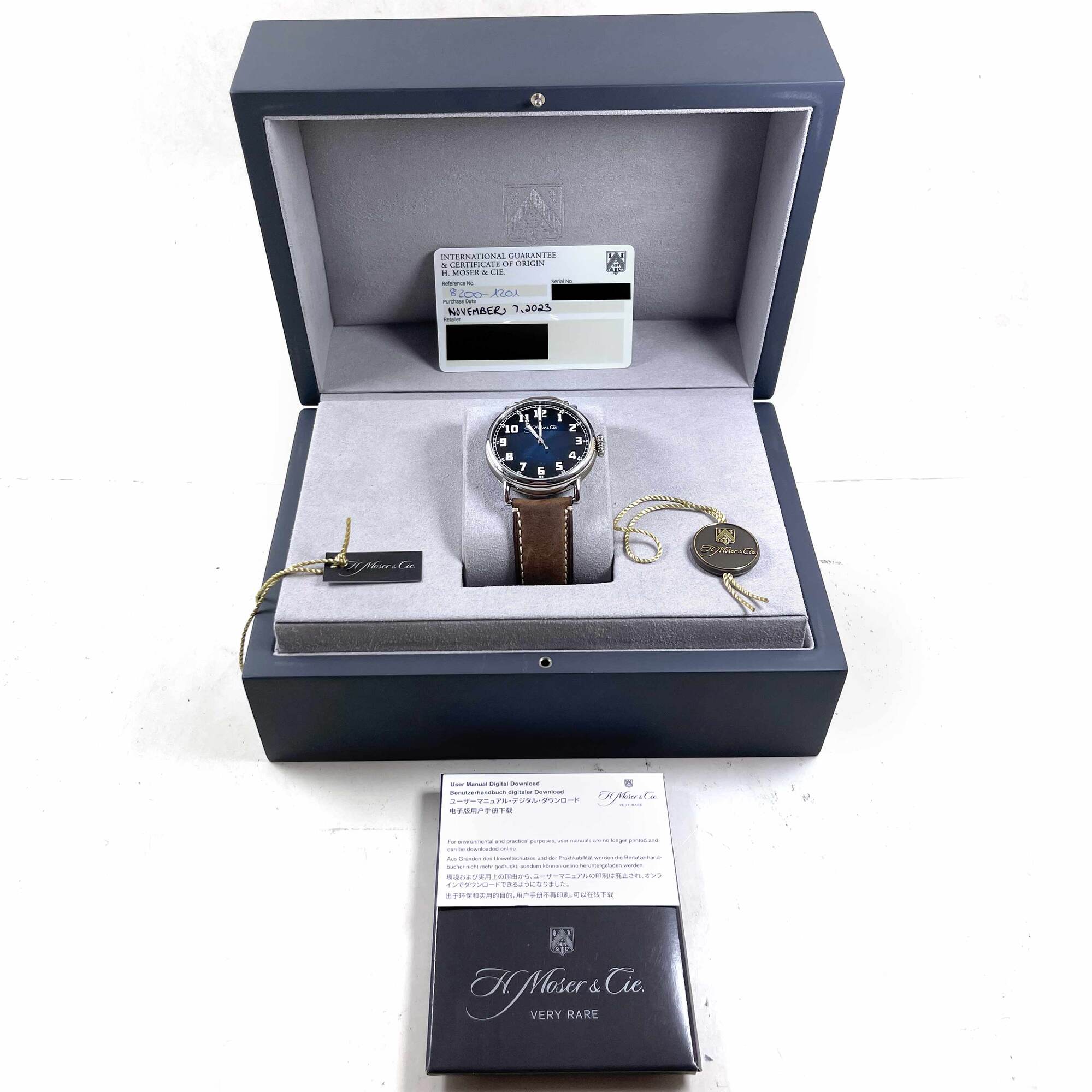 THIS H.MOSER WATCH IS IN EXCELLENT CONDITION SHOWING SOME LIGHT SIGNS OF WEAR ON THE CASE CONSISTENT WITH PREOWNED WATCHES. THIS COMES WITH ITS BOX, HANG TAGS, AND WARRANTY CARD DATED NOVEMBER 7TH, 2023. THIS WATCH IS IN STOCK AND AVAILABLE TO SHIP IMMEDIAT...
