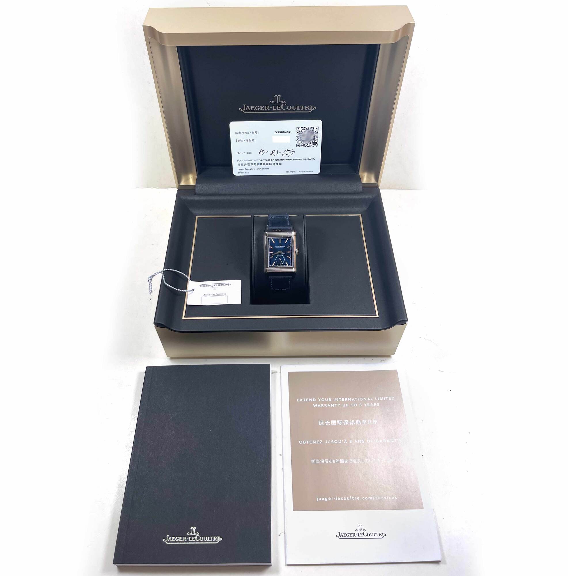 THIS JLC REVERSO WATCH IS IN EXCELLENT OVERALL CONDITION SHOWING SOME MINOR SIGNS OF WEAR ON THE BEZEL FROM THE PREVIOUS OWNER. THIS COMES WITH ITS BOX, BOOKLETS, HANG TAG, AND WARRANTY CARD DATED OCTOBER 21ST, 2023 AS SHOWN IN THE PICTURES ATTACHED. THIS W...