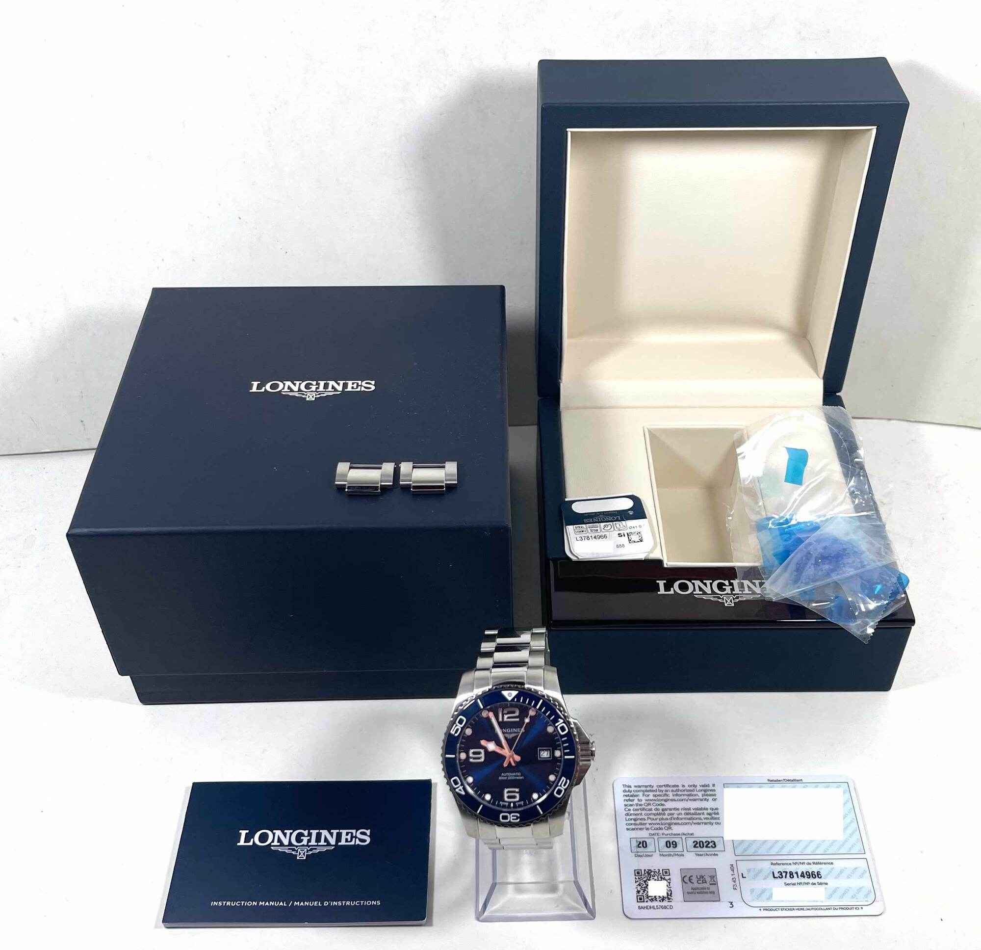 THIS LONGINES WATCH IS IN EXCELLENT CONDITION AND COMES WITH ITS BOX, BOOKLET, SPARE LINKS, AND WARRANTY CARD DATED SEPTEMBER 20TH, 2023 AS SHOWN IN THE PICTURES ATTACHED. THIS WATCH IS IN STOCK AND AVAILABLE TO SHIP IMMEDIATELY!