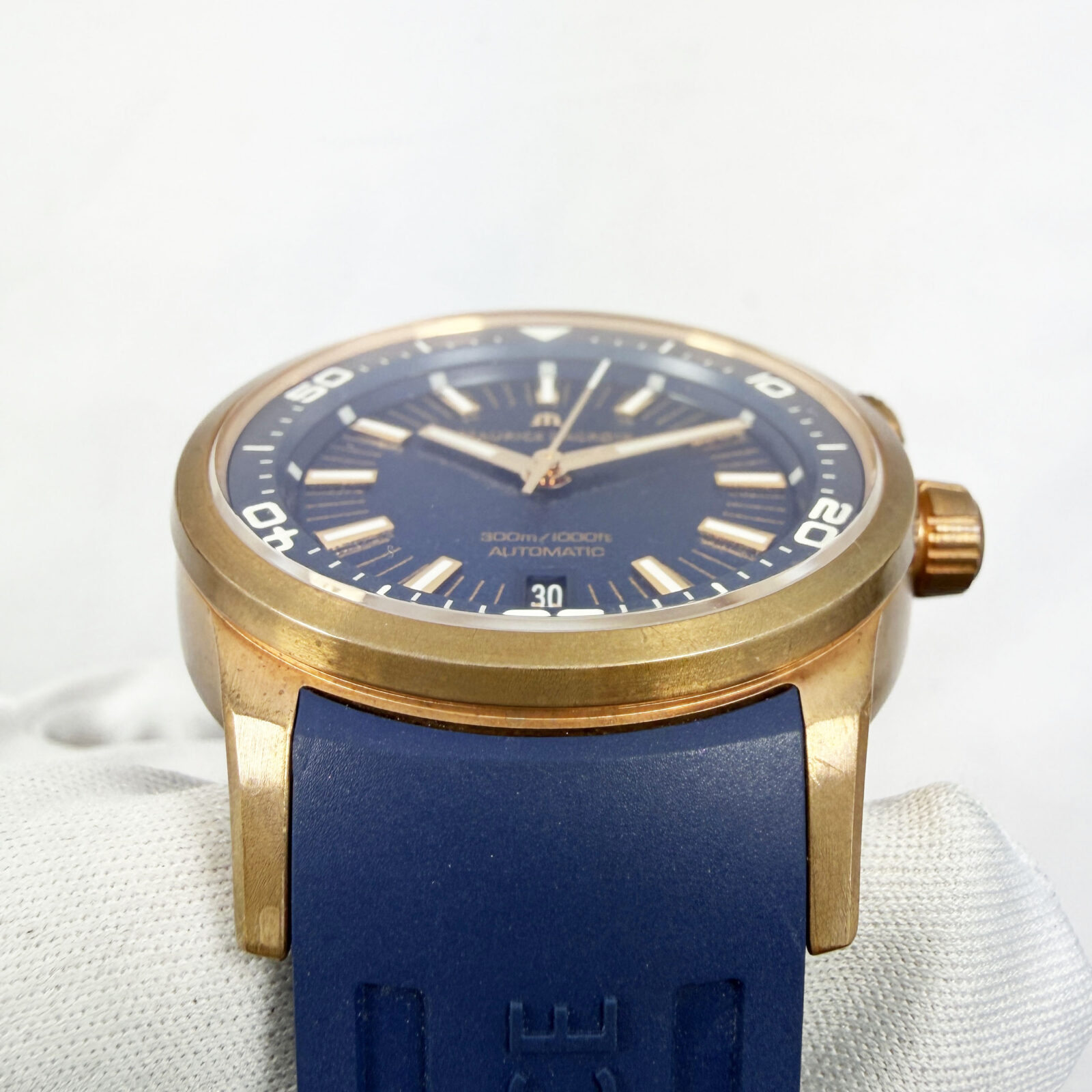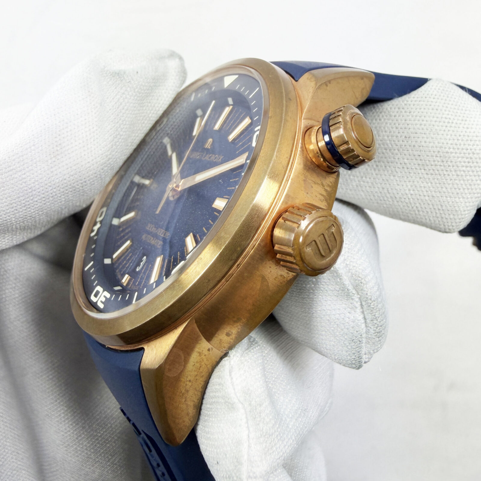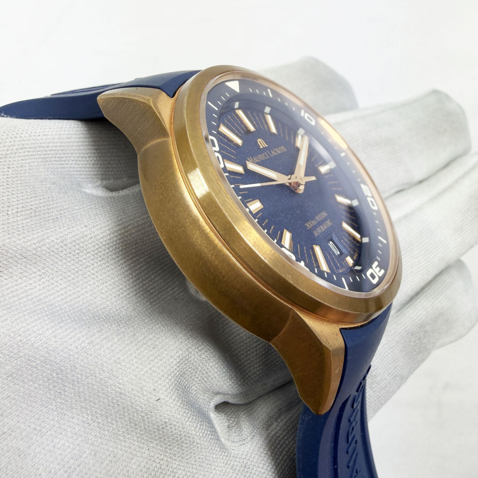 This Maurice Lacroix watch comes with its box, extra straps, and warranty booklet dated August, 2023. The photos shown are of the exact watch being sold and accurately represent its condition. This watch is in stock and ready to ship immediately!