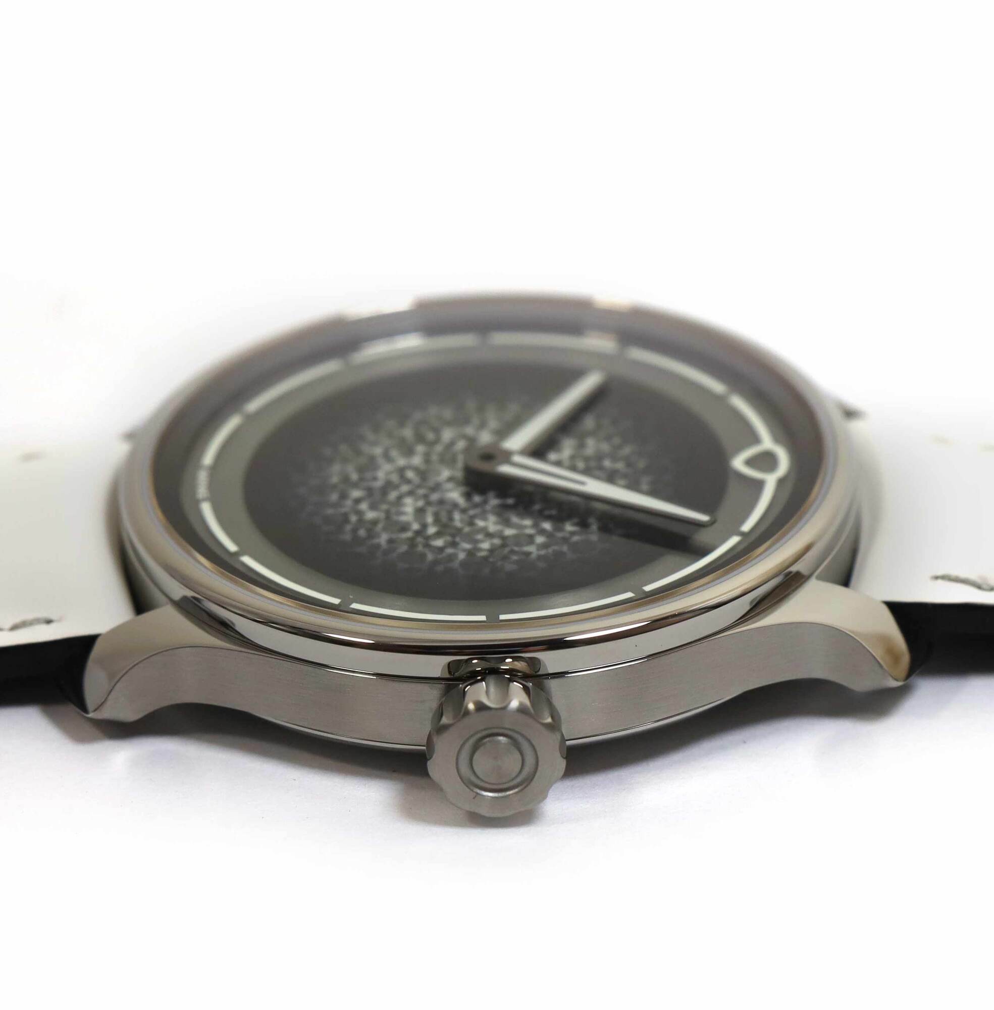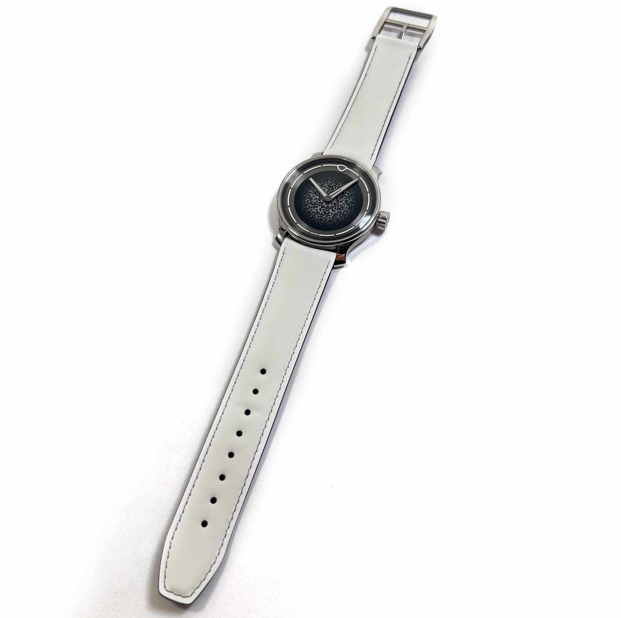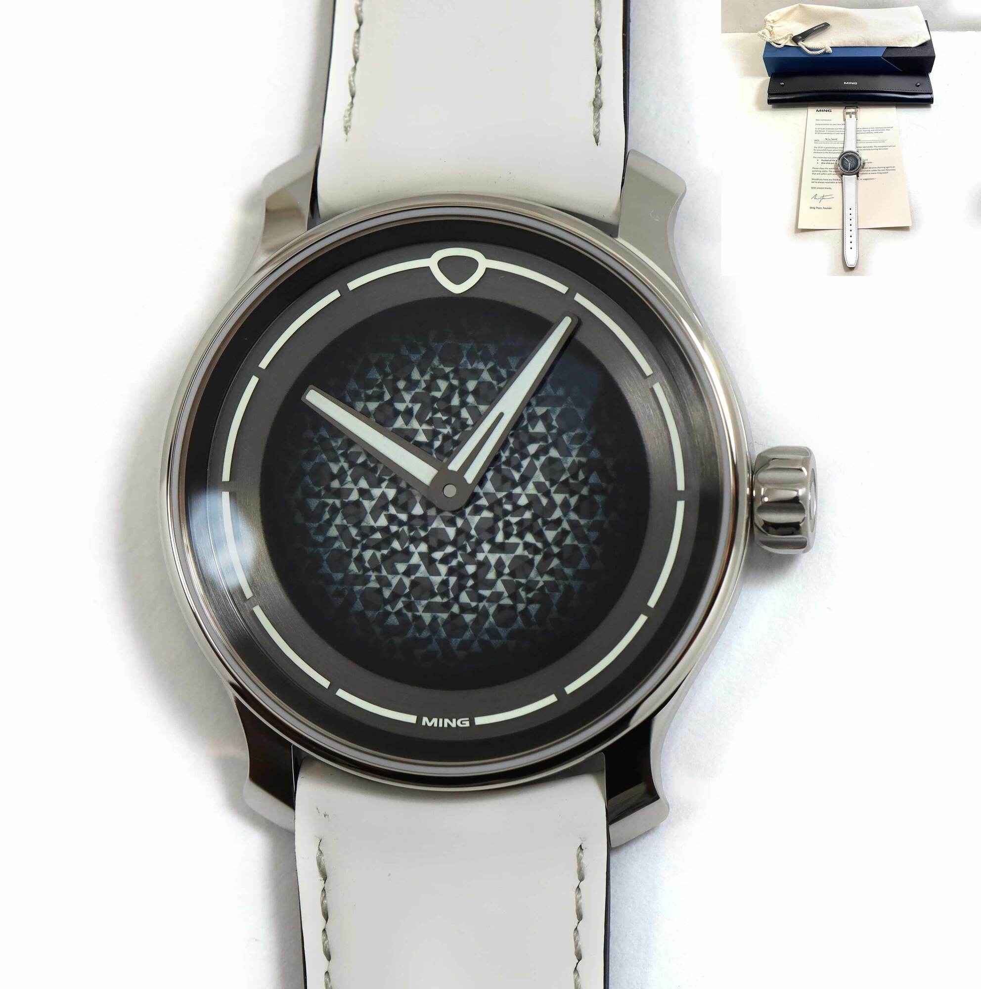 Read Morethis ming watch is new and comes with its box and warranty paper dated may 18th, 2025 for the 2 year warranty which dates this watch to be from 2023. This ming features a 38mm stainless steel case that surrounds a black mosaic dial and comes on a brand new white leather strap. This watch is in stock and available to ship immediately!