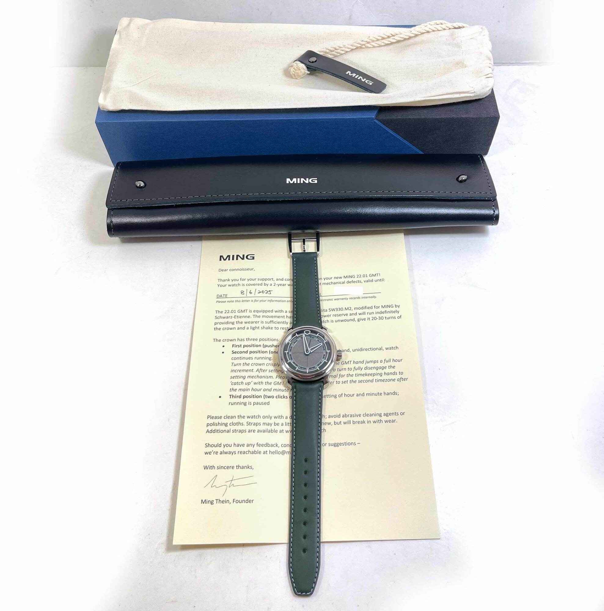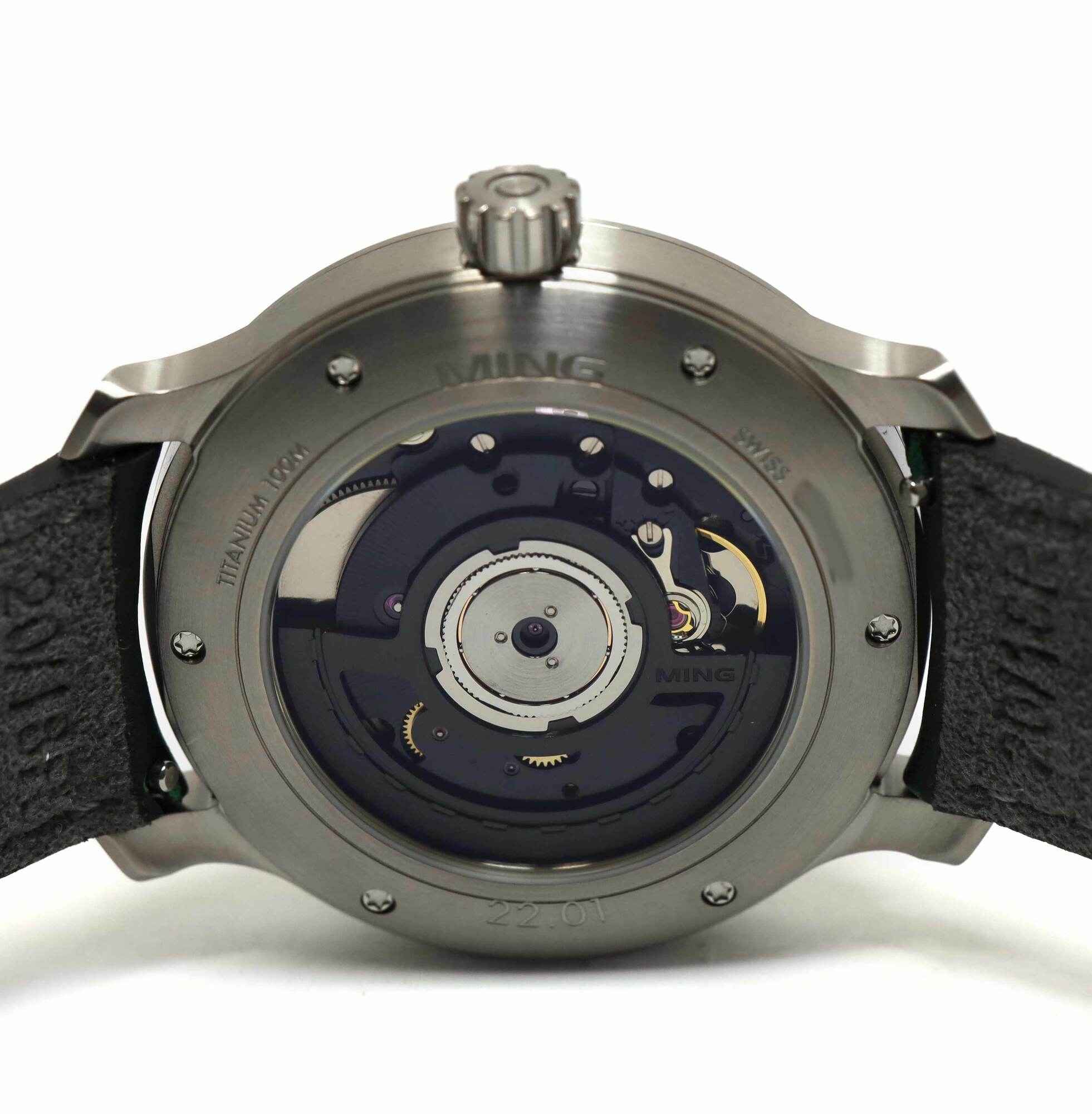 THIS MING WATCH IS NEW AND COMES WITH ITS BOX AND WARRANTY PAPER DATED AUGUST 6TH, 2025 FOR THE 2 YEAR WARRANTY WHICH DATES THIS WATCH TO BE FROM 2023. THIS MING FEATURES A 38MM TITANIUM CASE THAT SURROUNDS A GREY/GREEN DIAL AND COMES ON A BRAND NEW GREEN L...