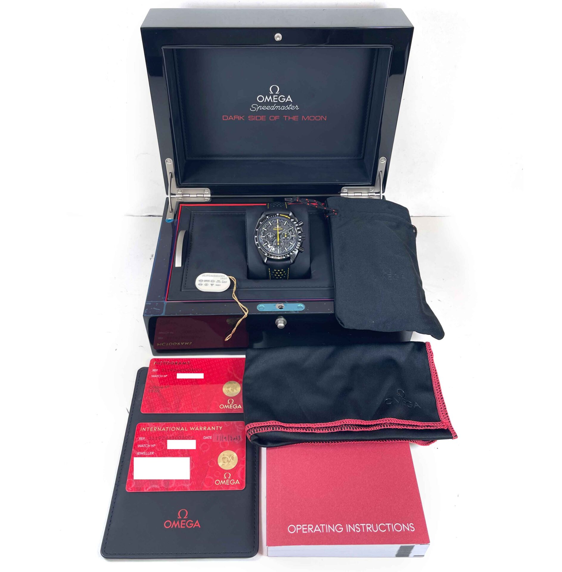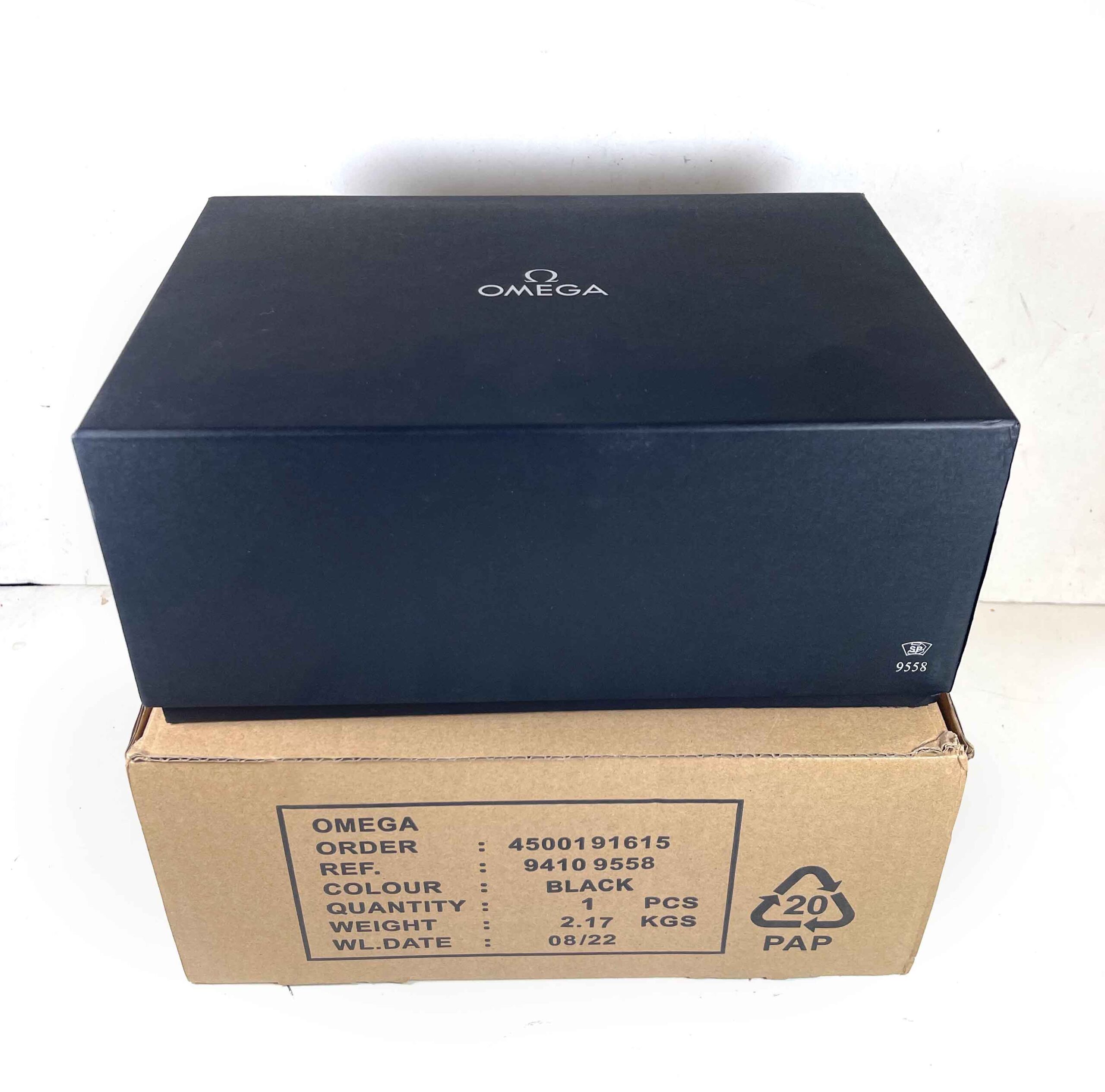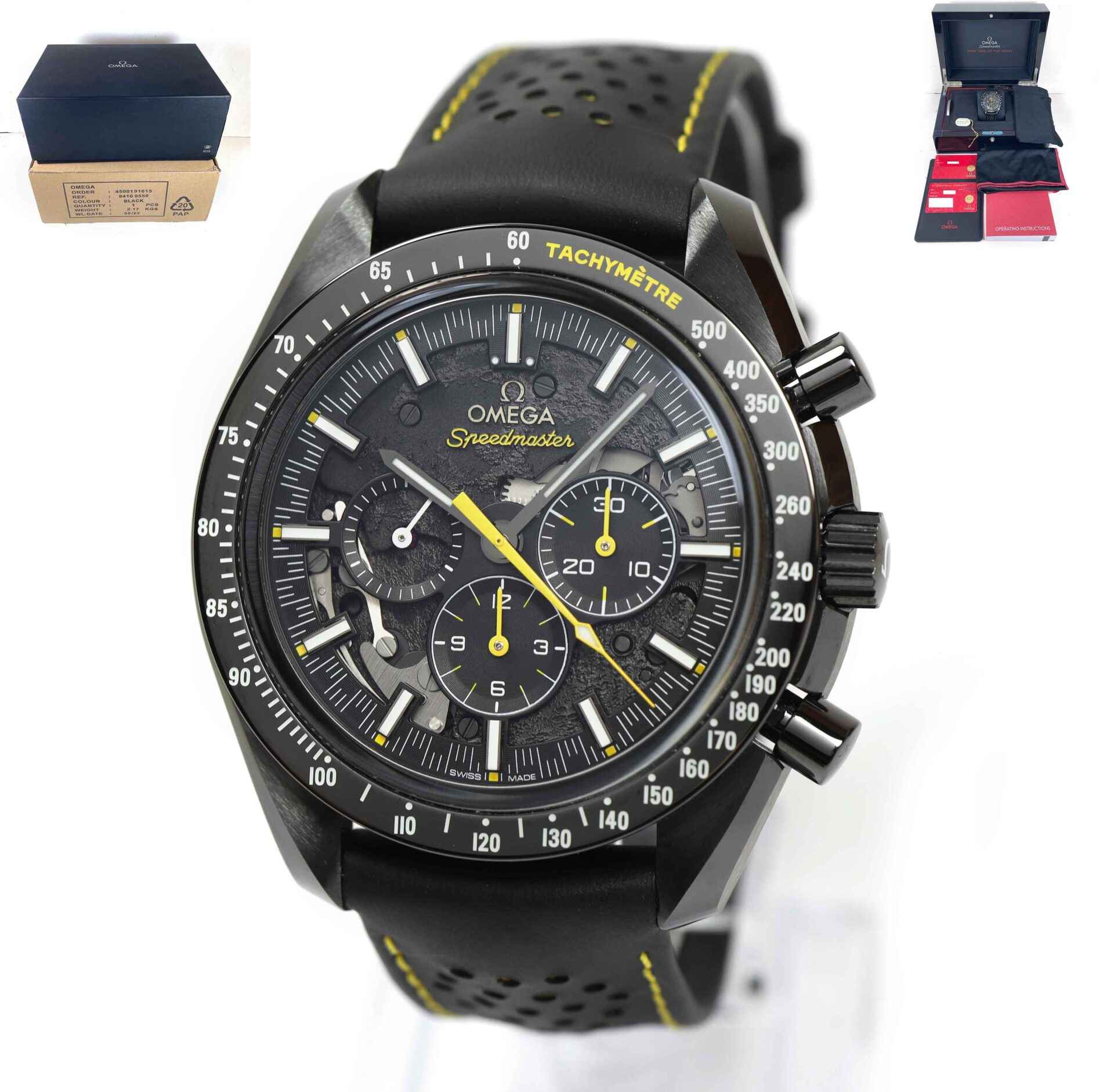 this omega is in excellent condition and comes with its box, booklets, hang tag, and warranty card dated november 9th, 2023 as shown in the pictures attached. This watch is in stock and available to ship immediately!