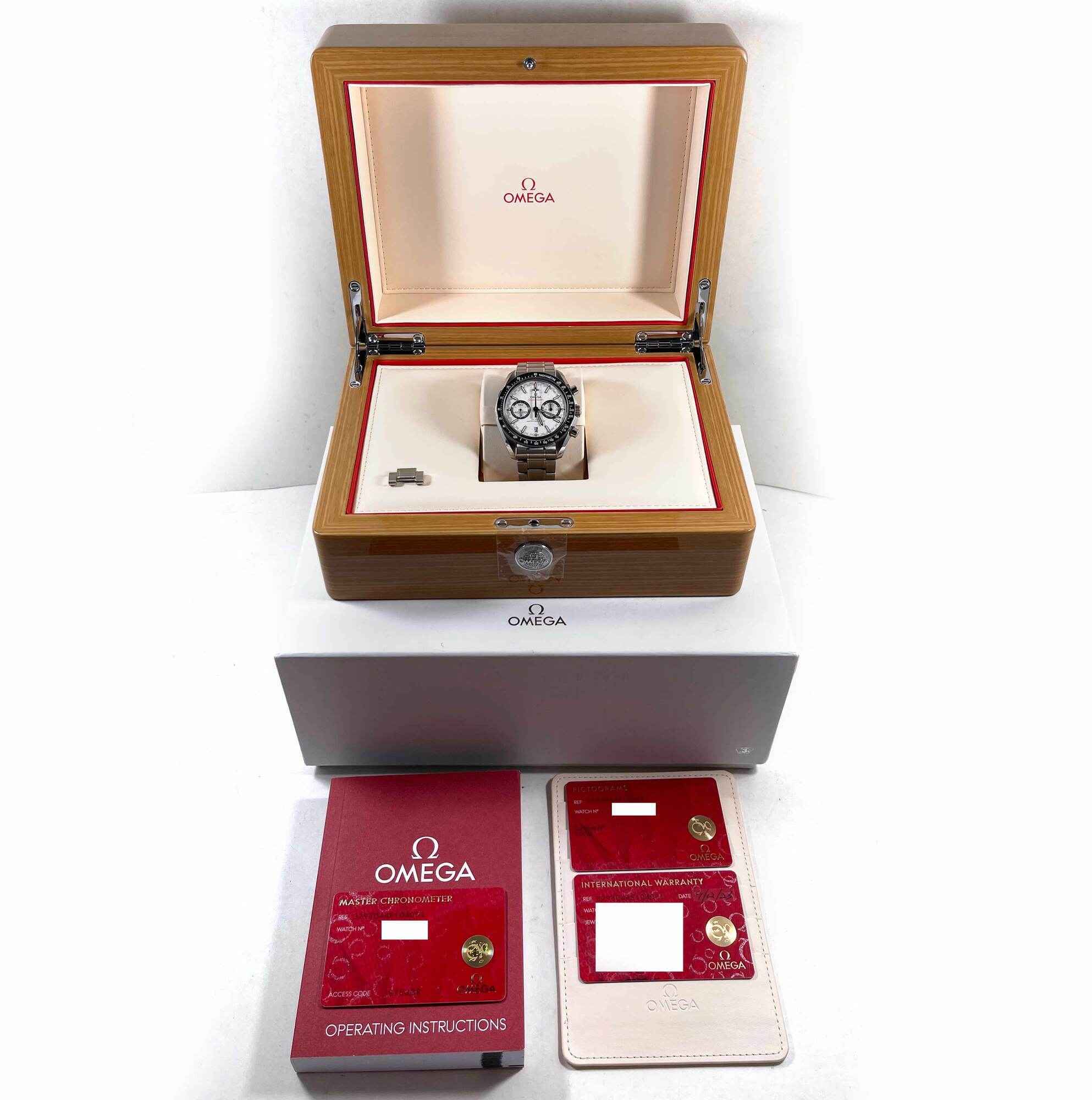 this omega is in excellent overall condition and comes with its box, booklet, one spare link, and warranty cards dated september 12th, 2023 as shown in the pictures attached. This watch is in stock and available to ship immediately!
