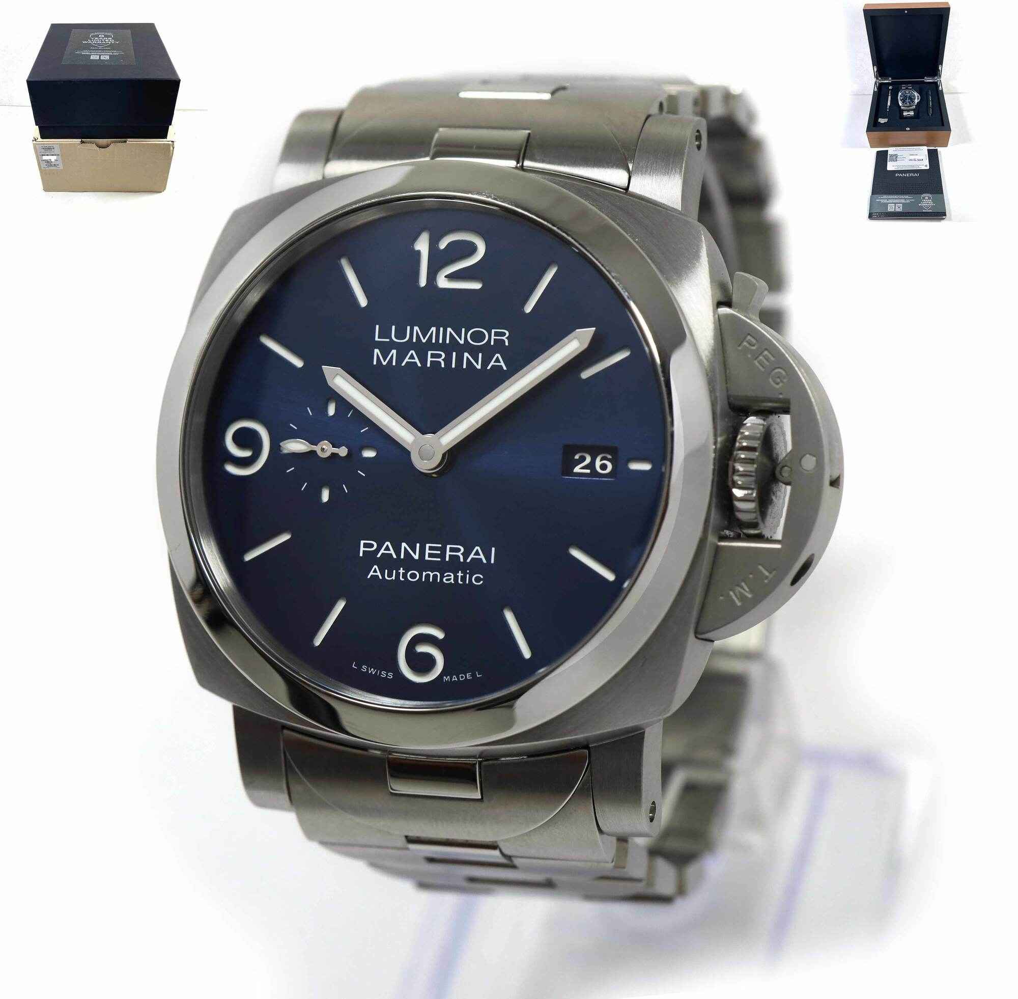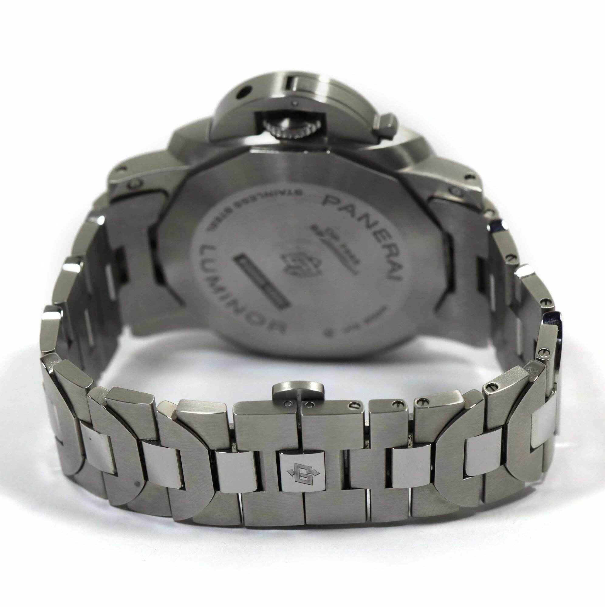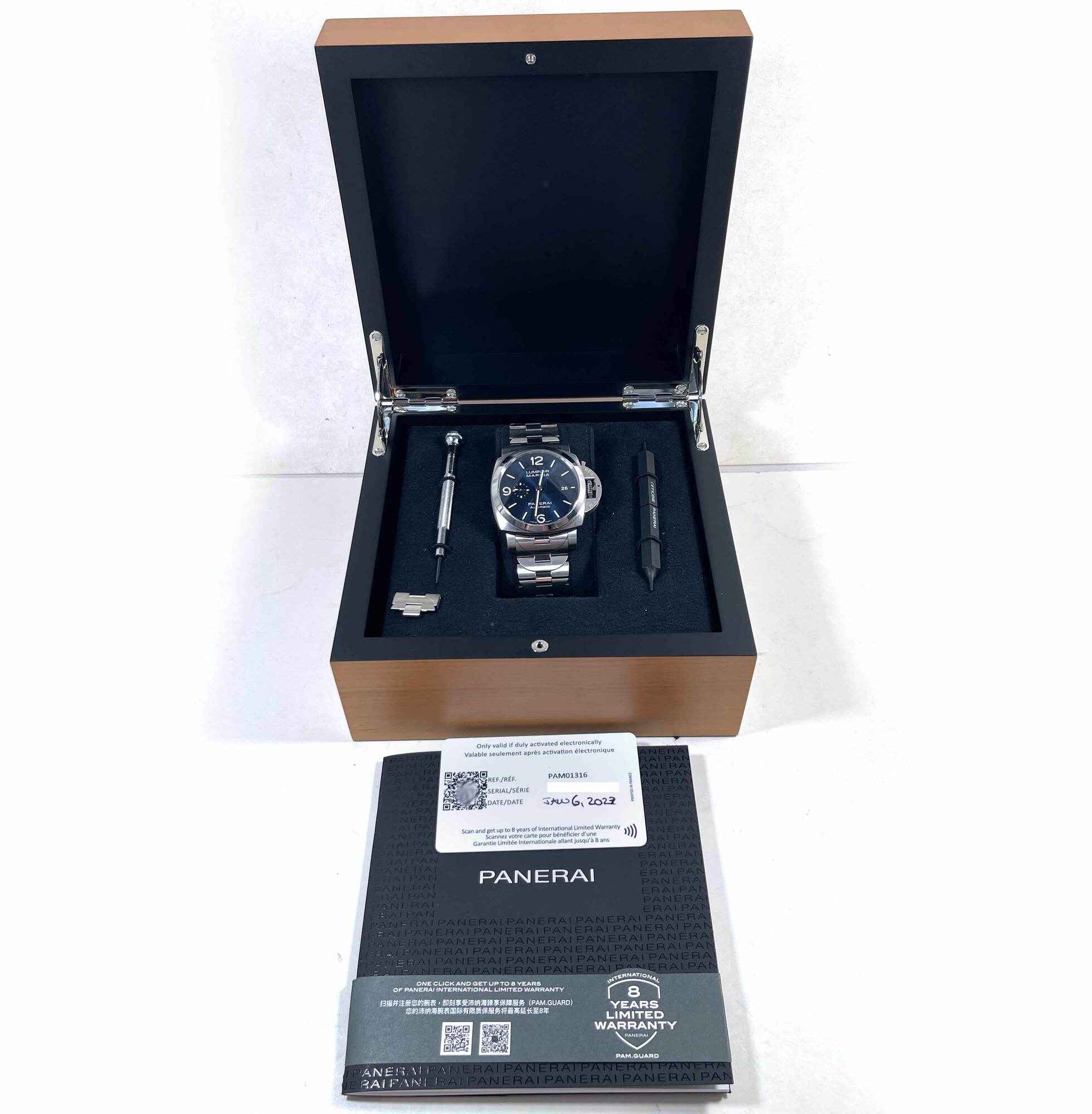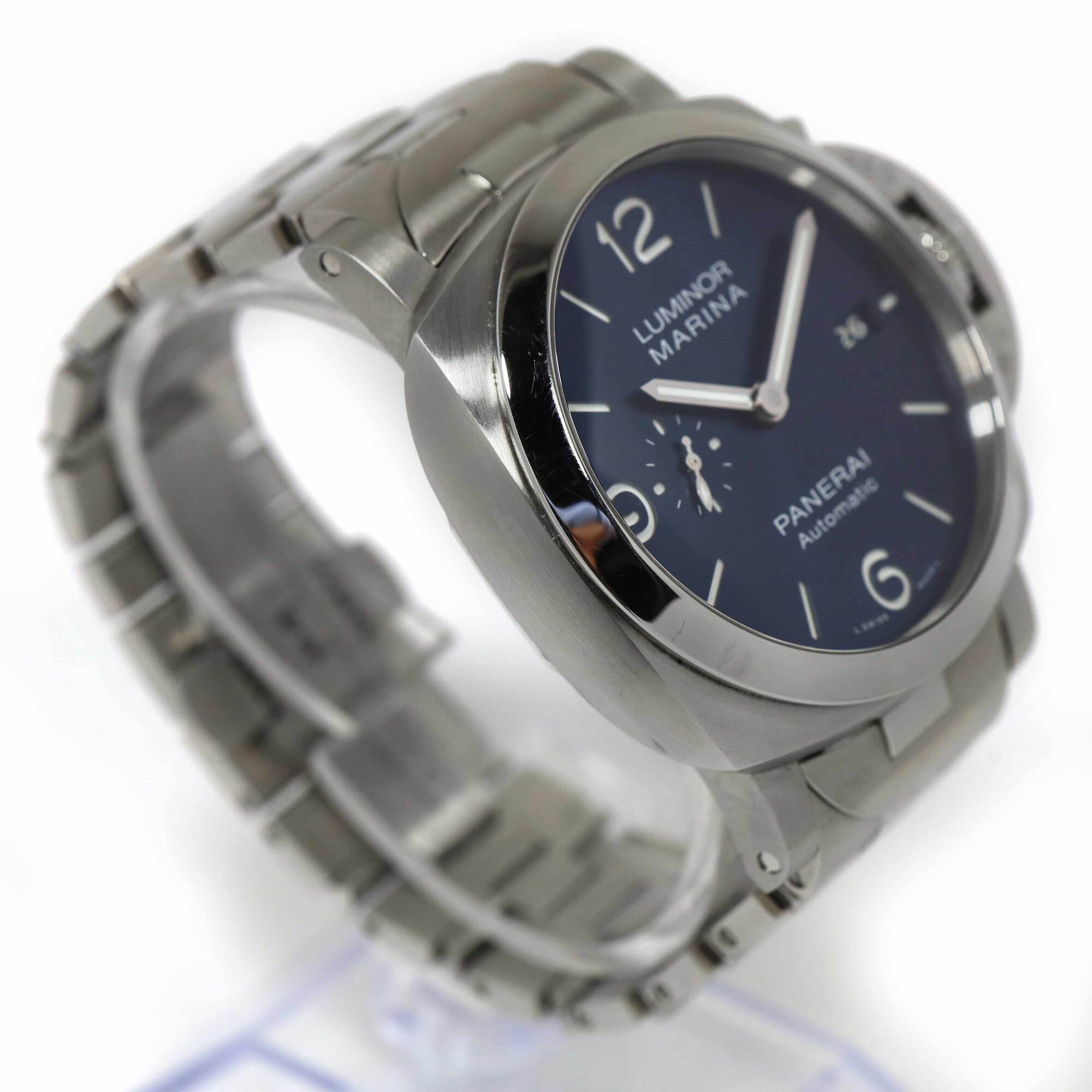 Read Morethis panerai is in great overall condition showing some normal signs of wear on the case, bezel, and bracelet consistent with preowned watches. This comes with its box, papers, panerai tools, one spare link, and warranty card dated january 6th, 2023. This panerai features a 44mm stainless steel case that surrounds a blue dial and comes on a stainless steel bracelet. This watch is in stock and available to ship immediately!