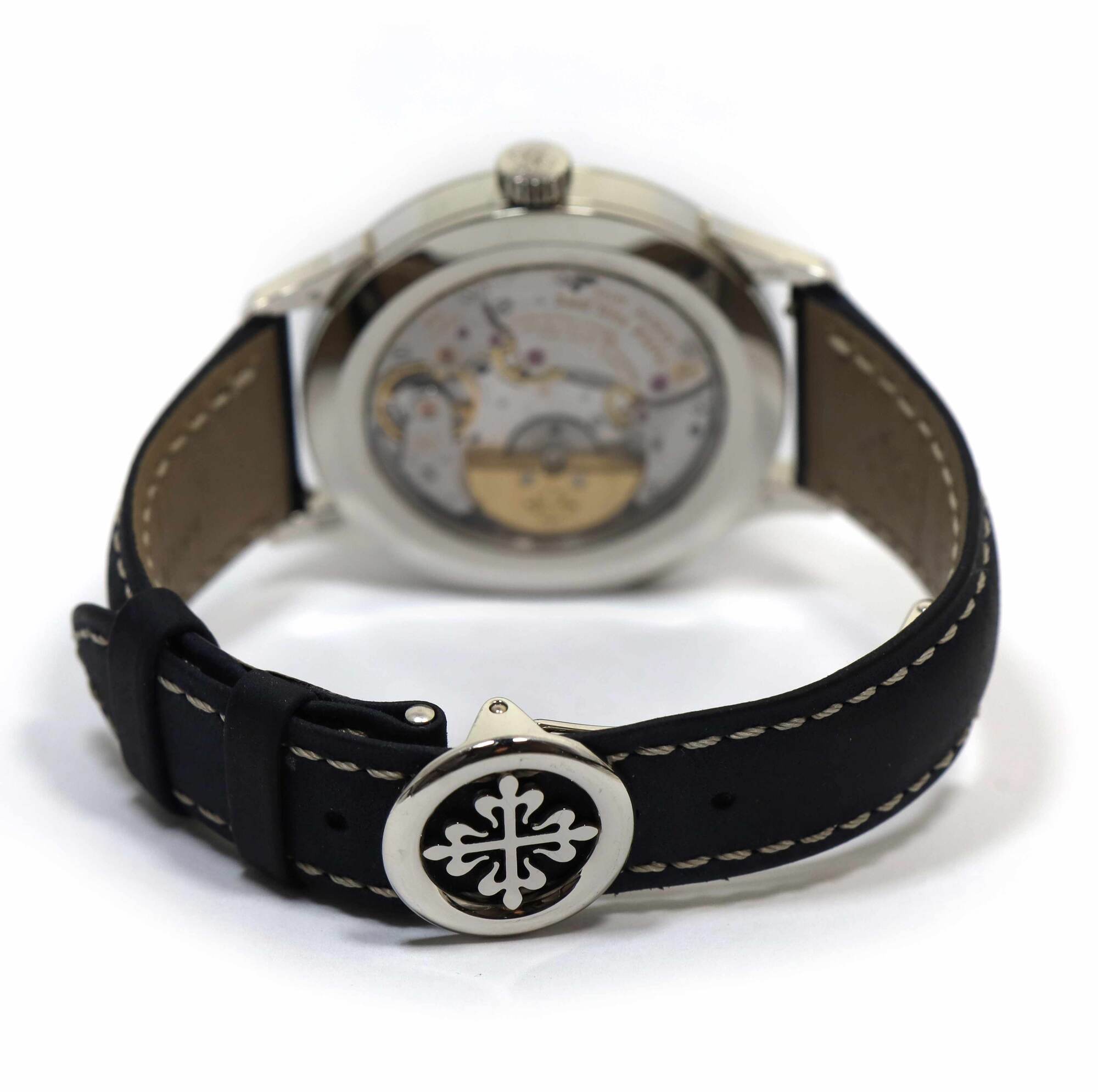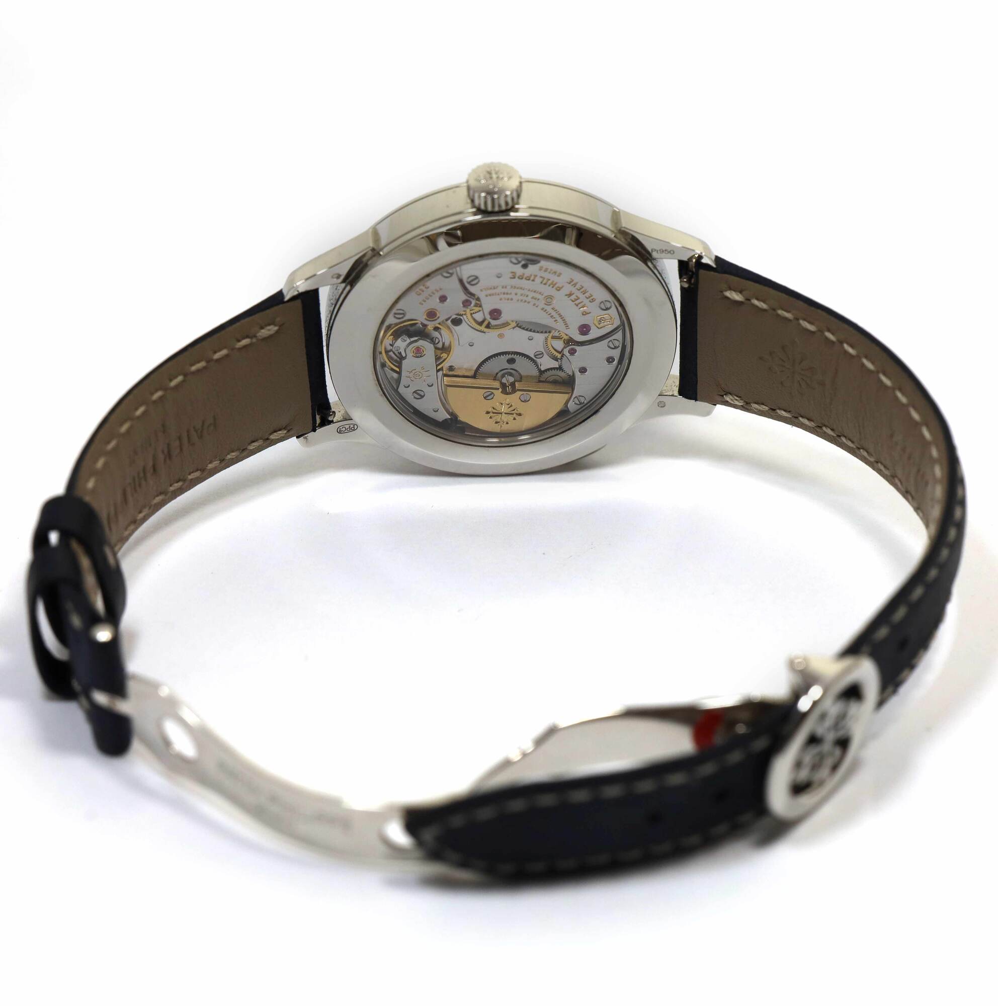 THIS PATEK PHILIPPE IS IN EXCELLENT OVERALL CONDITION SHOWING SOME VERY LIGHT SIGNS OF SURFACE WEAR ON THE CASE AND COMES WITH ITS BOX, BOOKLETS, AND WARRANTY PAPER DATED APRIL 22ND, 2023 AS SHOWN IN THE PICTURES ATTACHED. THIS WATCH FEATURES A 38.5MM PLATI...