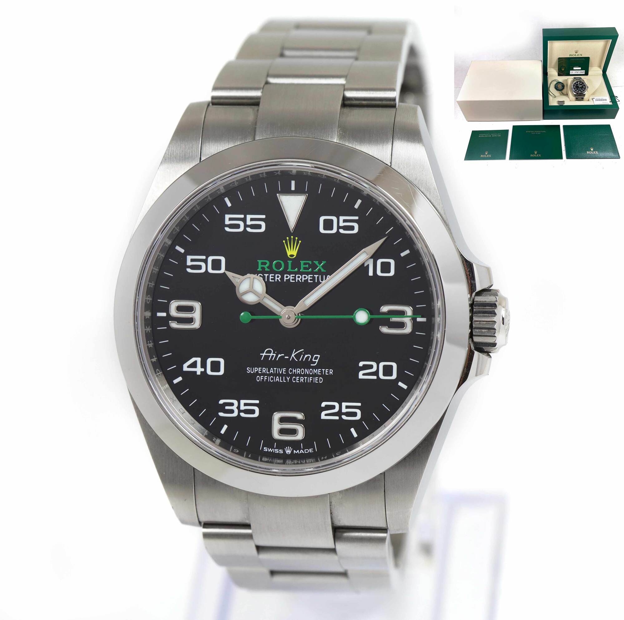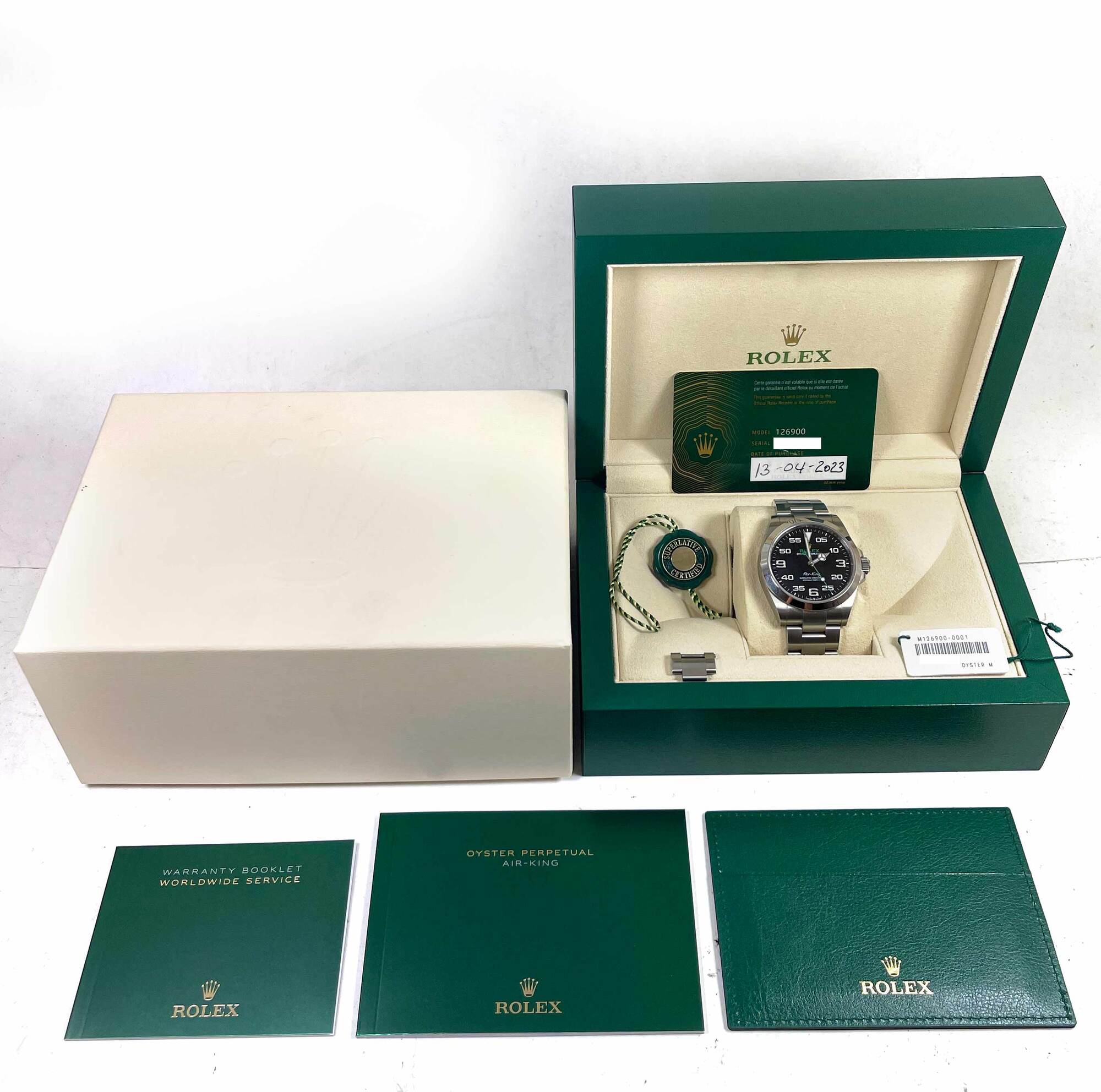 Read Morethis rolex is in great overall condition showing some minor signs of wear consistent with preowned watches. This comes with its box, booklets, spare link, both hang tags, and warranty card dated april 13th, 2023 as shown in the pictures attached. This watch is in stock and available to ship immediately!