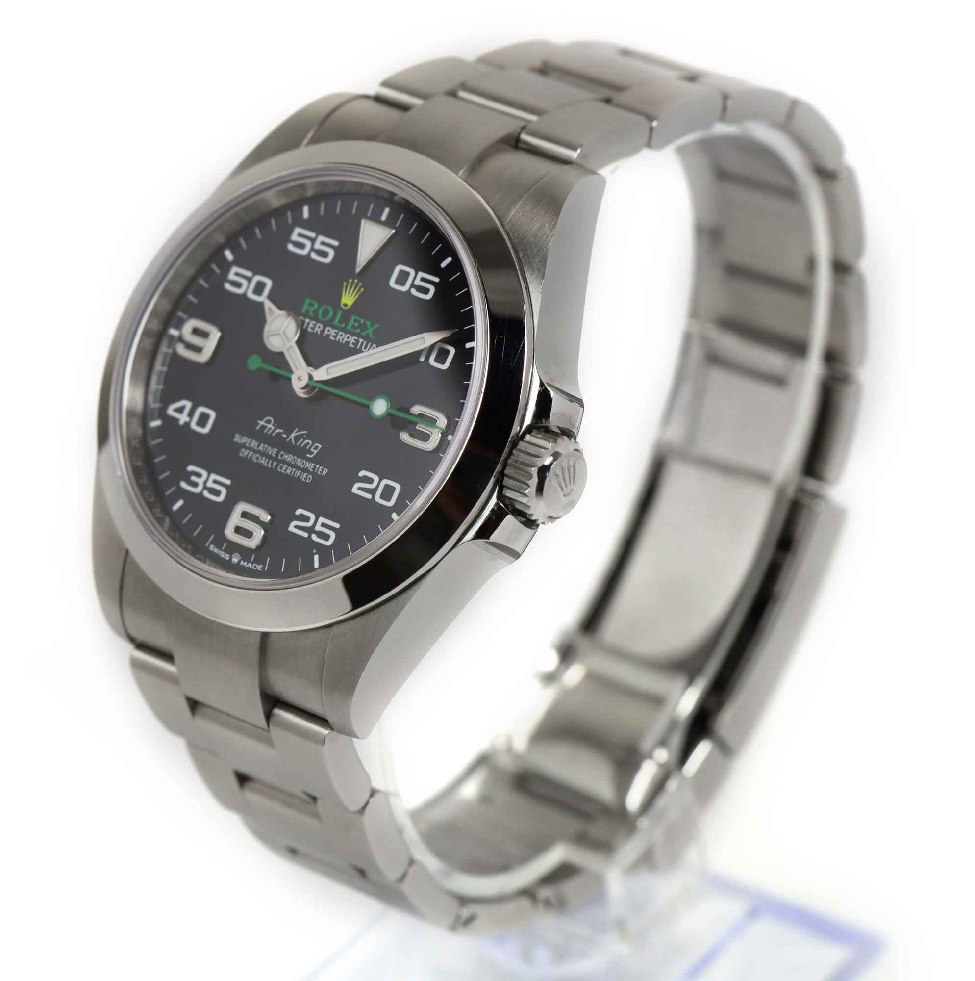 This rolex air-king is in excellent overall condition and comes with its box, booklets, both hang tags, and warranty card dated october 27th, 2023 as shown in the pictures attached. This watch is in stock and available to ship immediately!