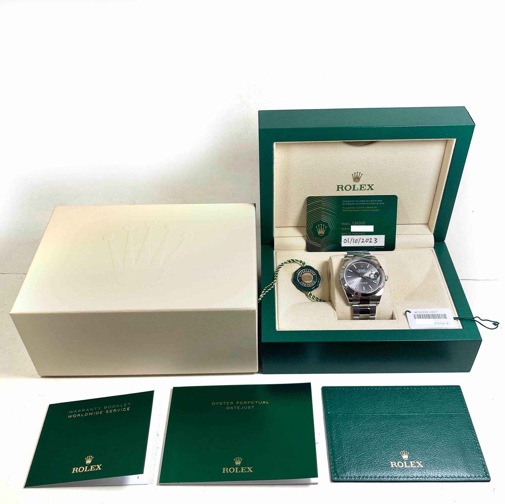 THIS ROLEX IS IN EXCELLENT CONDITION SHOWING SOME LIGHT SURFACE WEAR ON THE BRACELET AND CASEBACK AS SHOWN IN THE PICTURES ATTACHED. THIS COMES WITH ITS BOX, BOOKLETS, BOTH HANG TAGS, AND WARRANTY CARD DATED OCTOBER 1ST, 2023. THIS WATCH IS IN STOCK AND AVA...