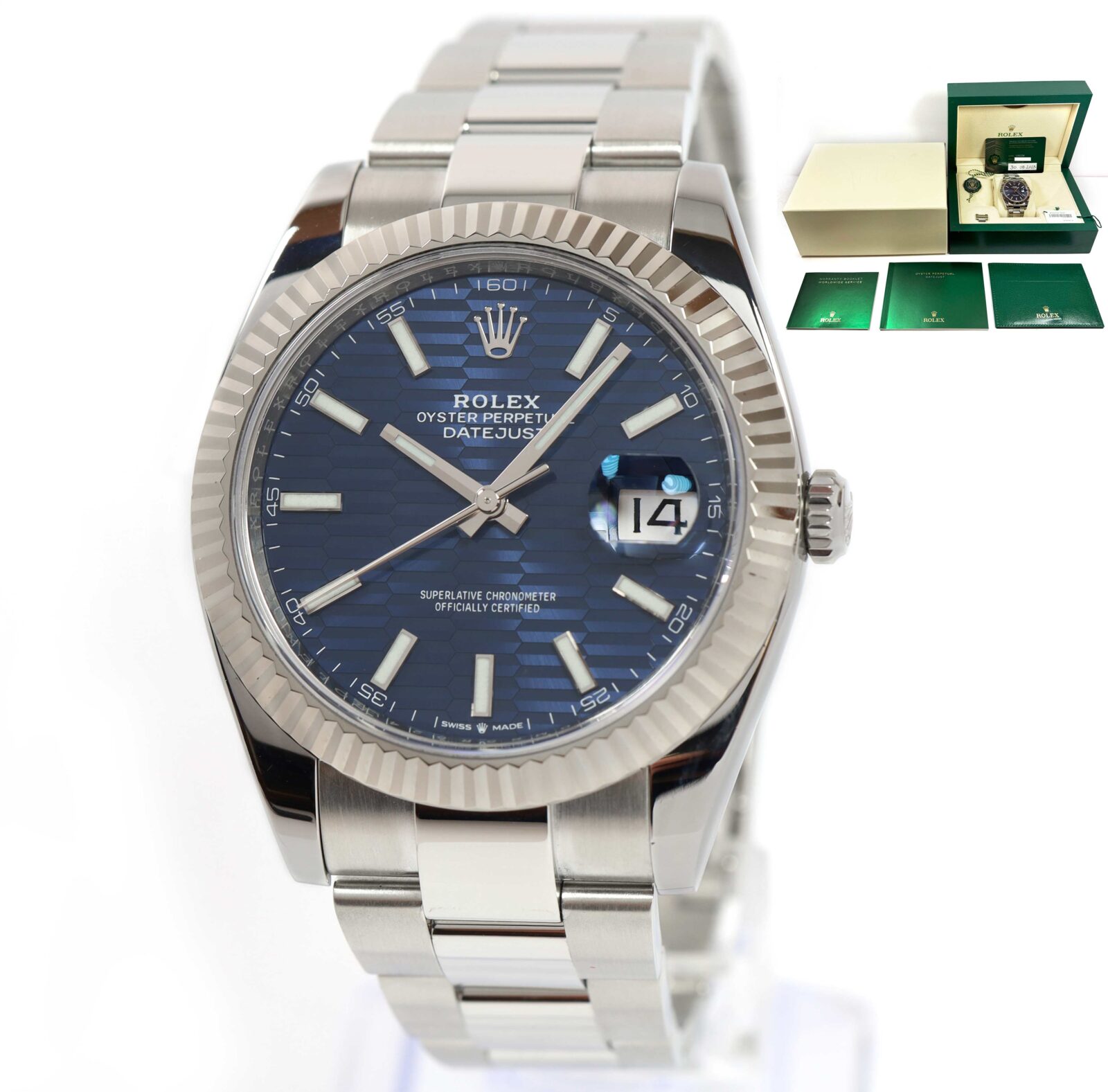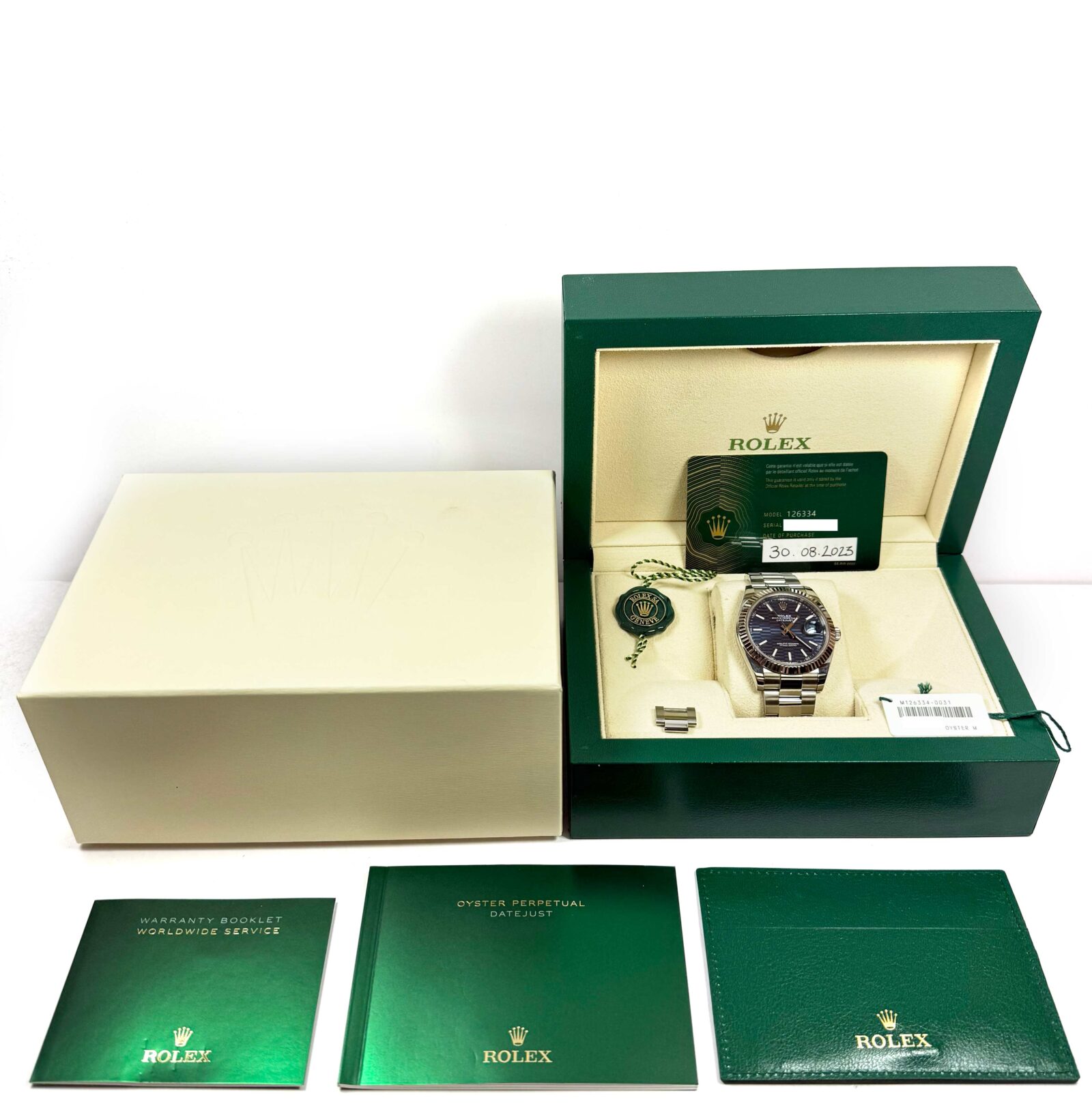 this rolex is in excellent condition and comes with its box ,booklets, hang tags, spare link, and warranty card dated august 30th, 2023 as shown in the pictures attached. This watch is in stock and available to ship immediately!