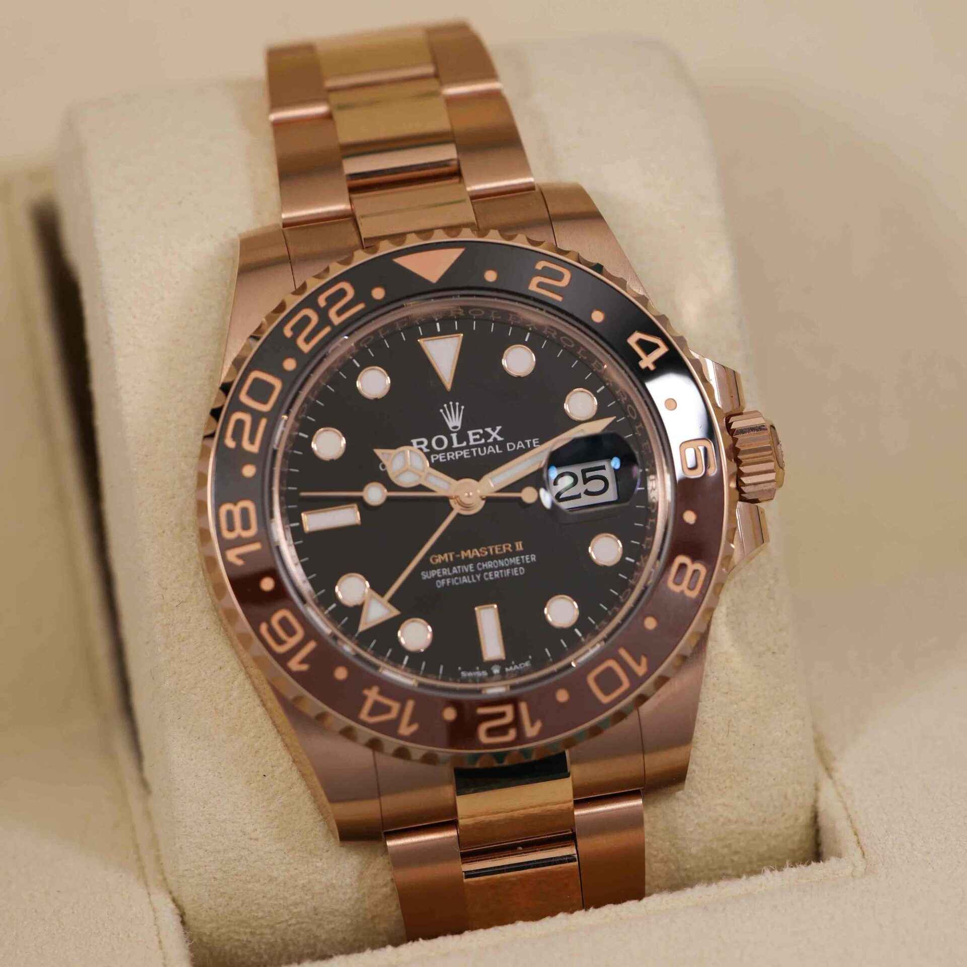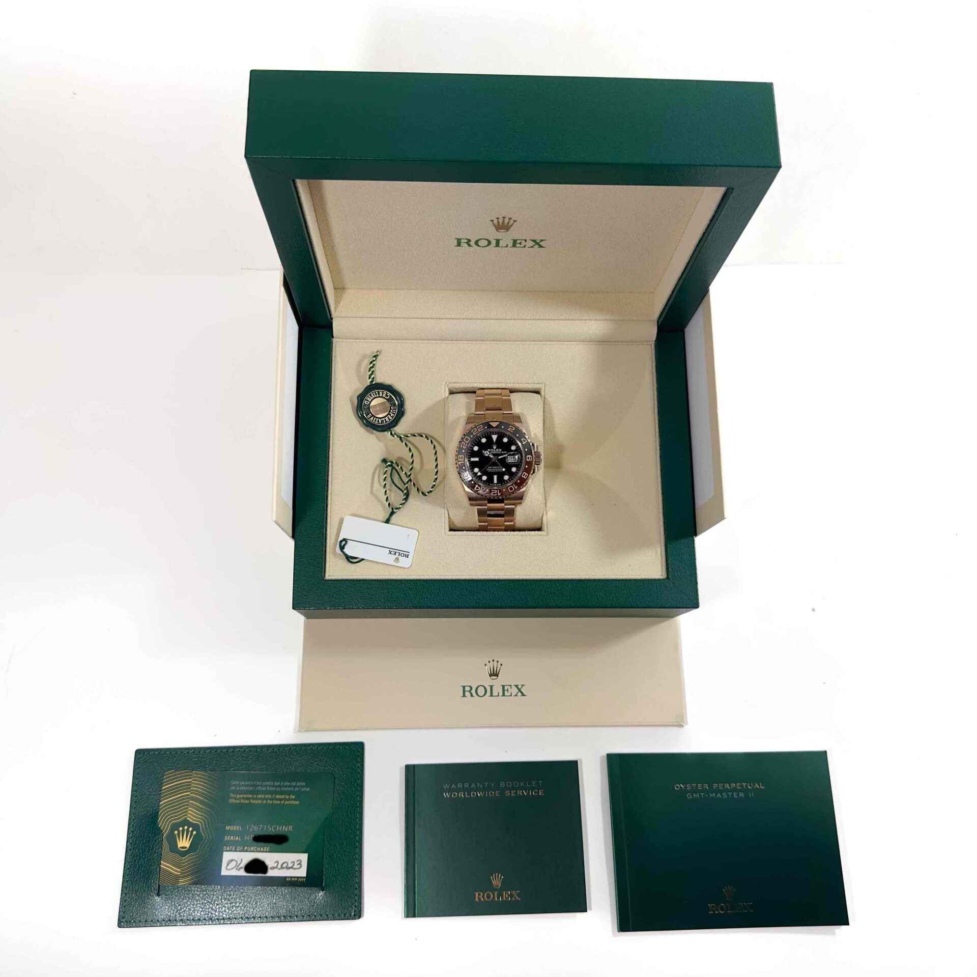 2023 Rolex GMT-Master II Rootbeer 126715CHNR 40MM 18K Rose Gold Box Papers