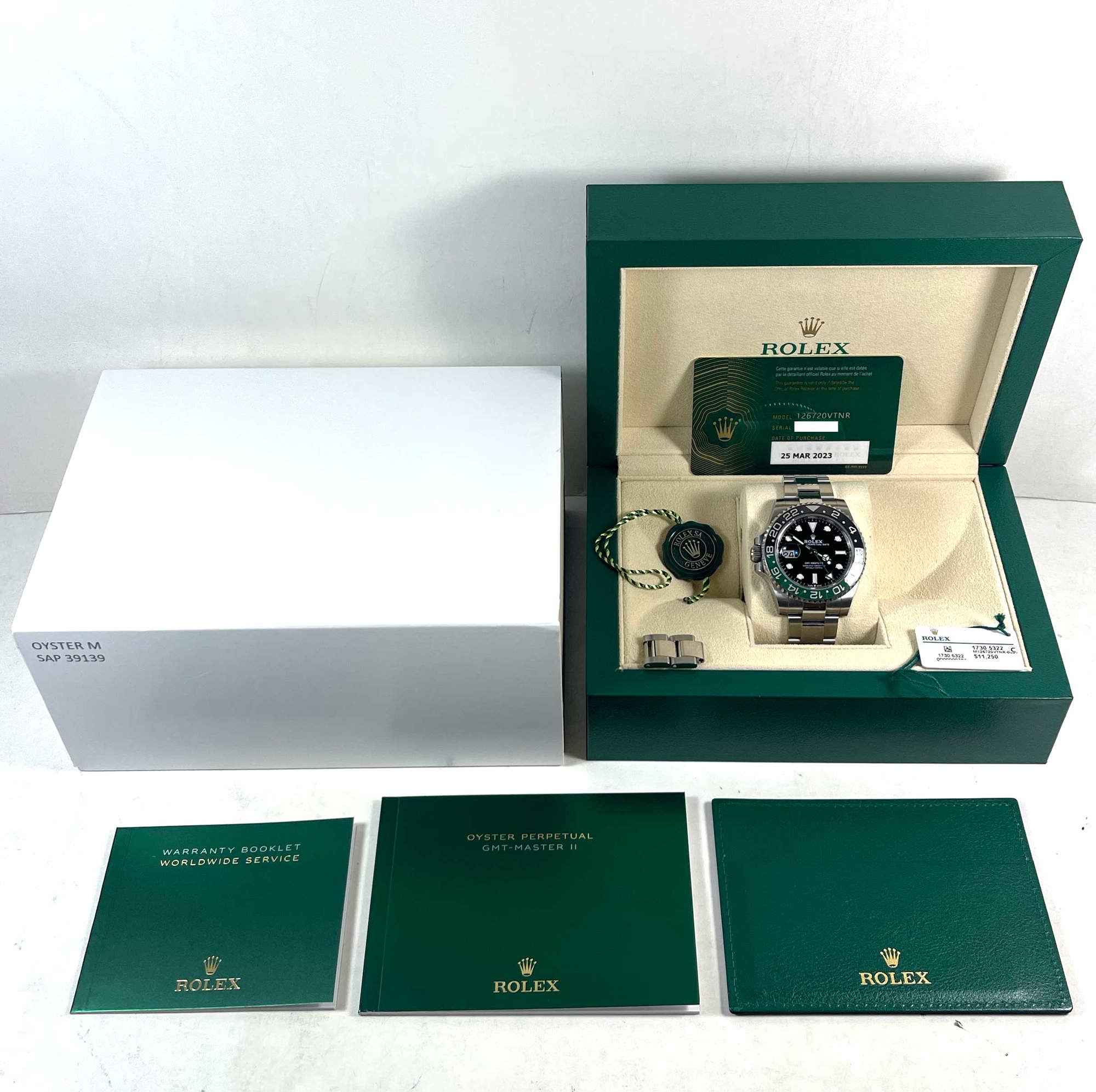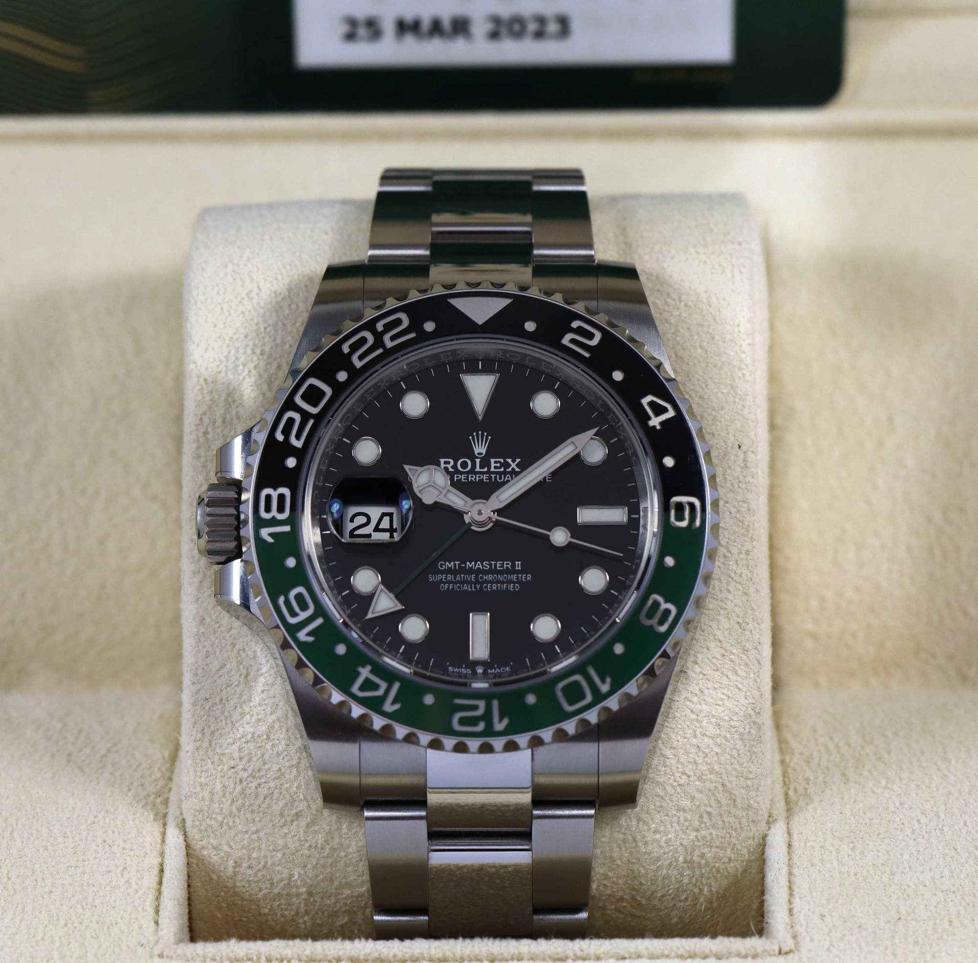 This rolex watch is in super condition and comes with its box, booklets, hang tags, spare links, and warranty card dated march 25th, 2023 as shown in the pictures attached. This watch is in stock and available to ship immediately!